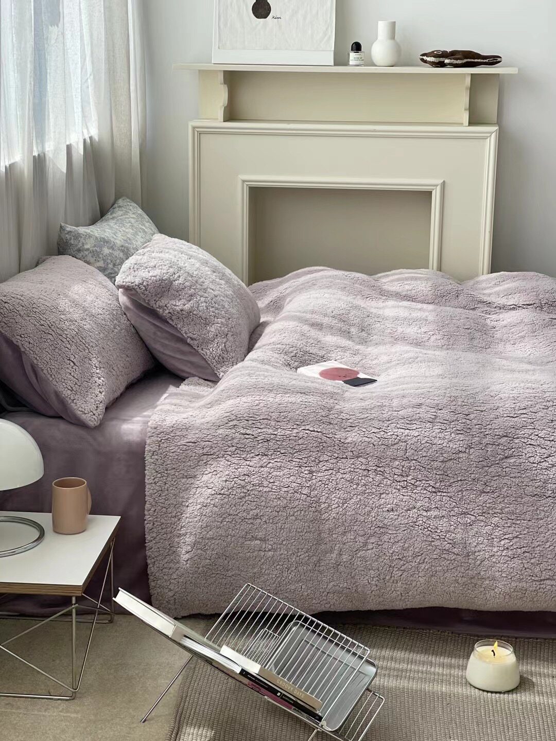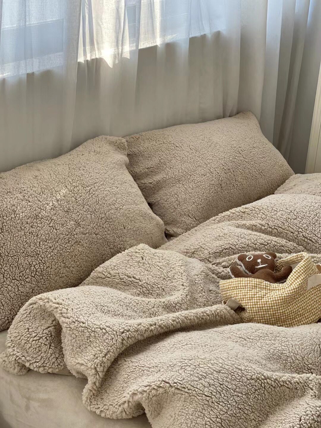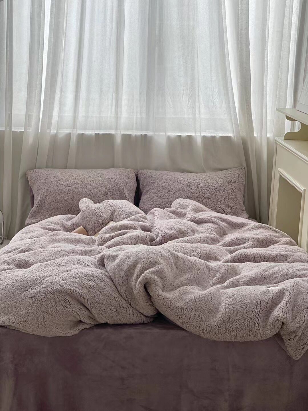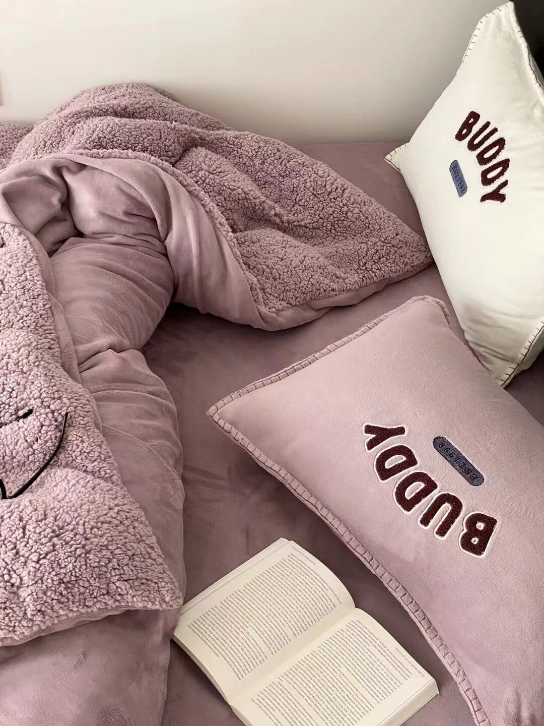 冬季加厚保暖羊駝絨+牛奶絨ins純色床上用品法萊絨羊羔絨簡約被套