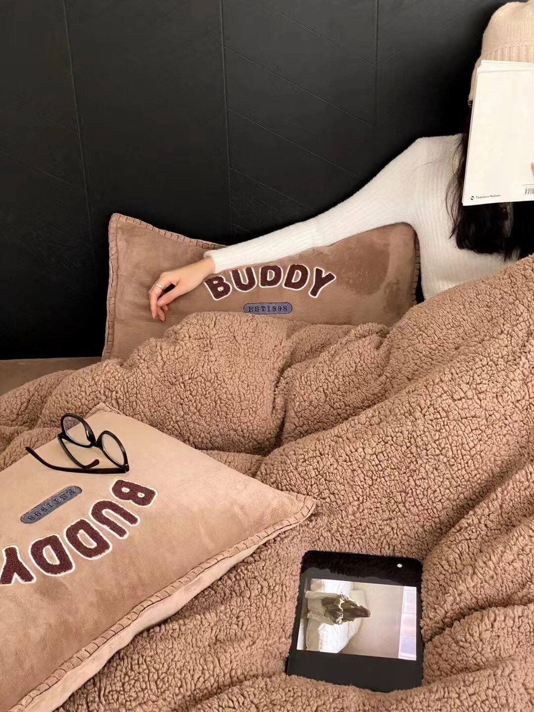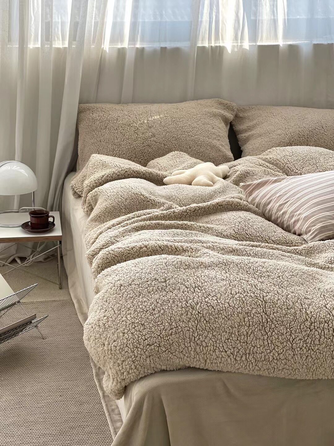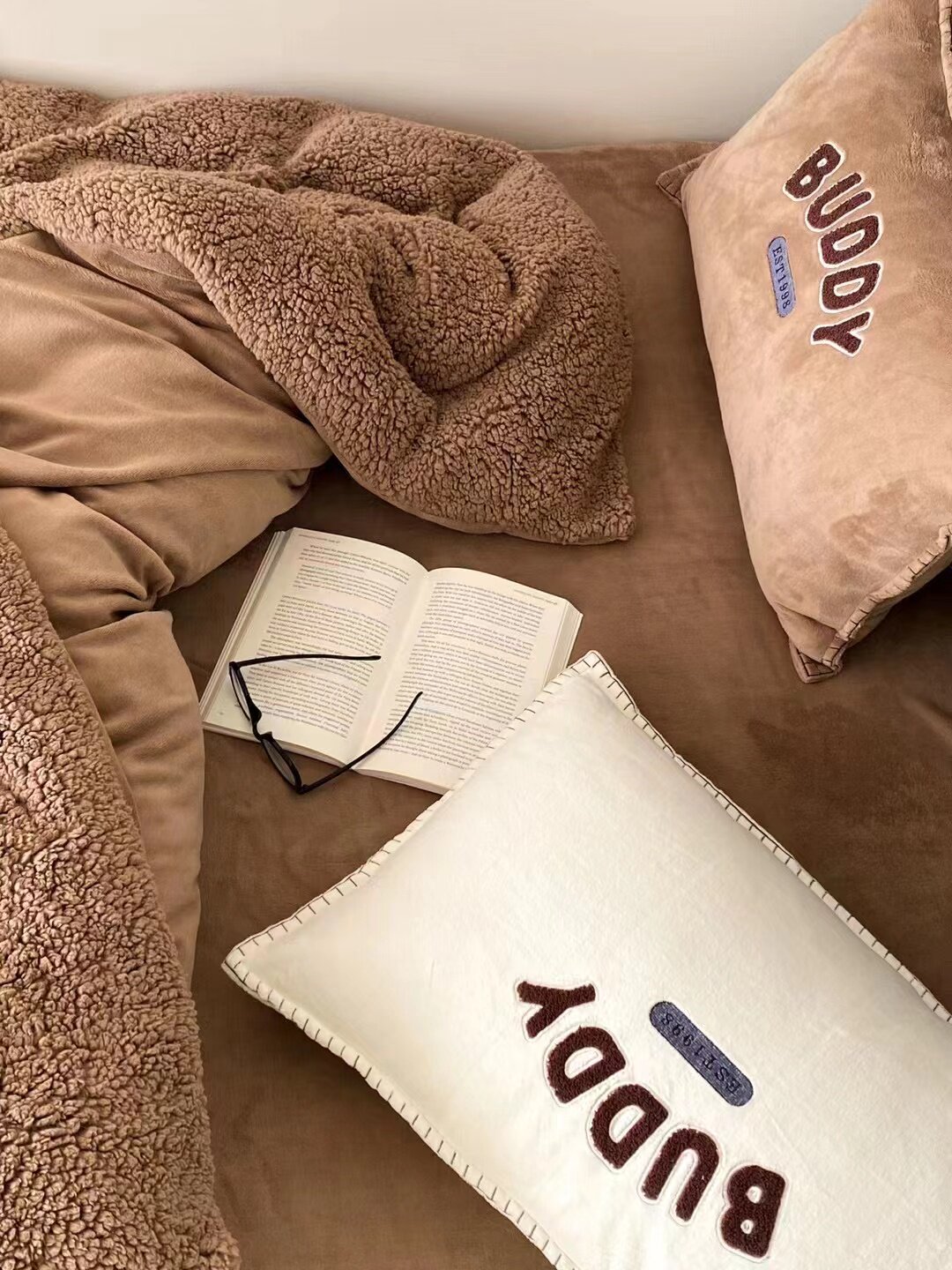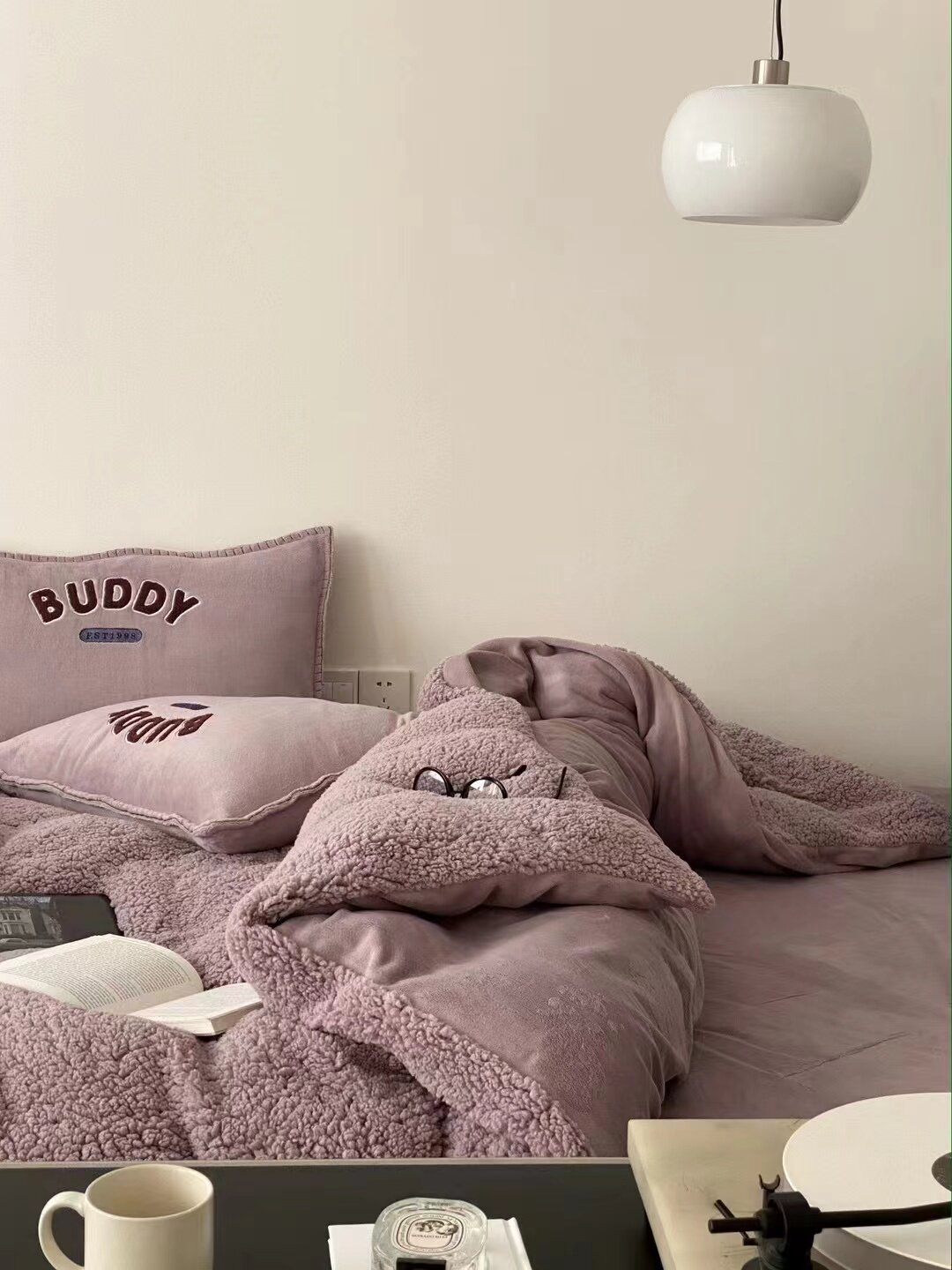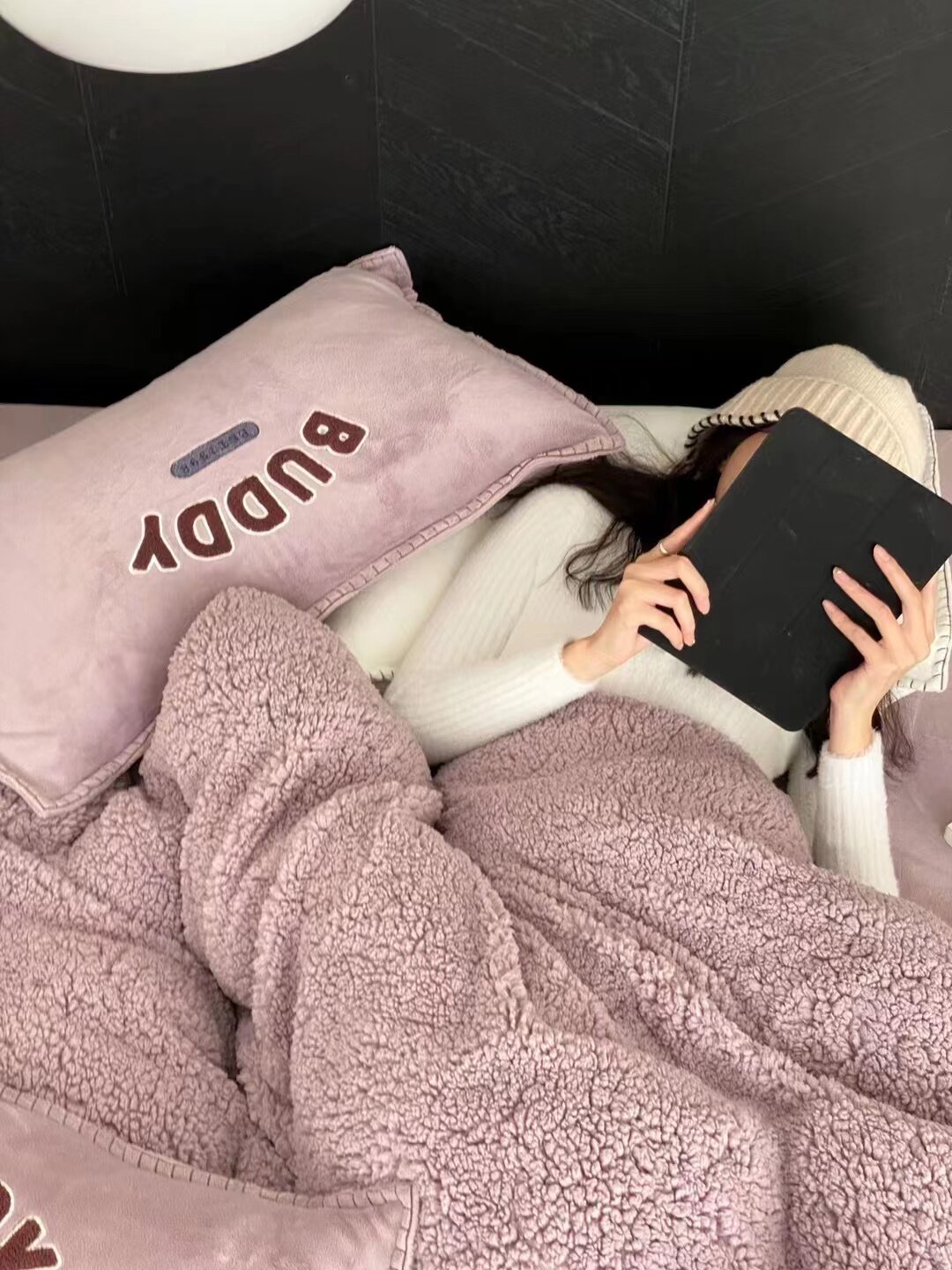 冬季加厚保暖羊駝絨+牛奶絨ins純色床上用品法萊絨羊羔絨簡約被套