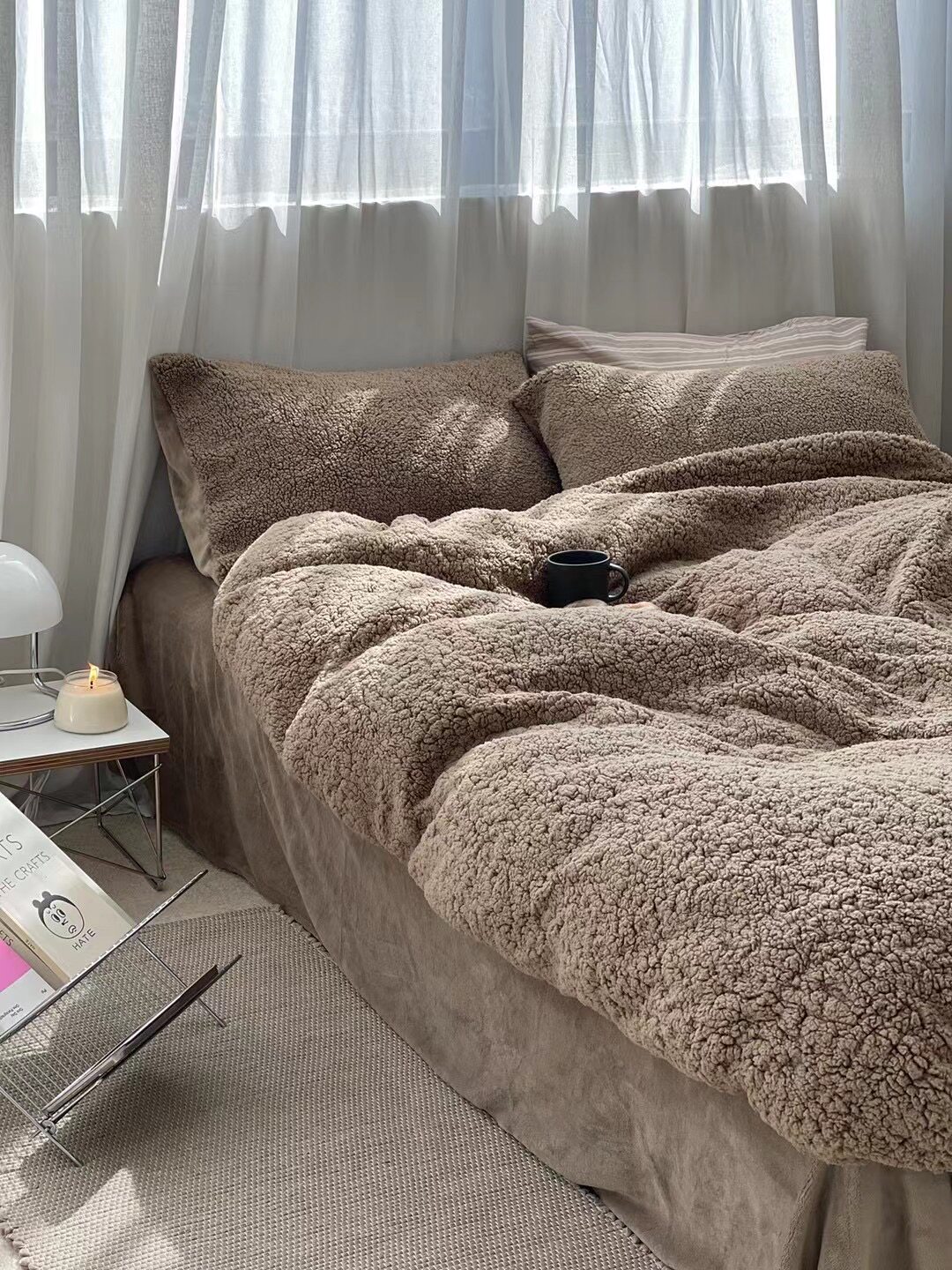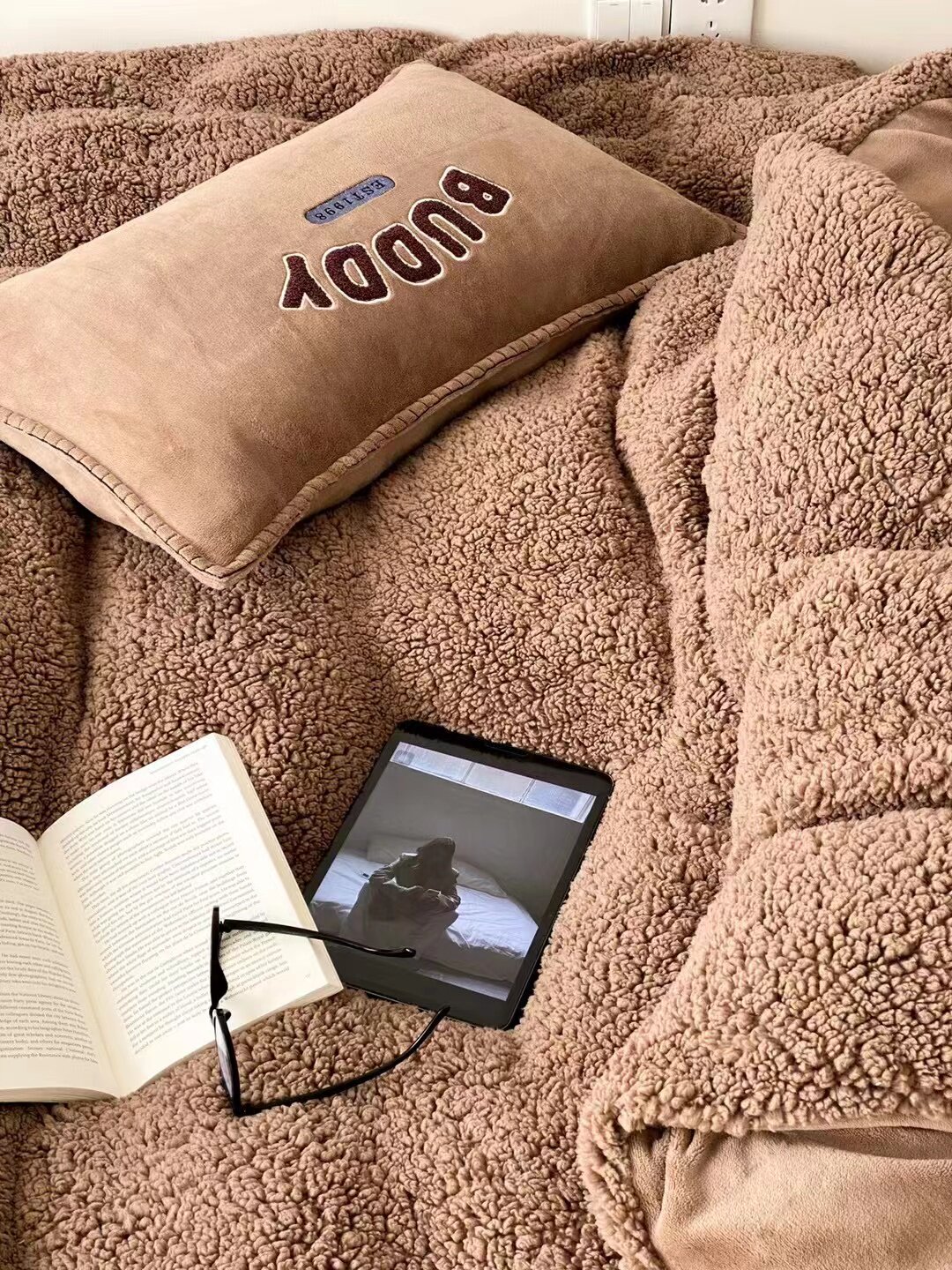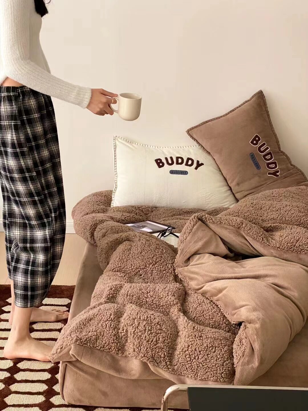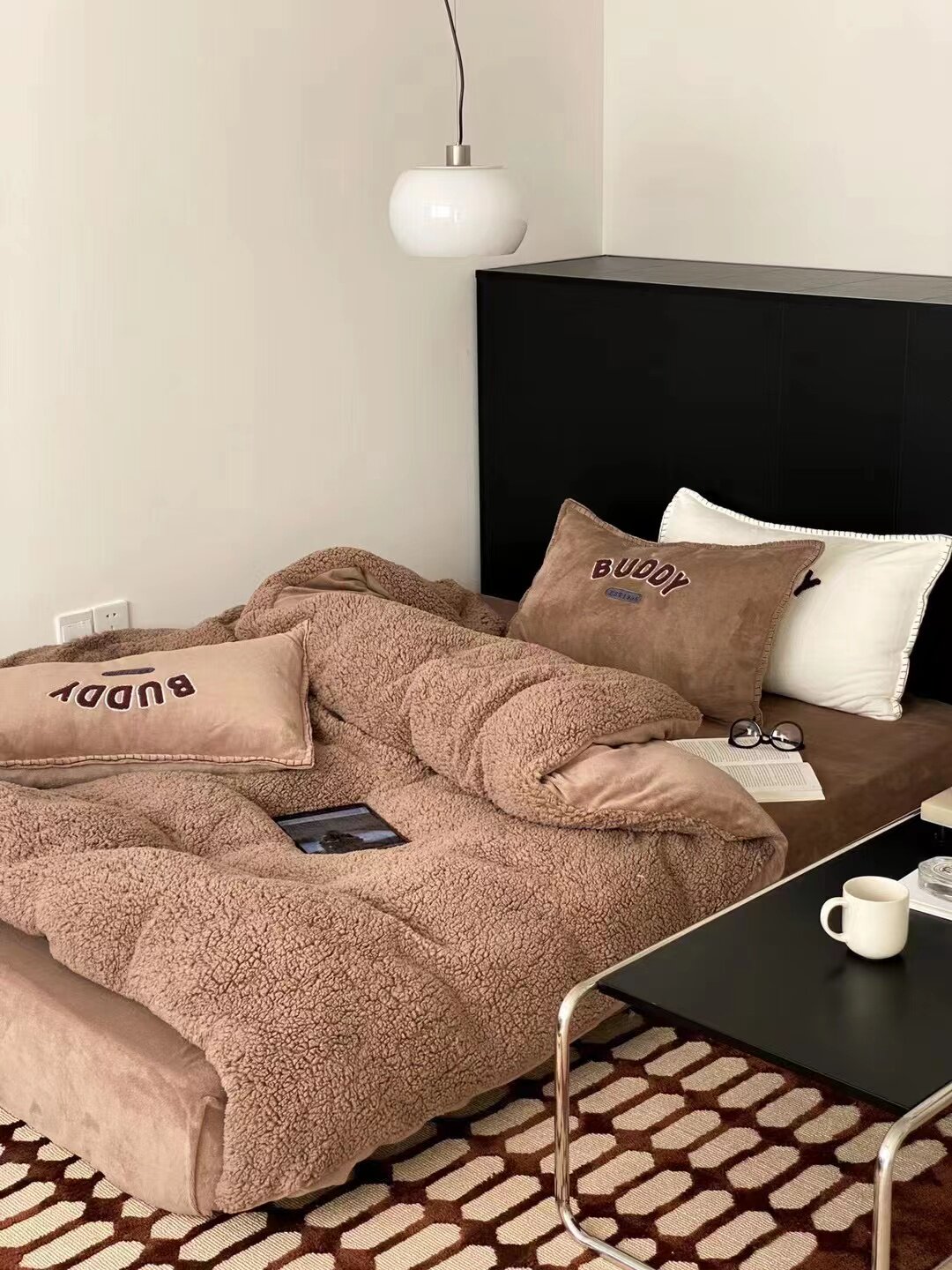 冬季加厚保暖羊駝絨+牛奶絨ins純色床上用品法萊絨羊羔絨簡約被套