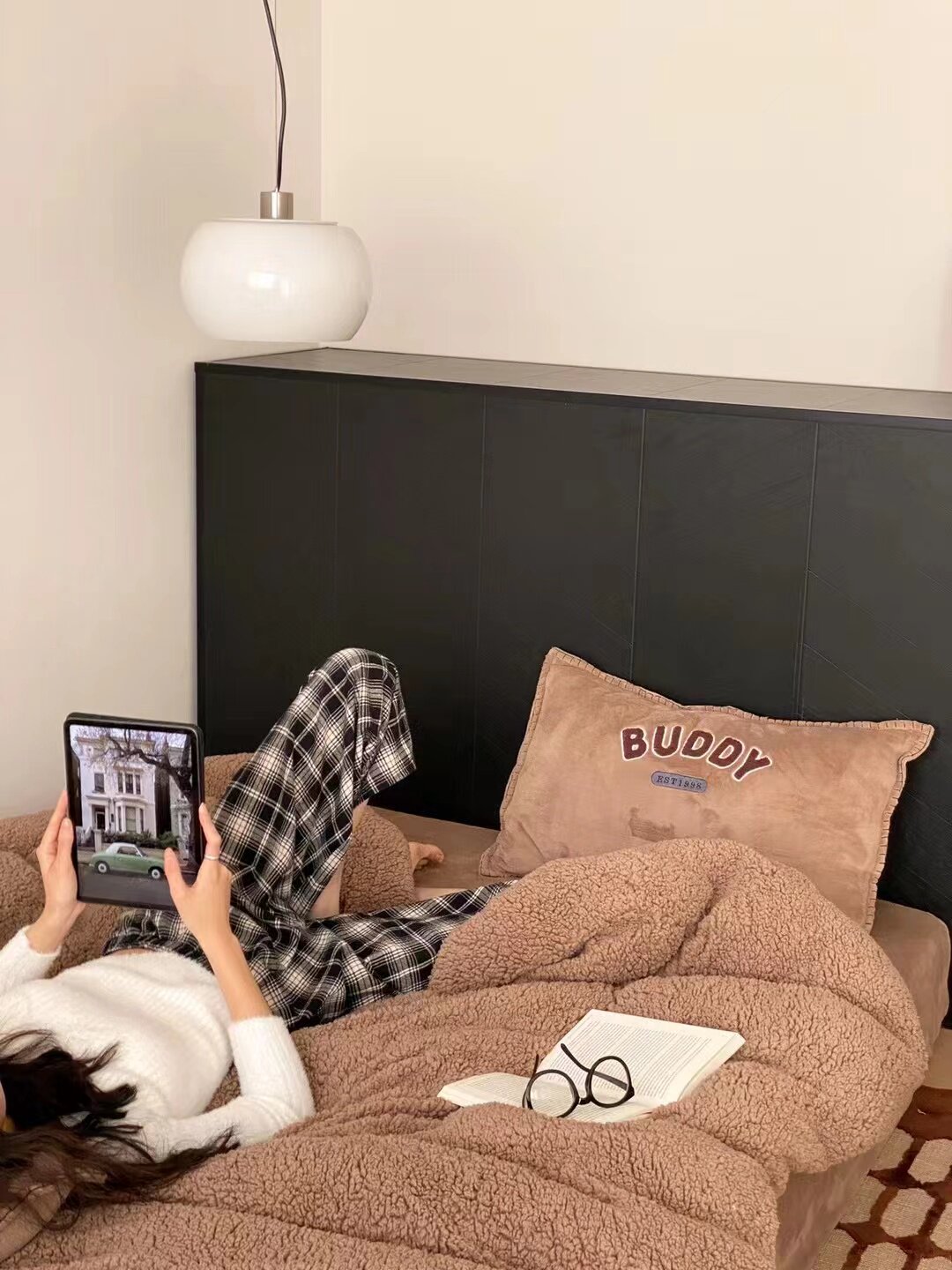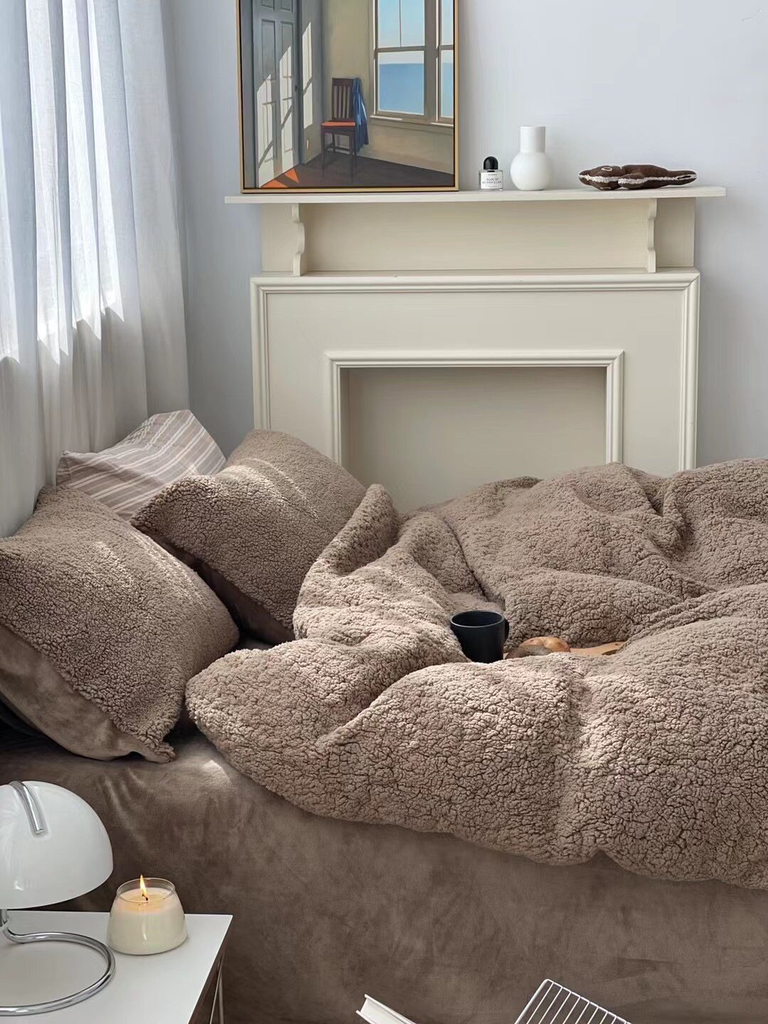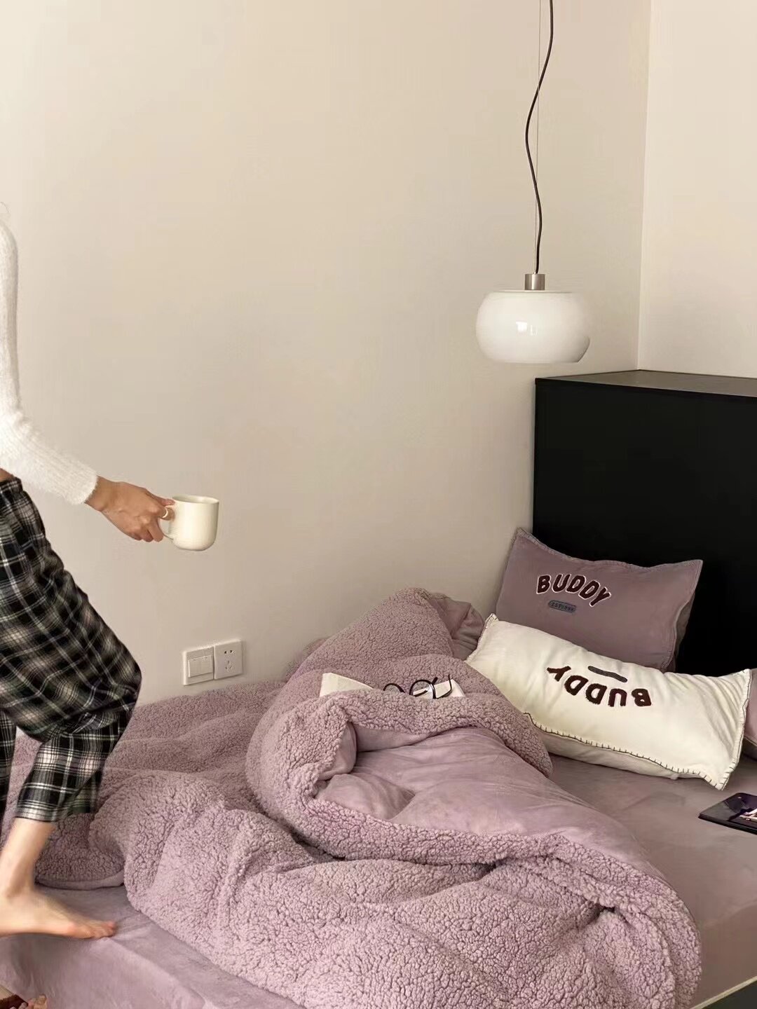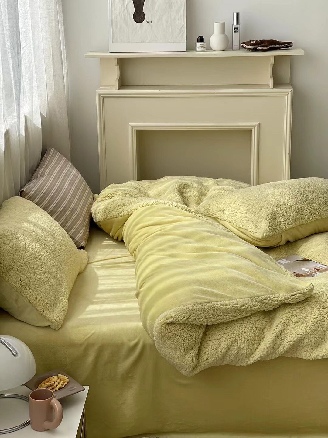 冬季加厚保暖羊駝絨+牛奶絨ins純色床上用品法萊絨羊羔絨簡約被套