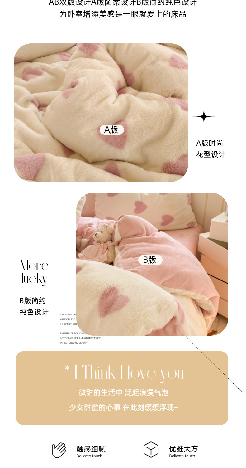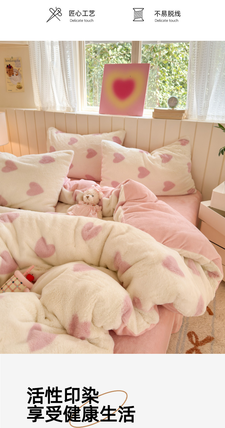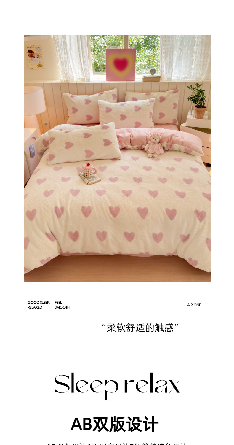 雙面加厚牛奶珊瑚絨床上四件套冬季兔毛絨床品女孩被套法蘭絨床單