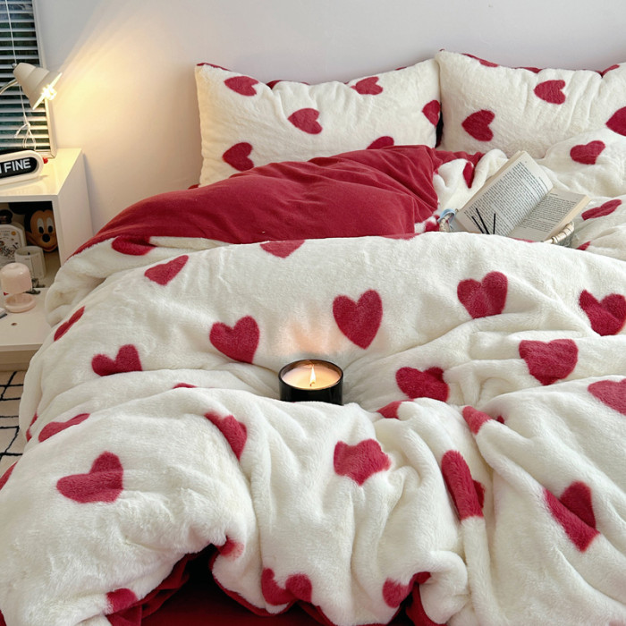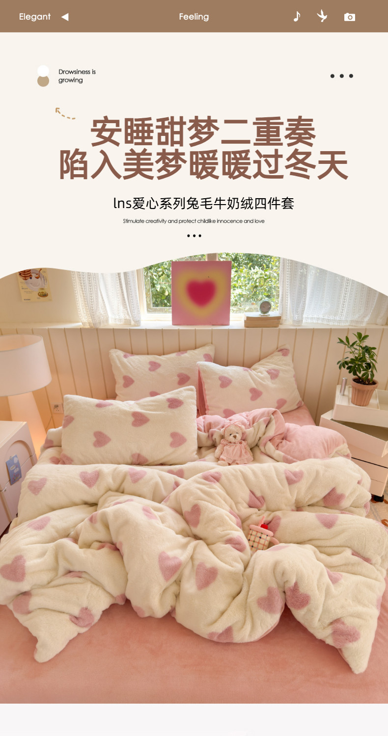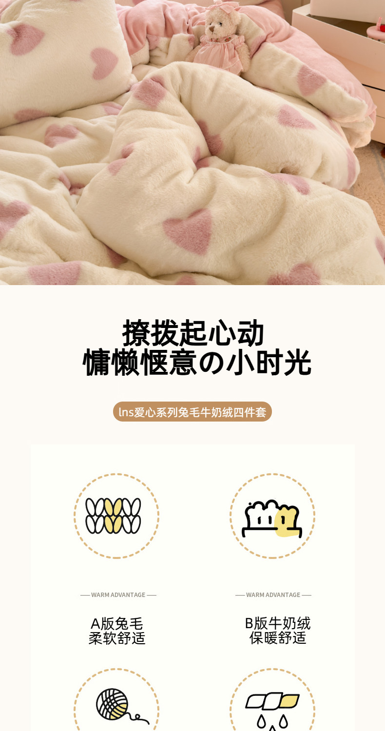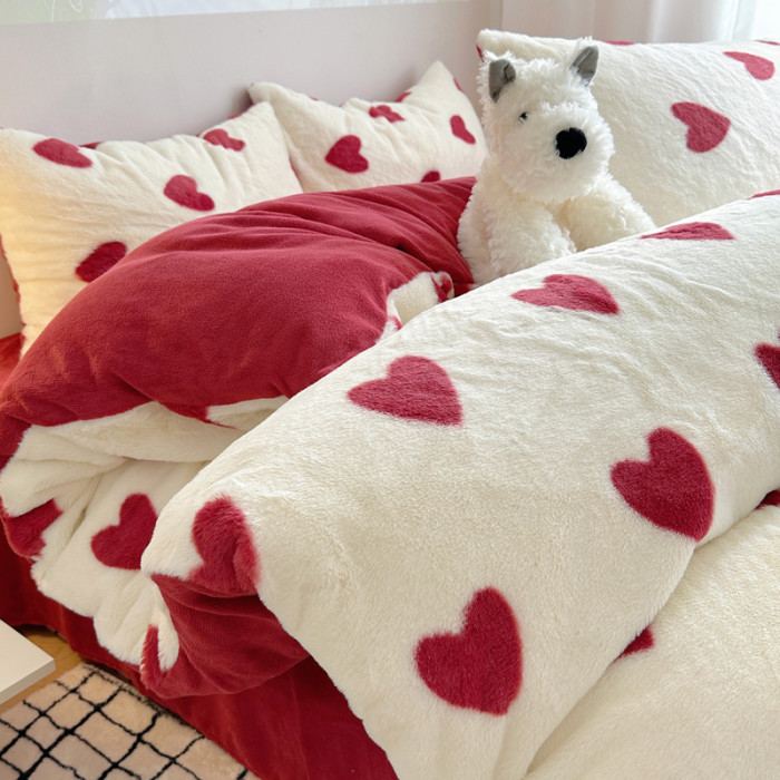 雙面加厚牛奶珊瑚絨床上四件套冬季兔毛絨床品女孩被套法蘭絨床單