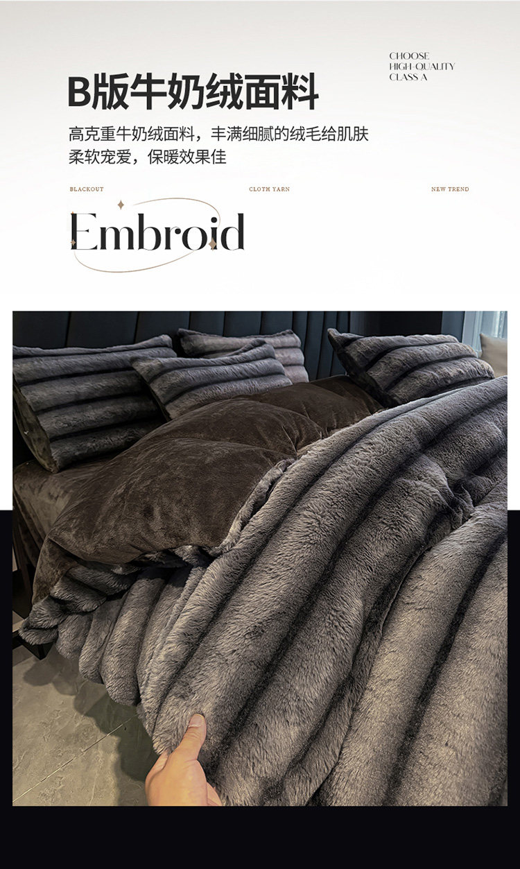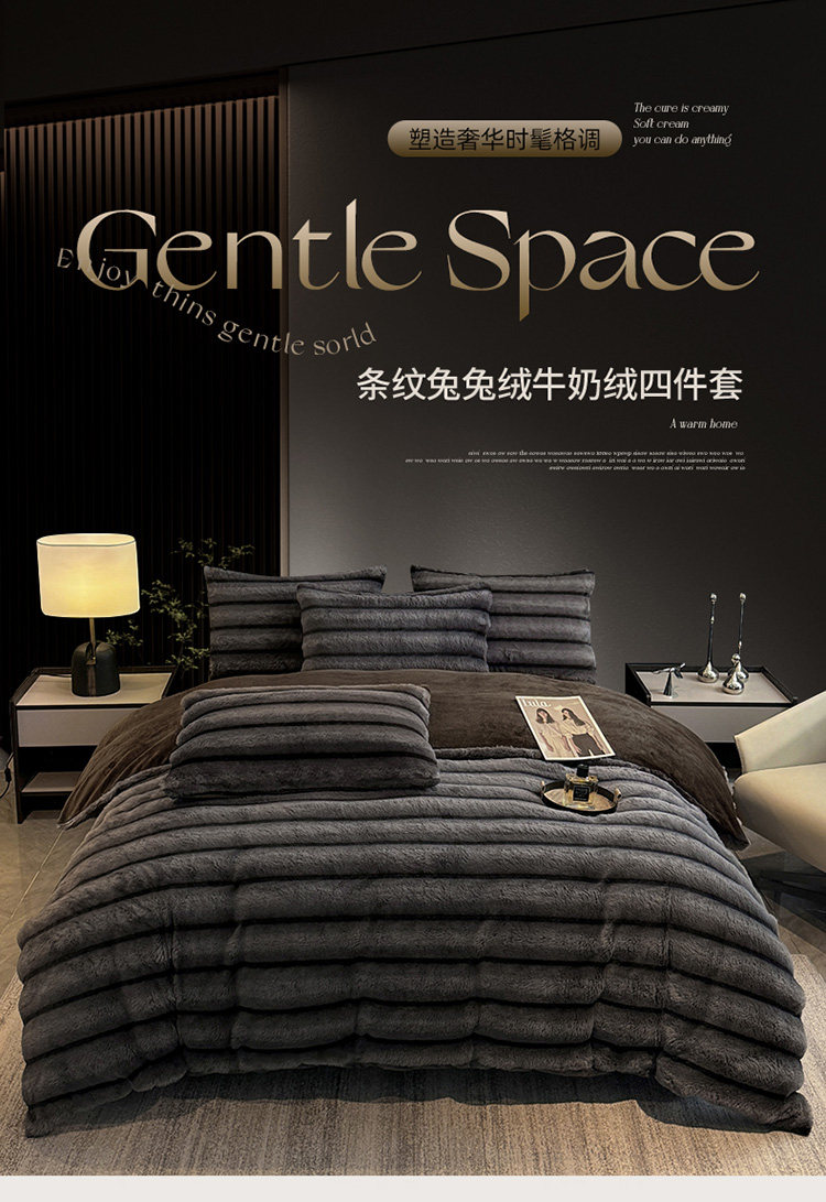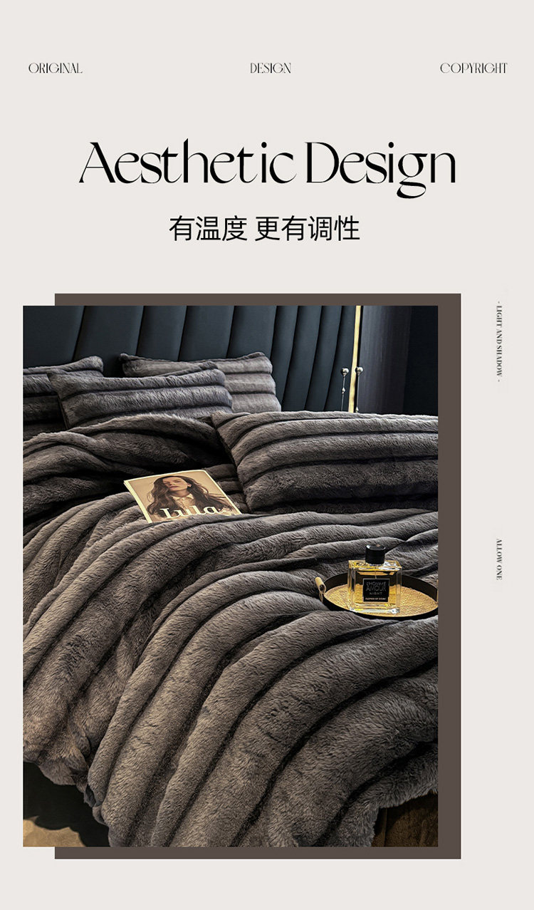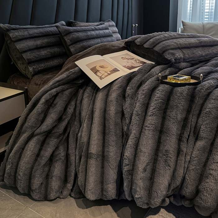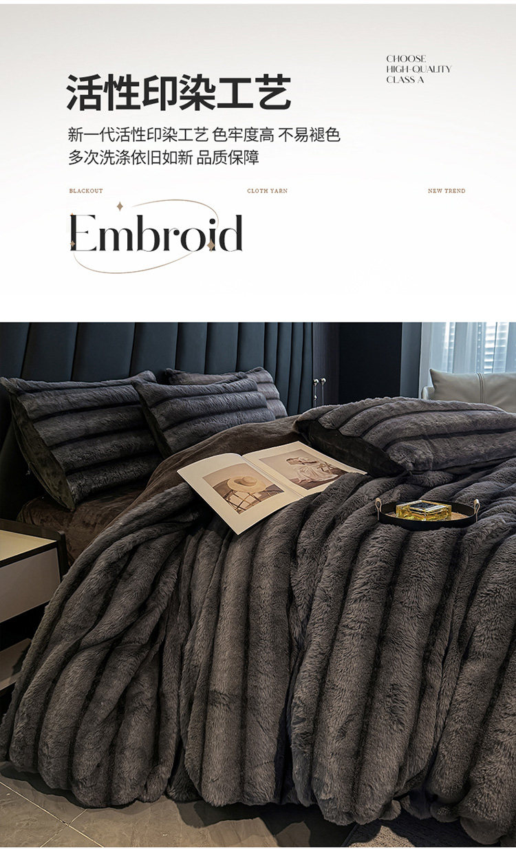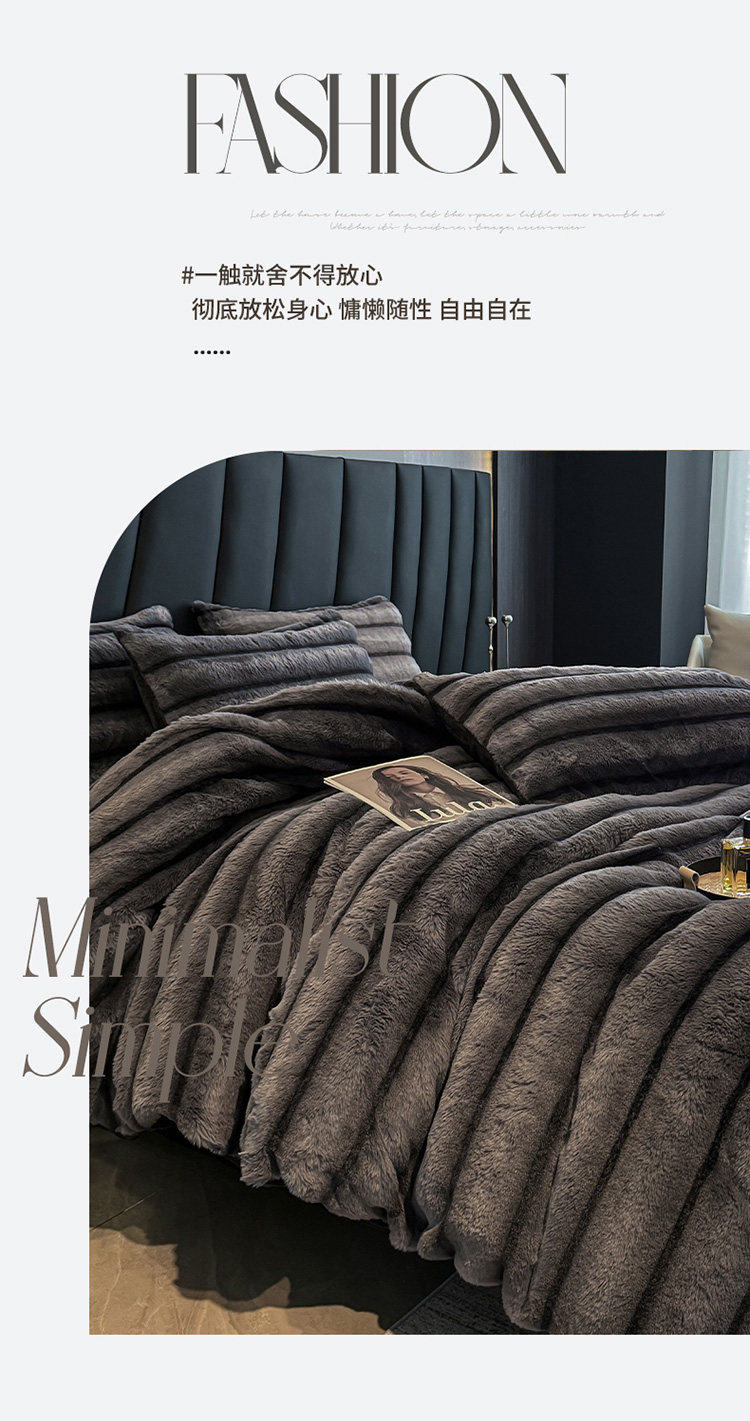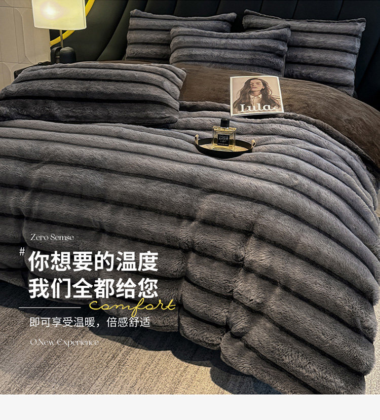 冬季A類兔毛絨四件套牛奶絨珊瑚絨加厚被套床單輕奢風高級感床品4