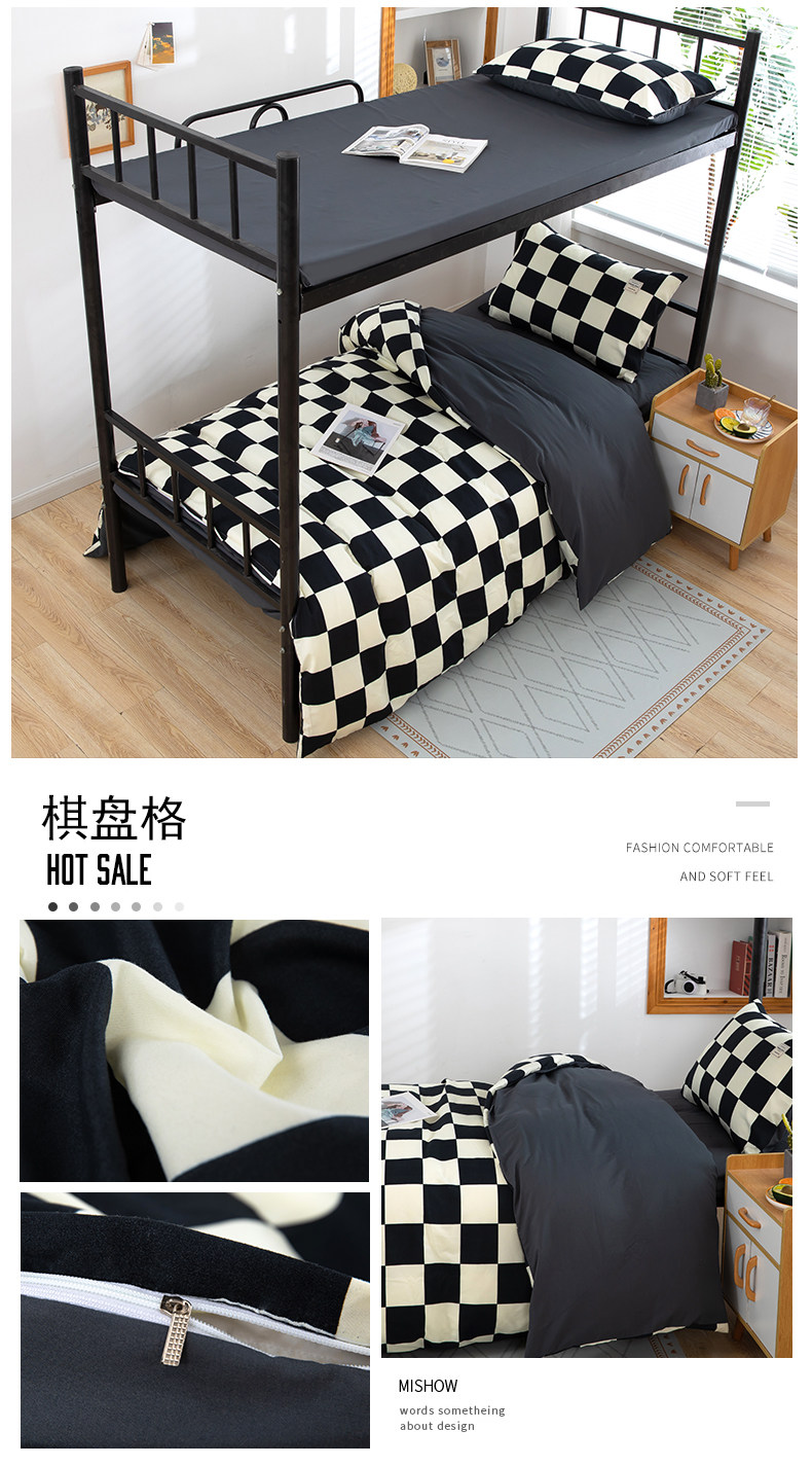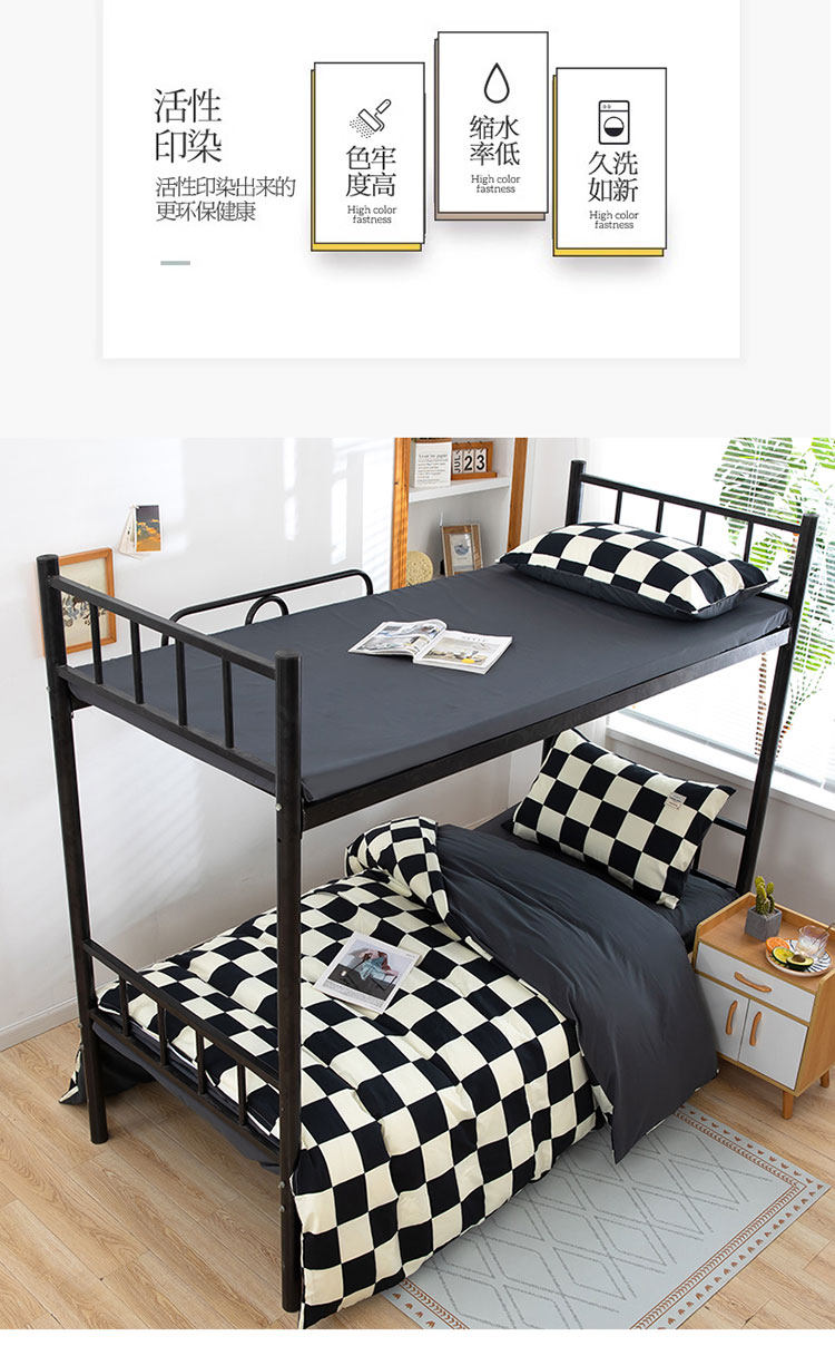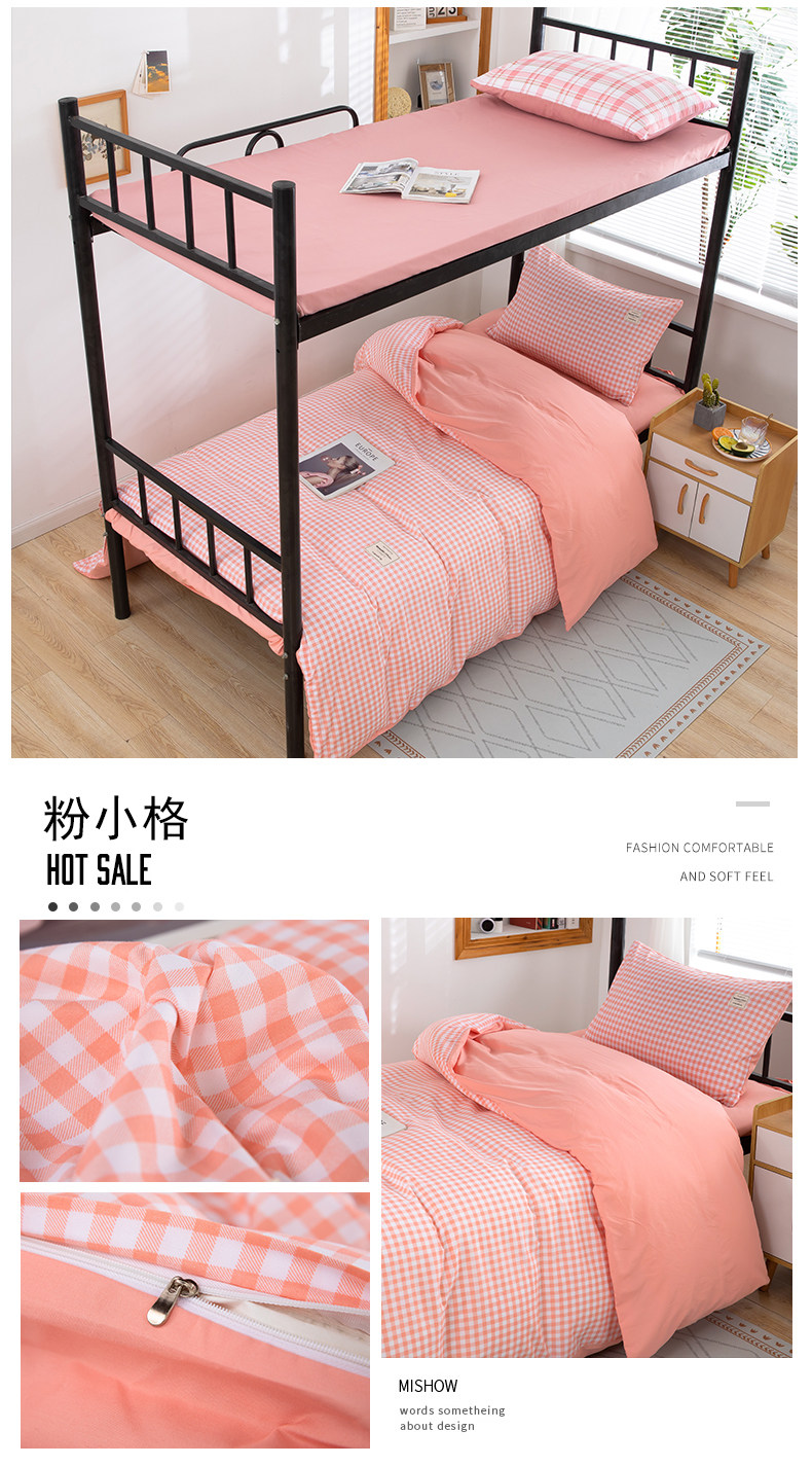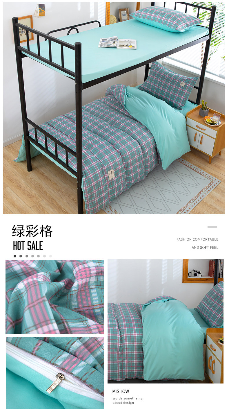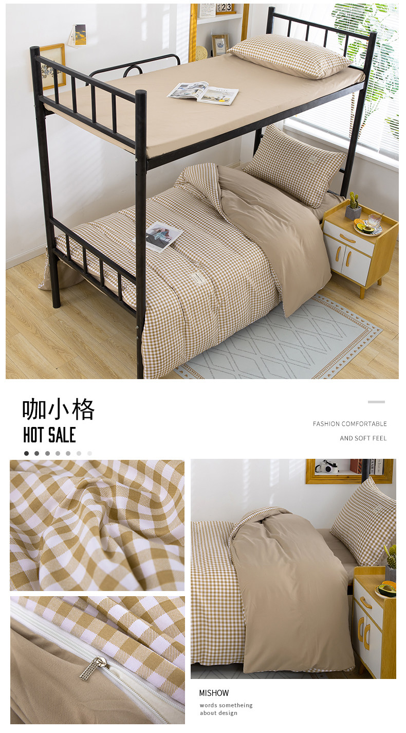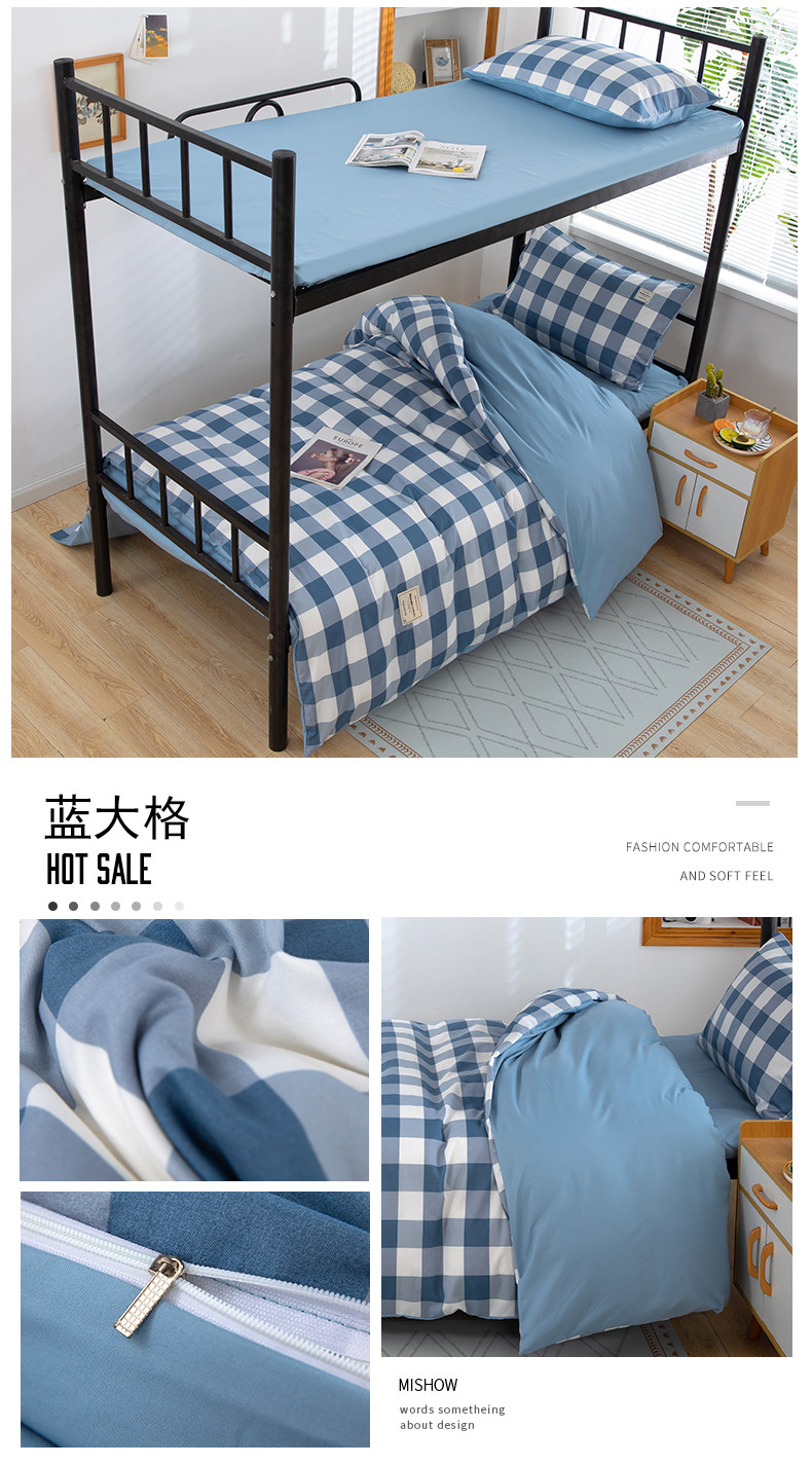 南通學生宿捨床上四件套全棉純棉磨毛兒童單人上下鋪格子三件套男