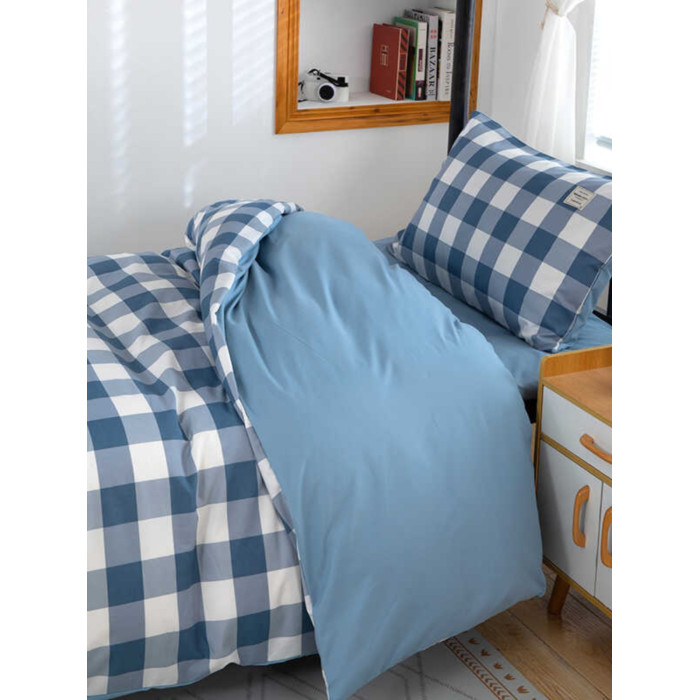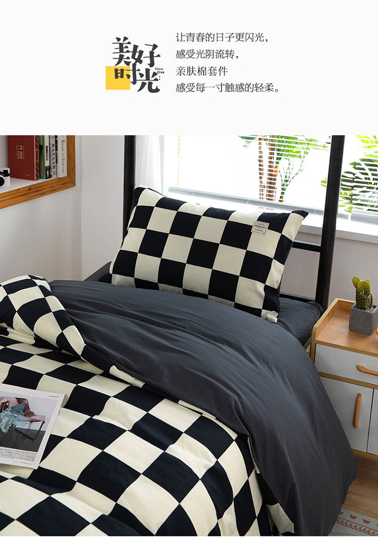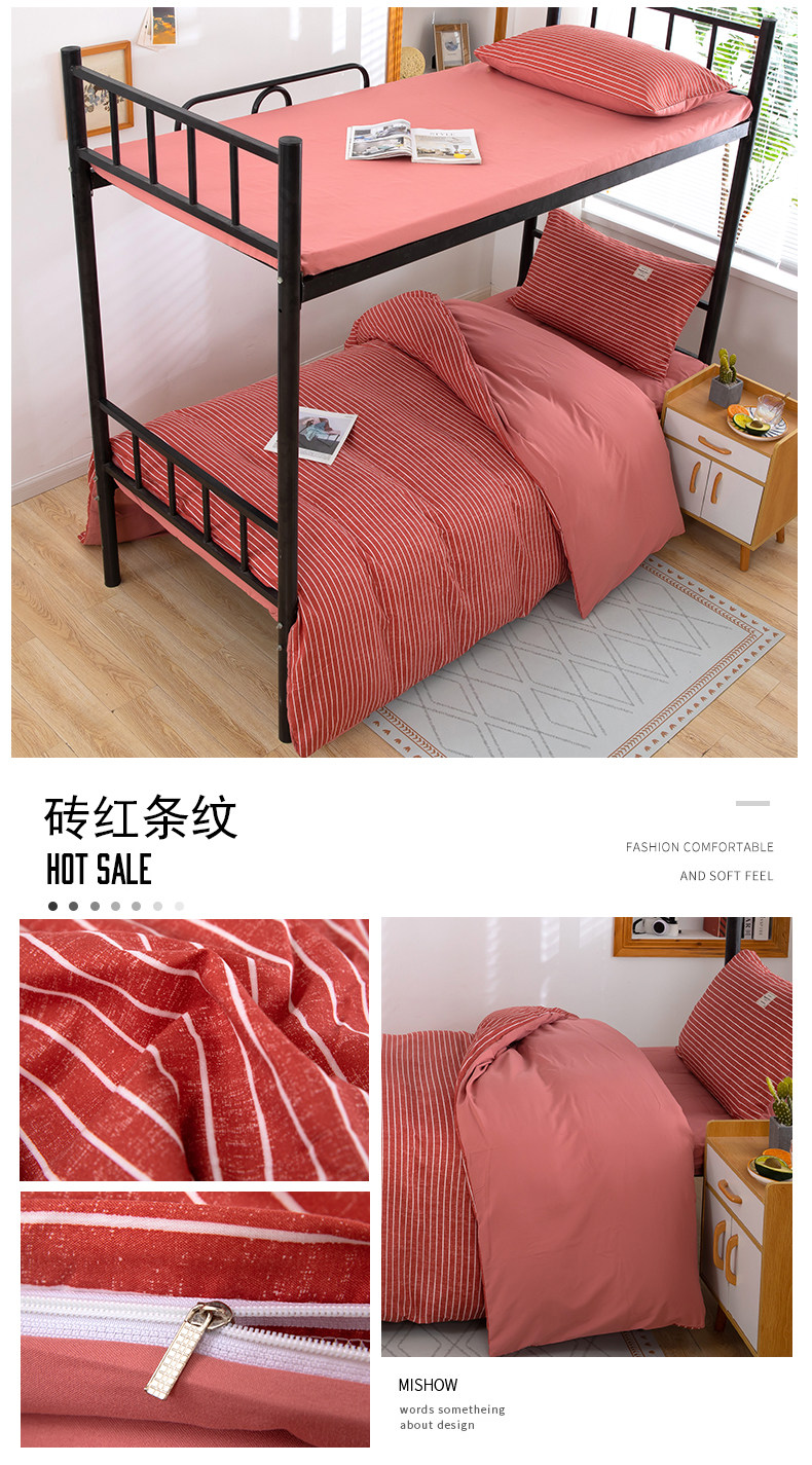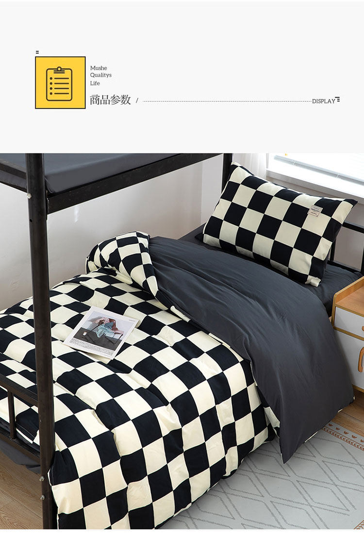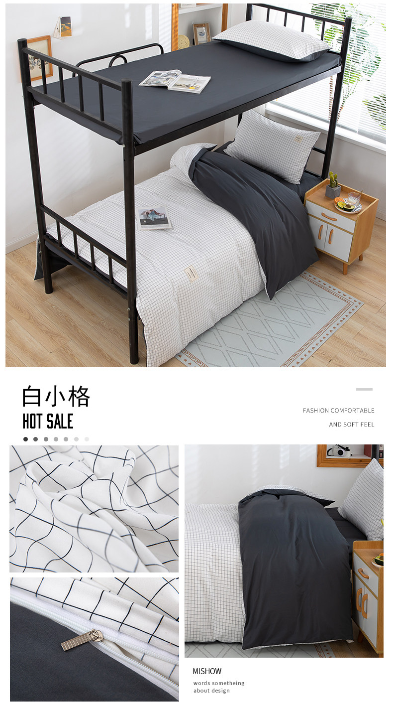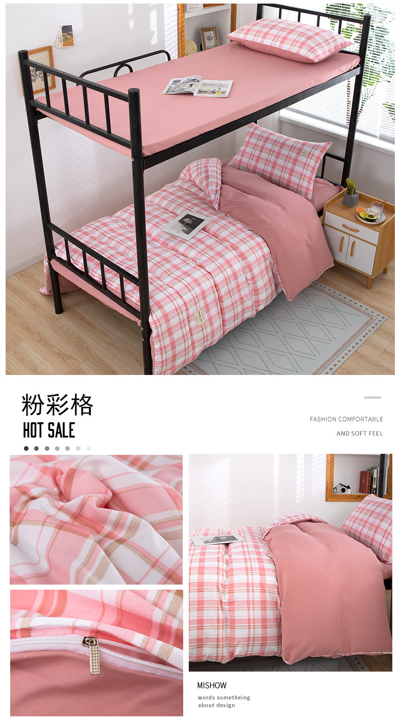 南通學生宿捨床上四件套全棉純棉磨毛兒童單人上下鋪格子三件套男