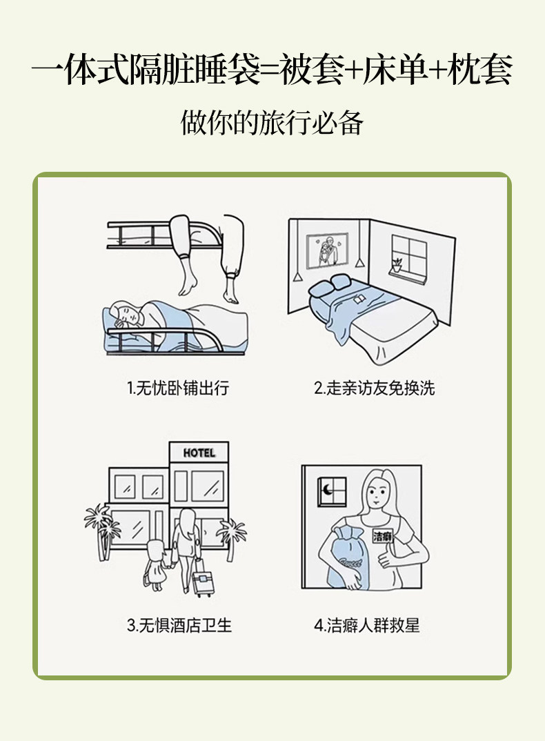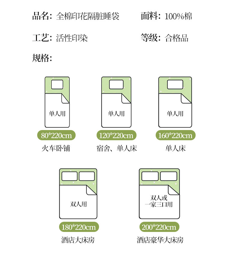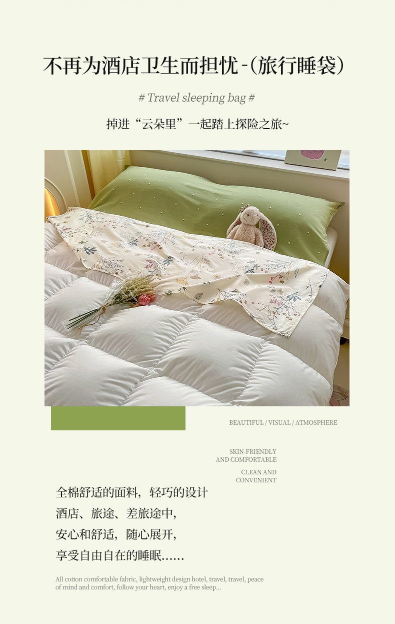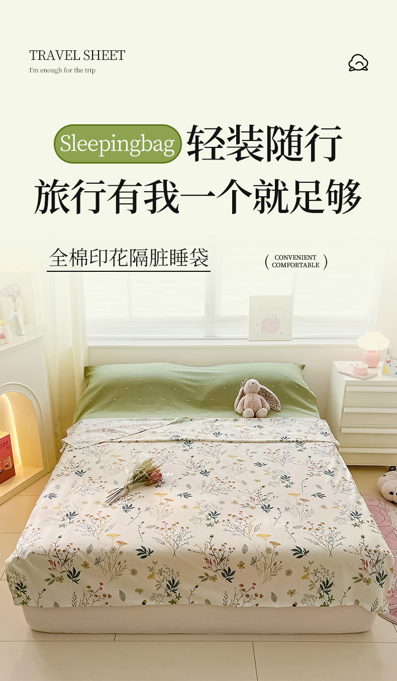 無印良品新款全棉睡袋酒店隔髒四季通用純棉可攜式出差住床單被套