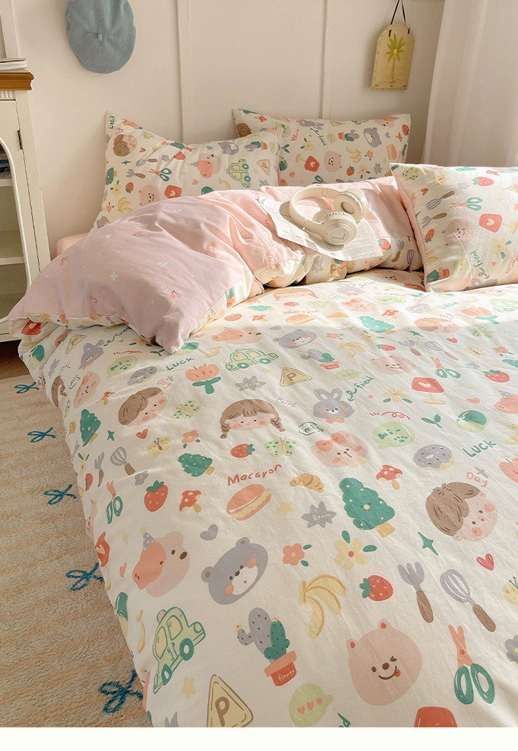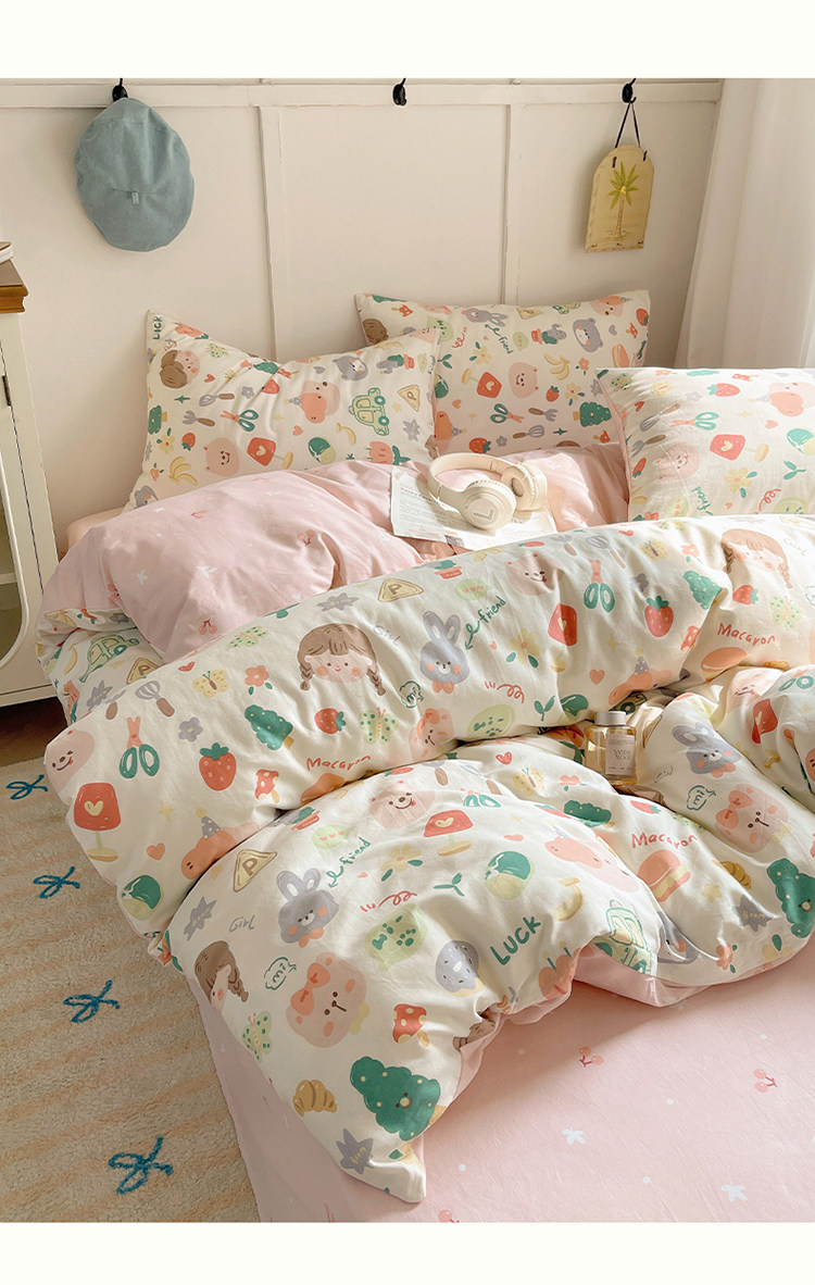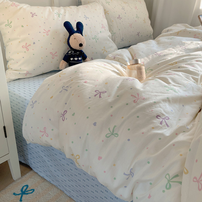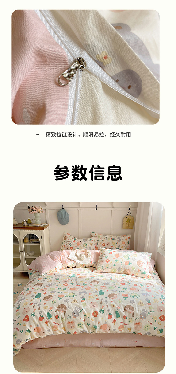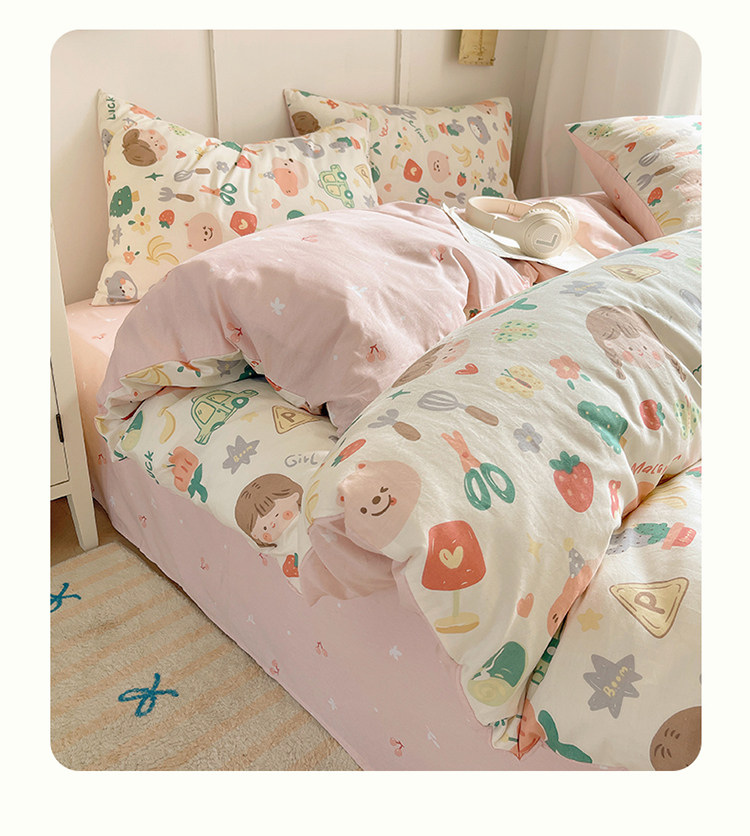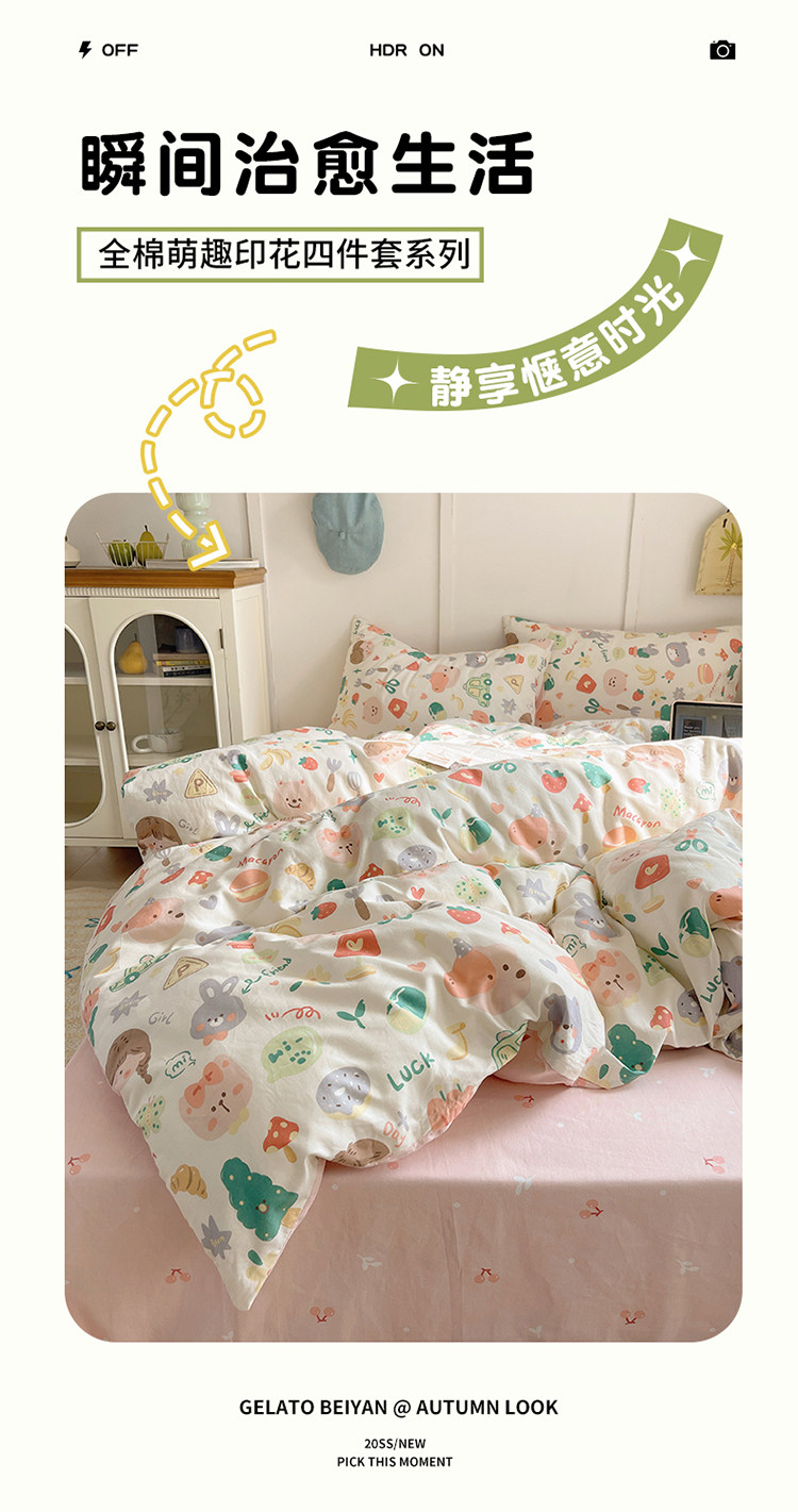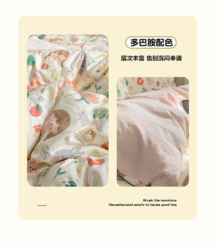 卡通全棉床上四件套公主風碎花純棉100%裸睡被套小清新床單三件套