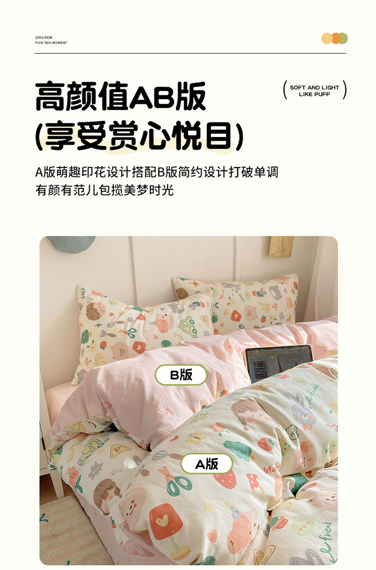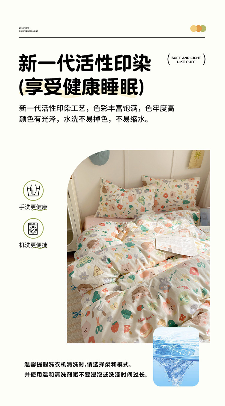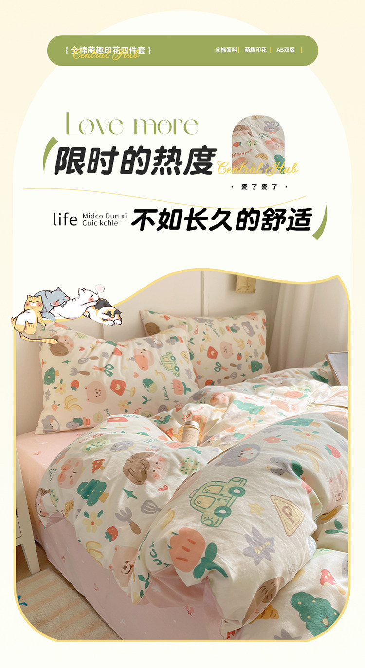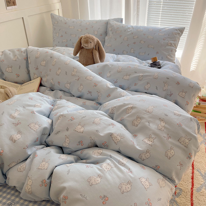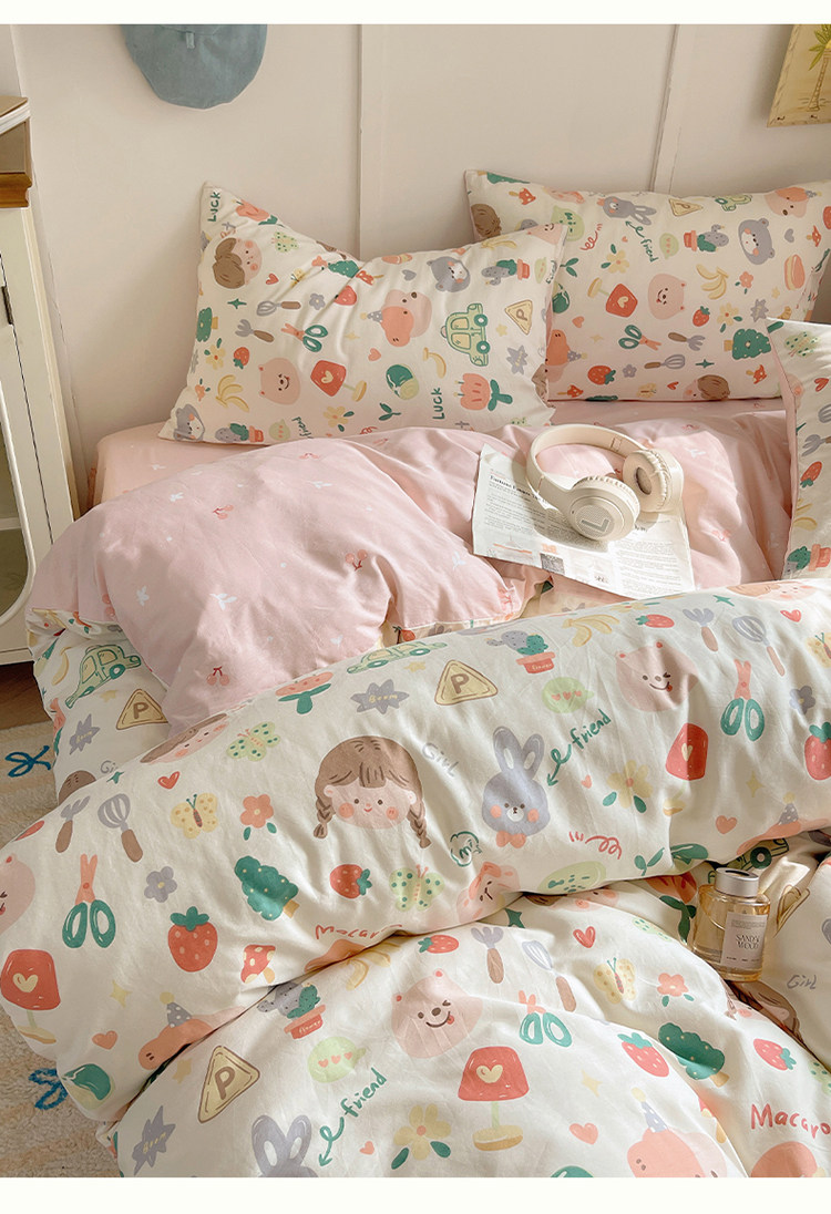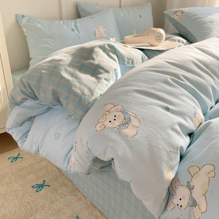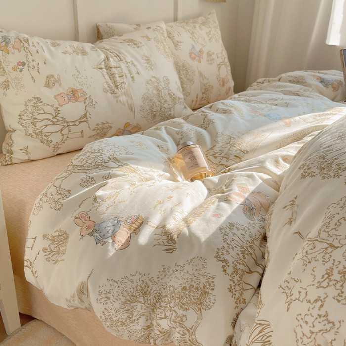 卡通全棉床上四件套公主風碎花純棉100%裸睡被套小清新床單三件套