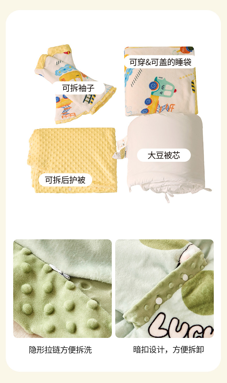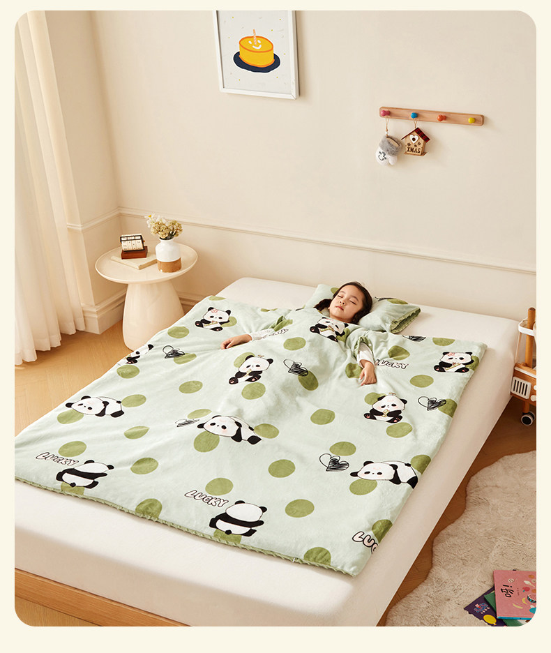 兒童睡袋寶寶睡覺防踢被子神器嬰兒棉被秋冬季小孩牛奶絨大童冬被