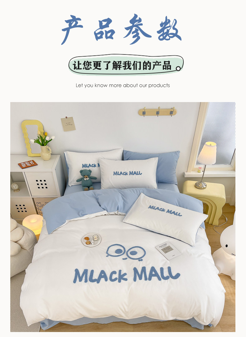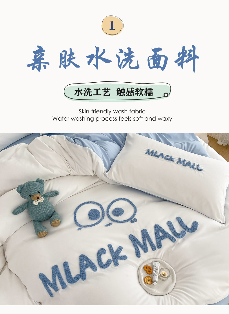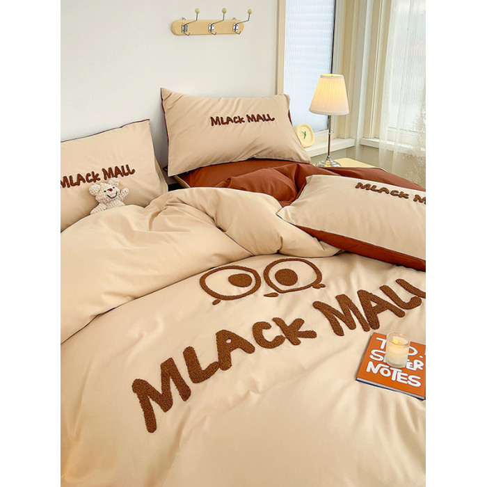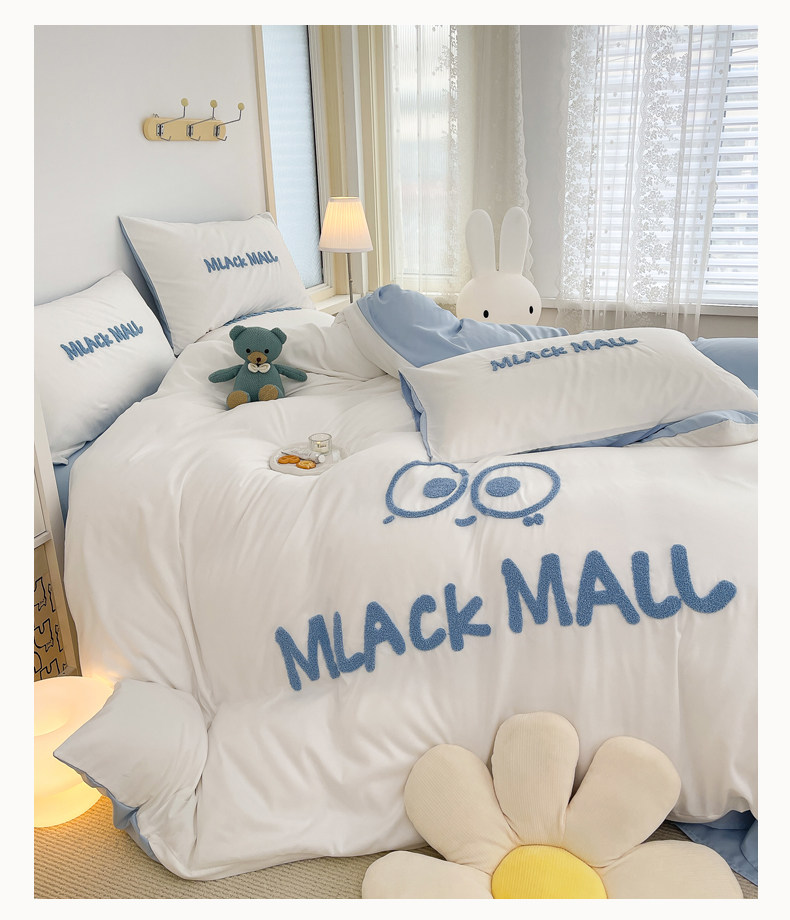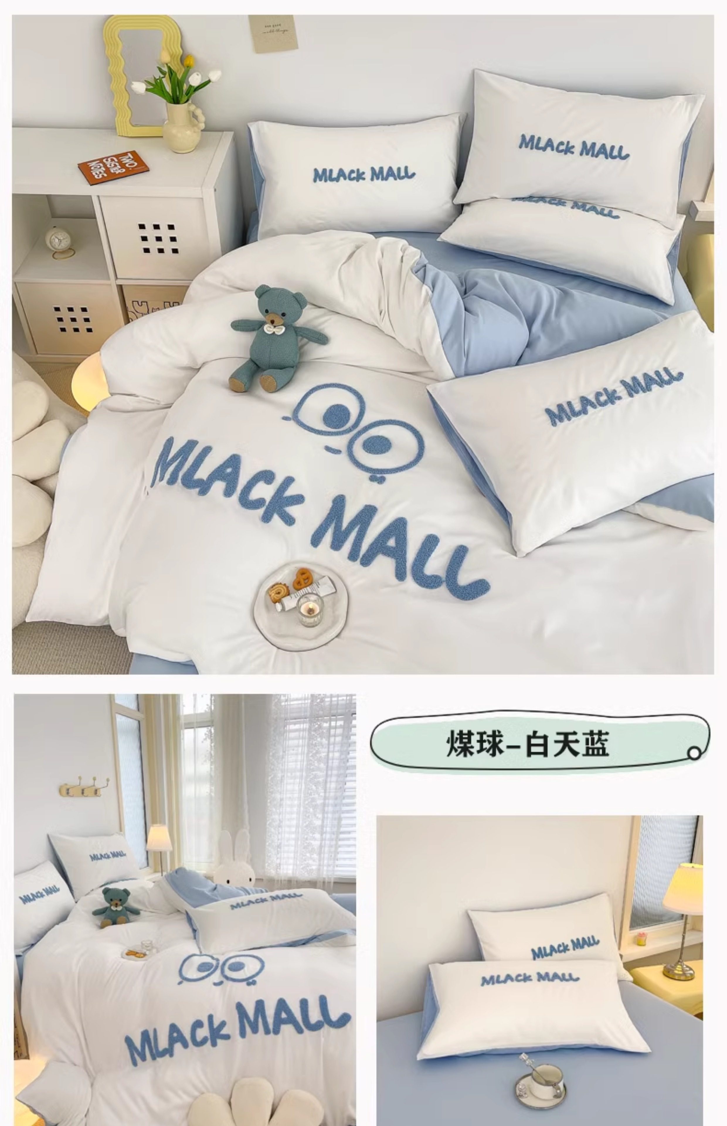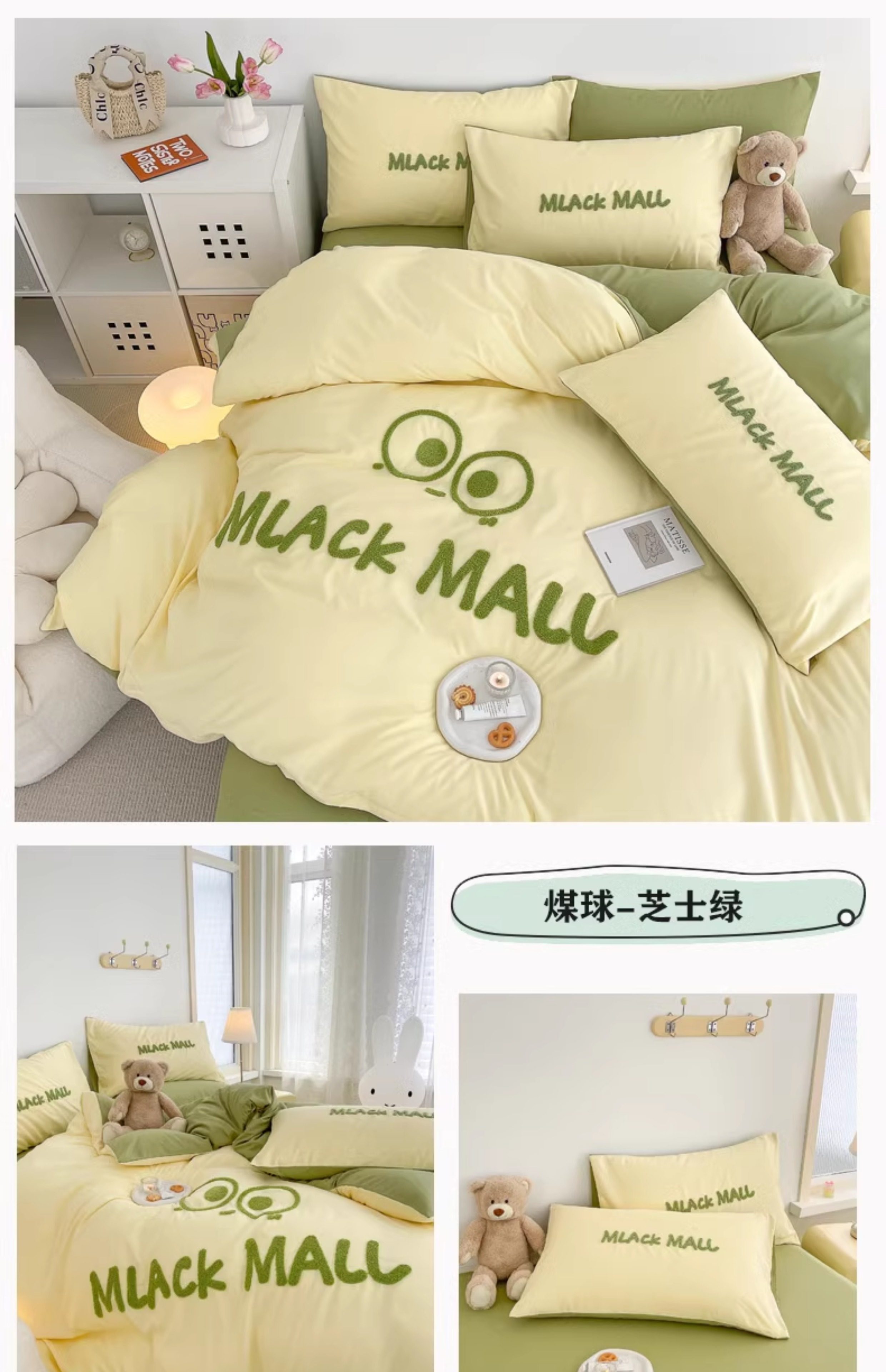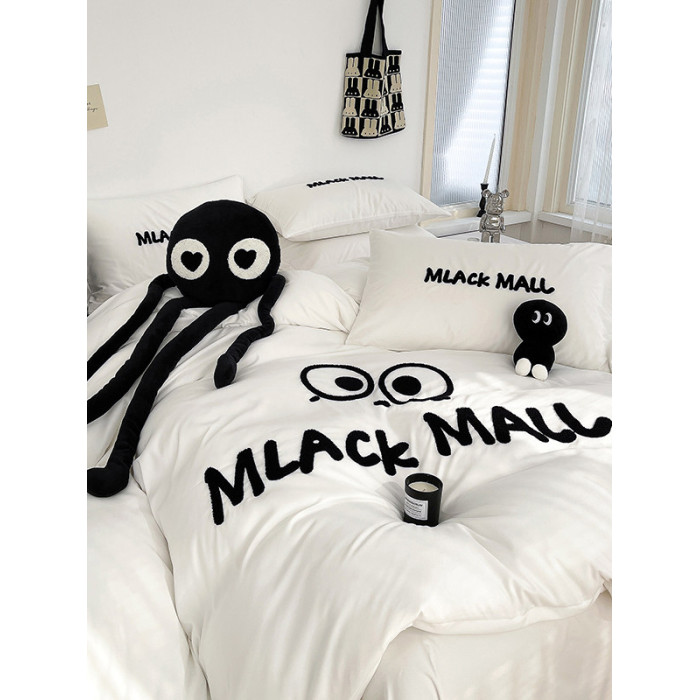 日系風可愛小黑怪黑煤球裸睡水洗棉四件套床包卡通床單宿捨三件套