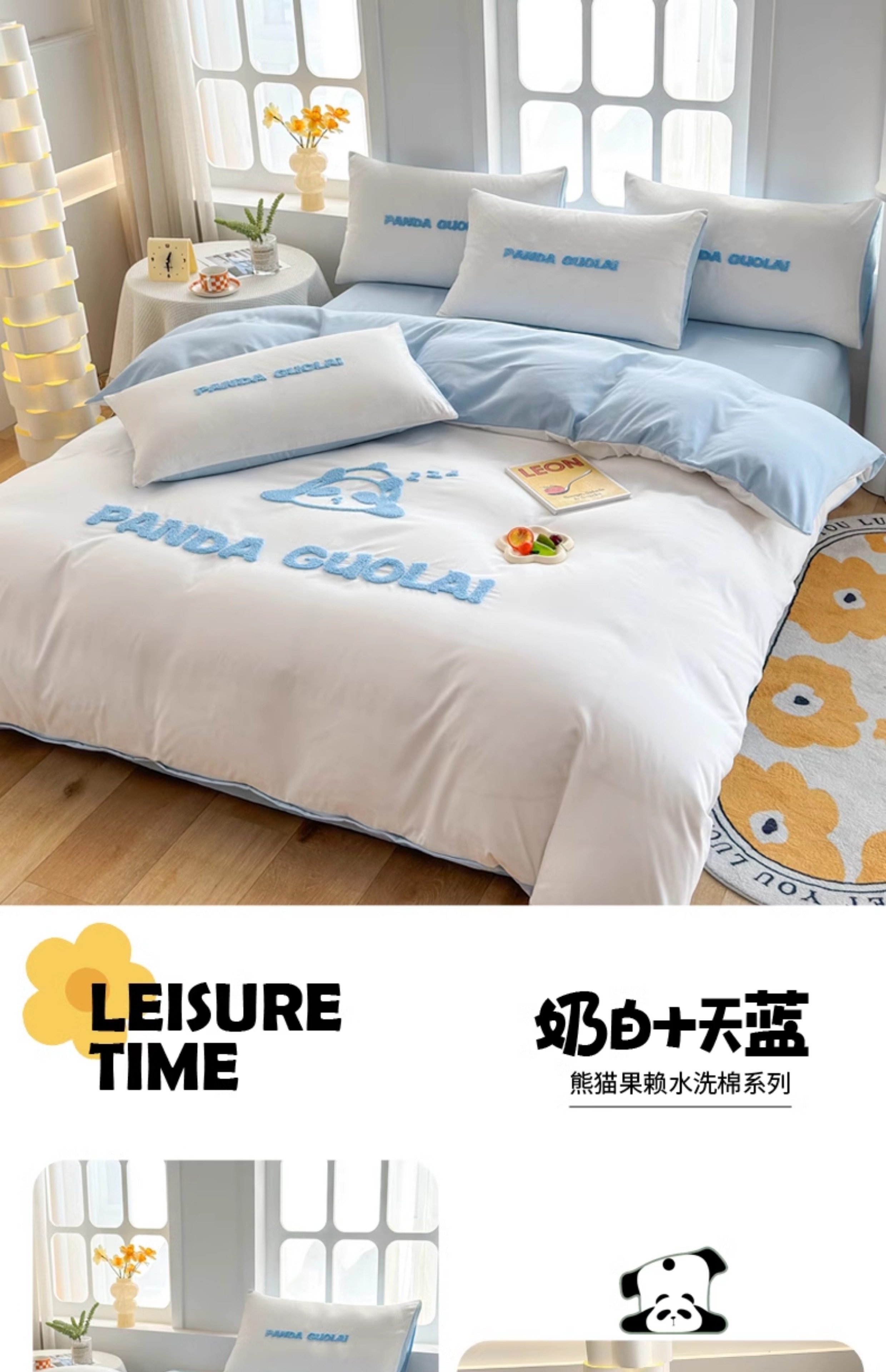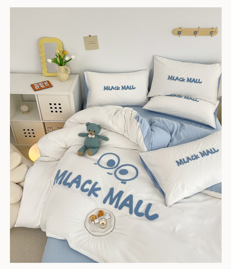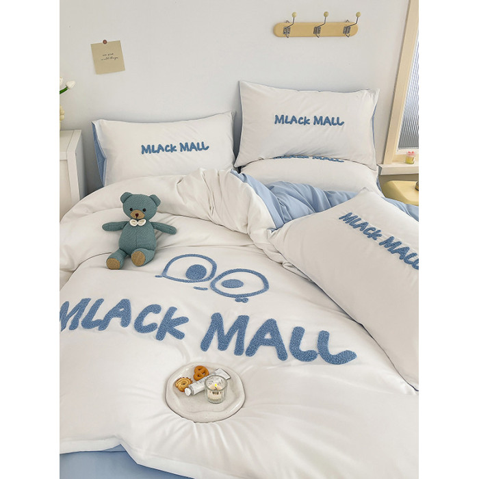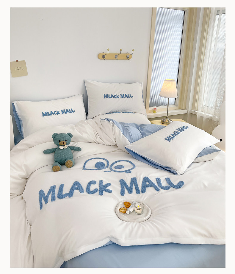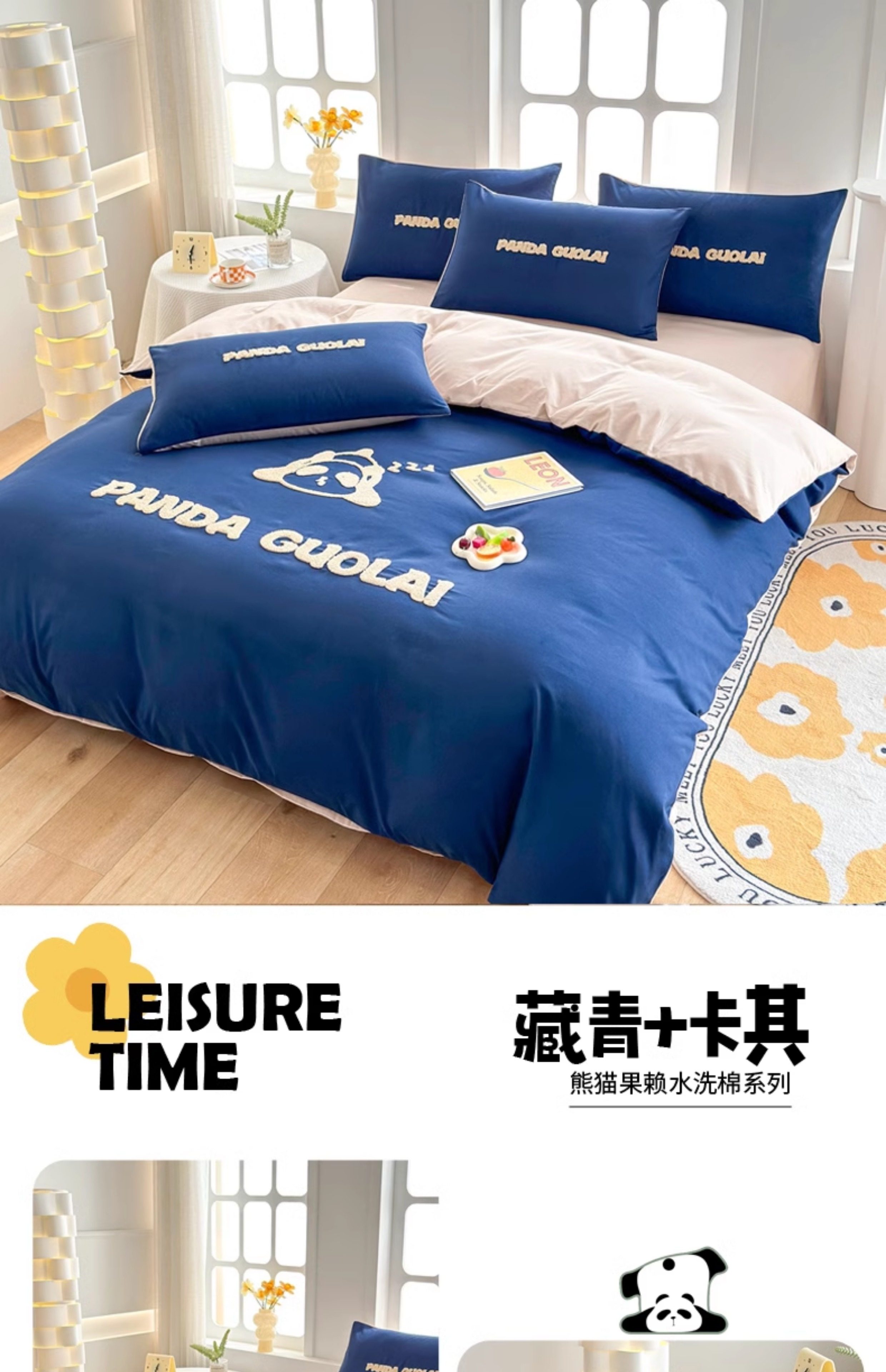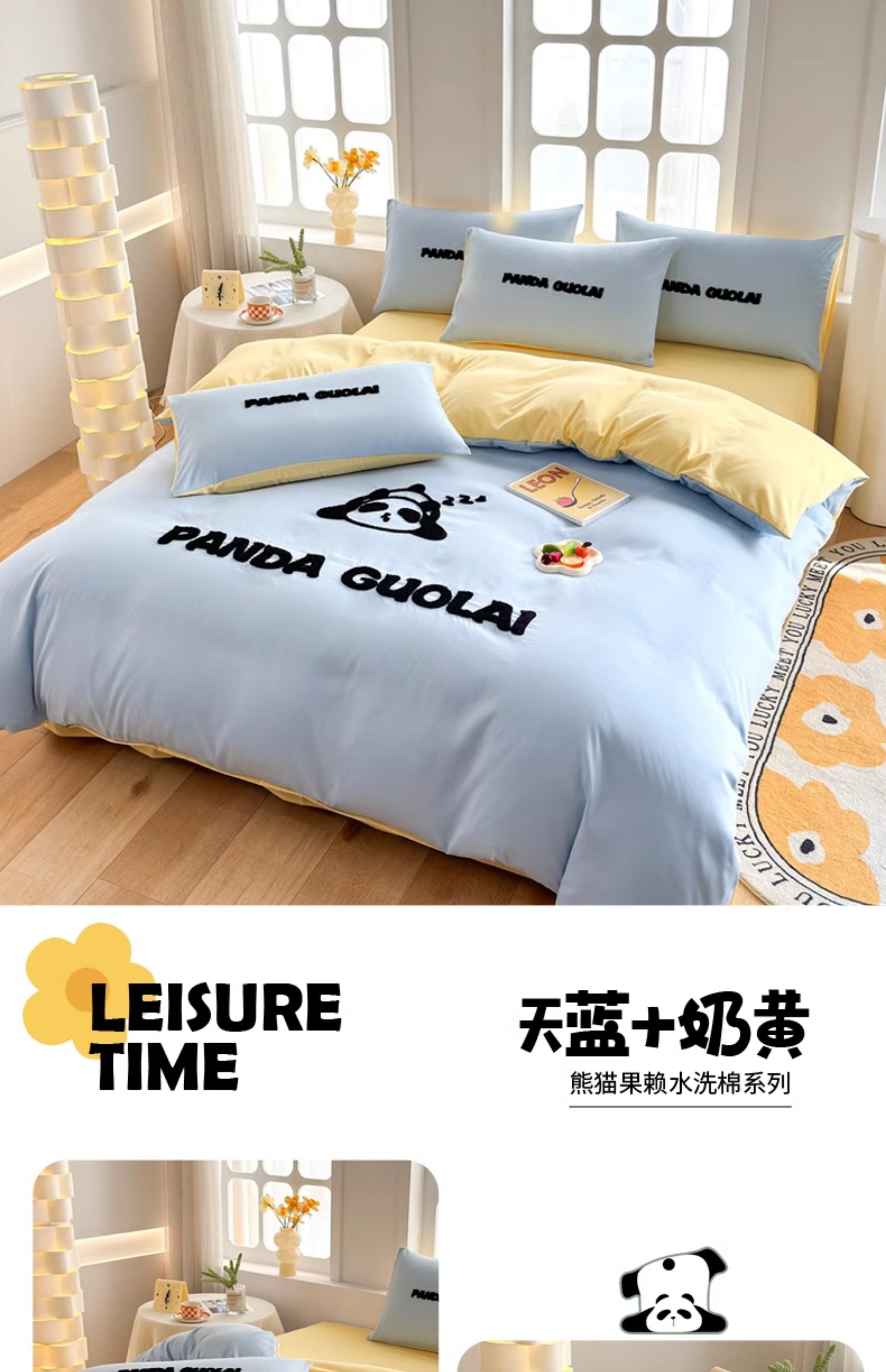 日系風可愛小黑怪黑煤球裸睡水洗棉四件套床包卡通床單宿捨三件套