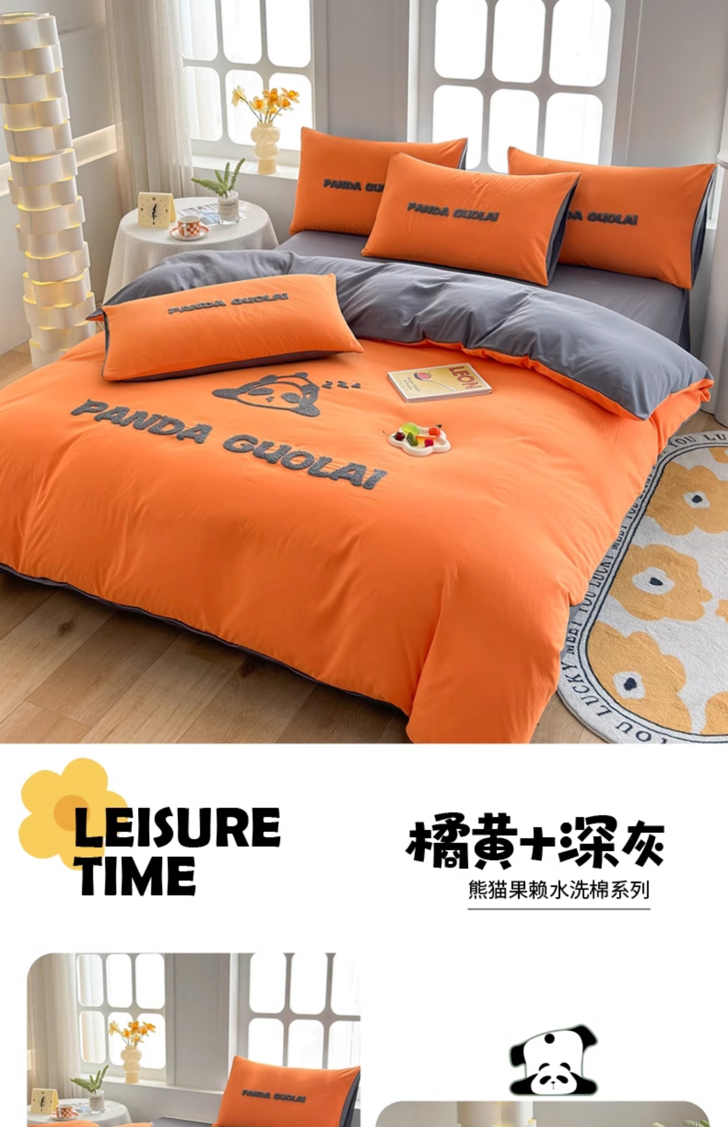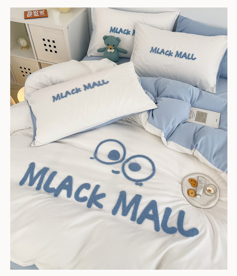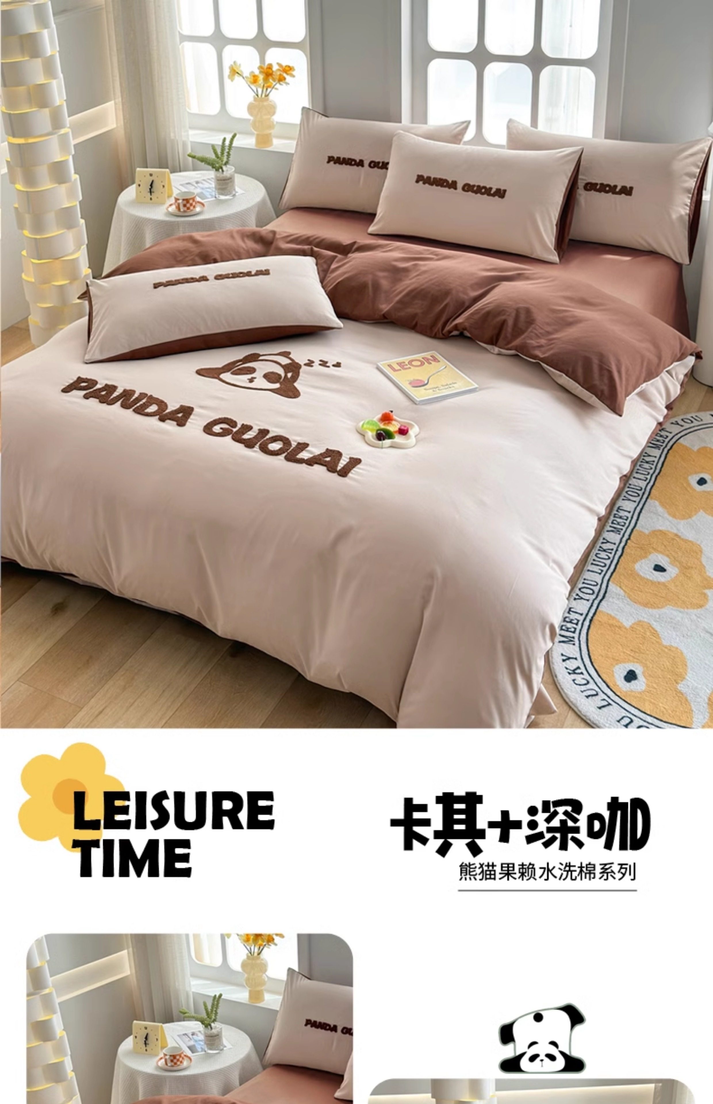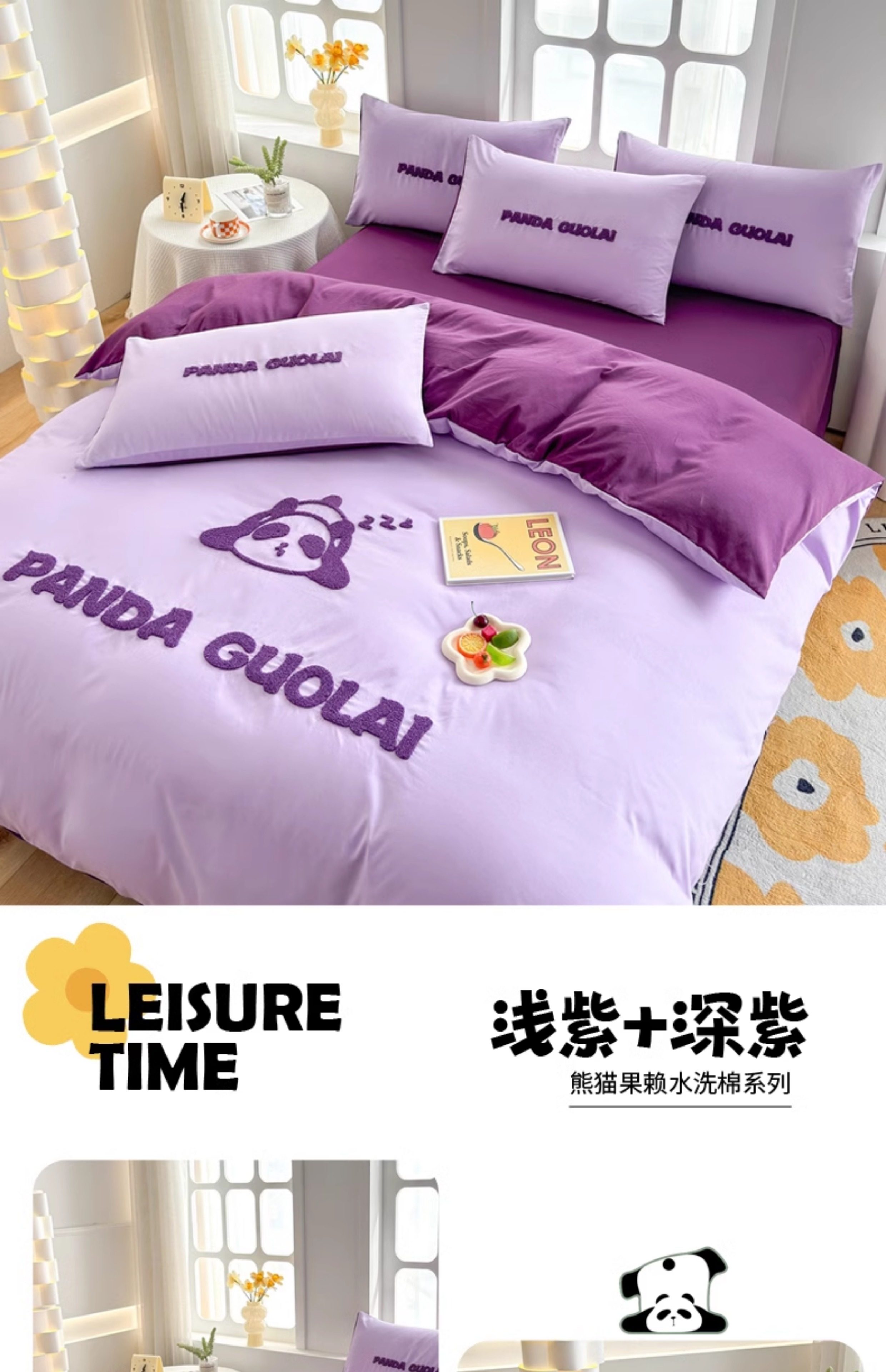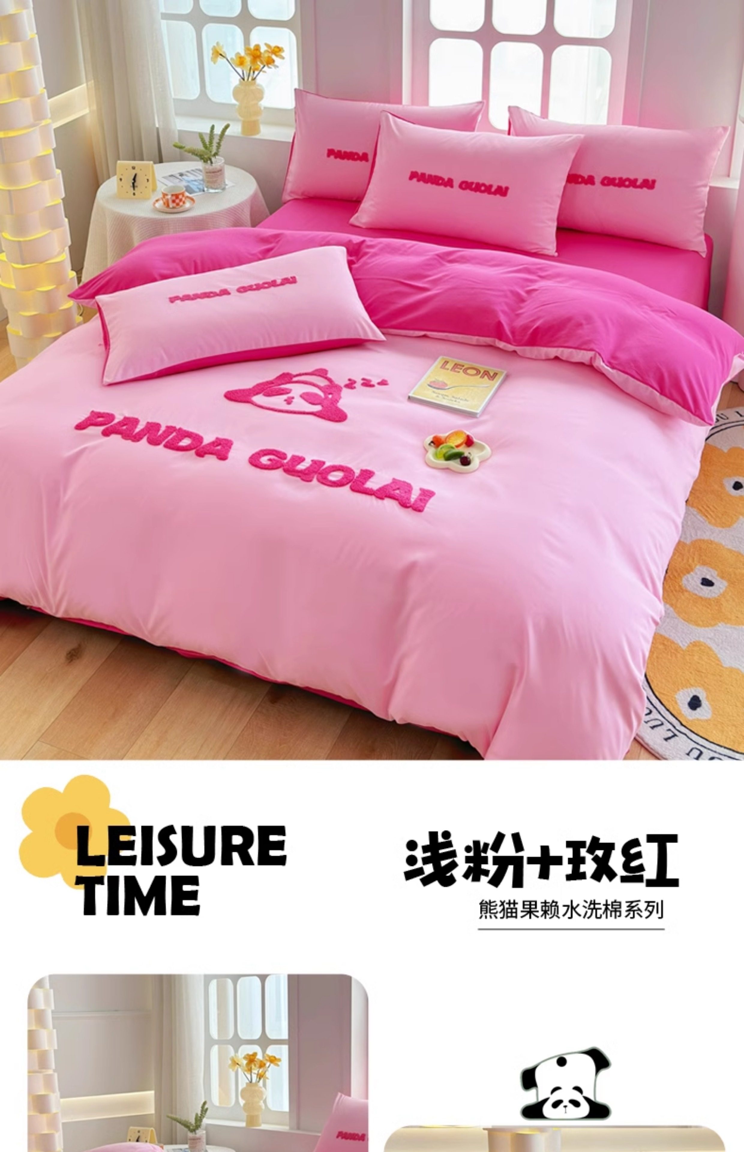 日系風可愛小黑怪黑煤球裸睡水洗棉四件套床包卡通床單宿捨三件套