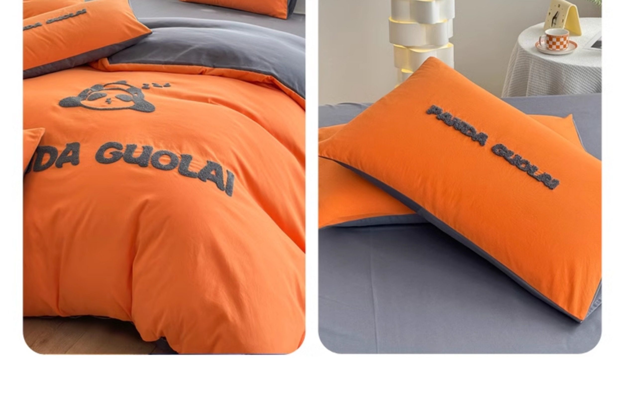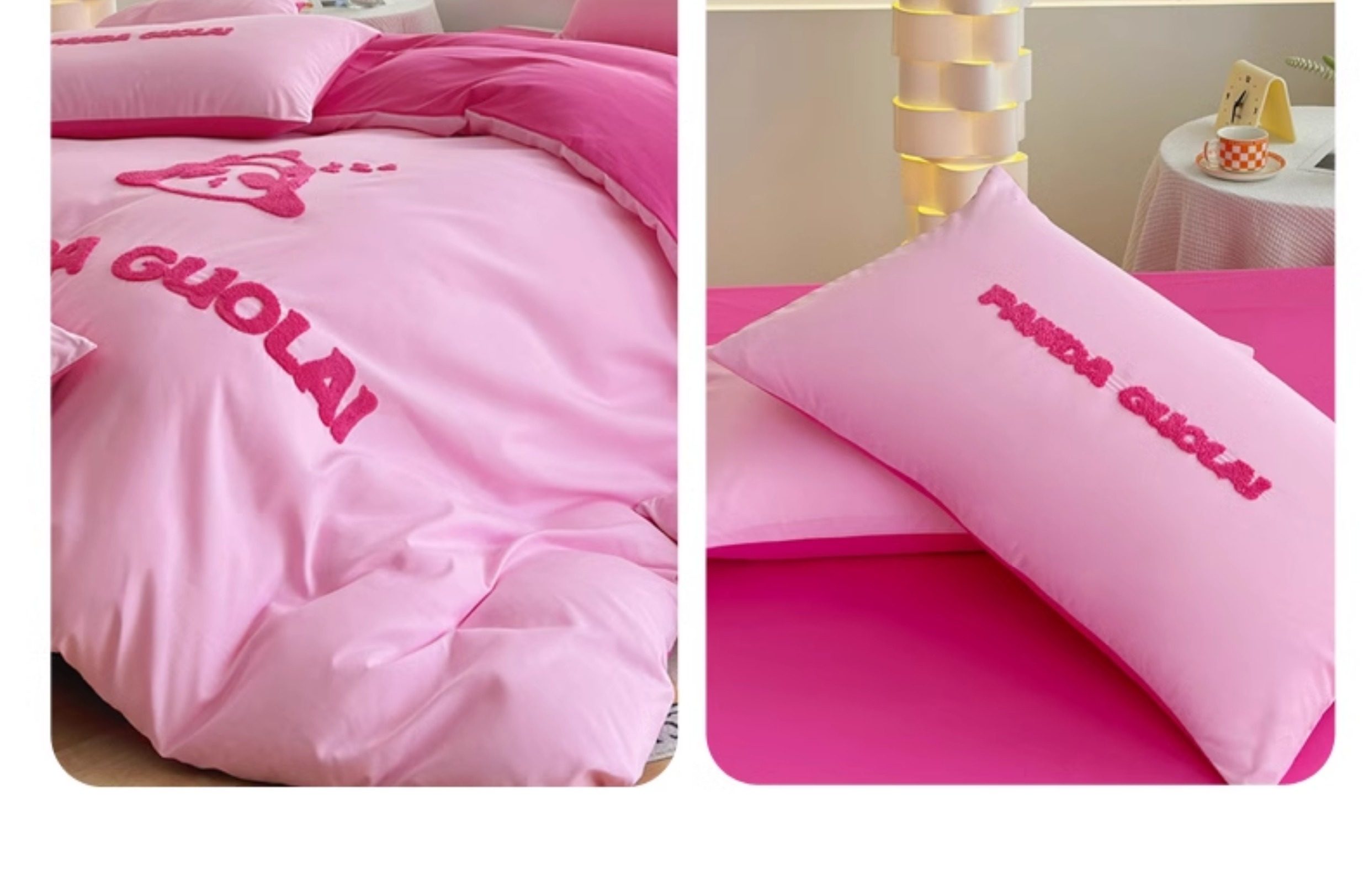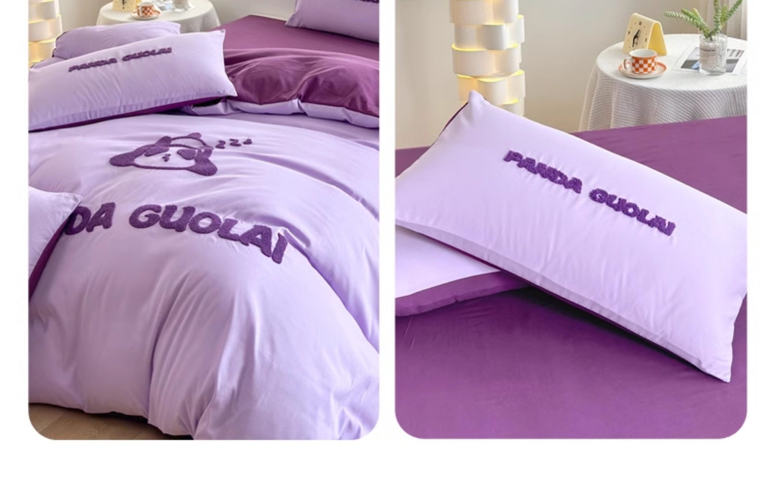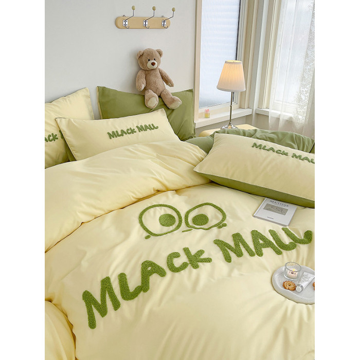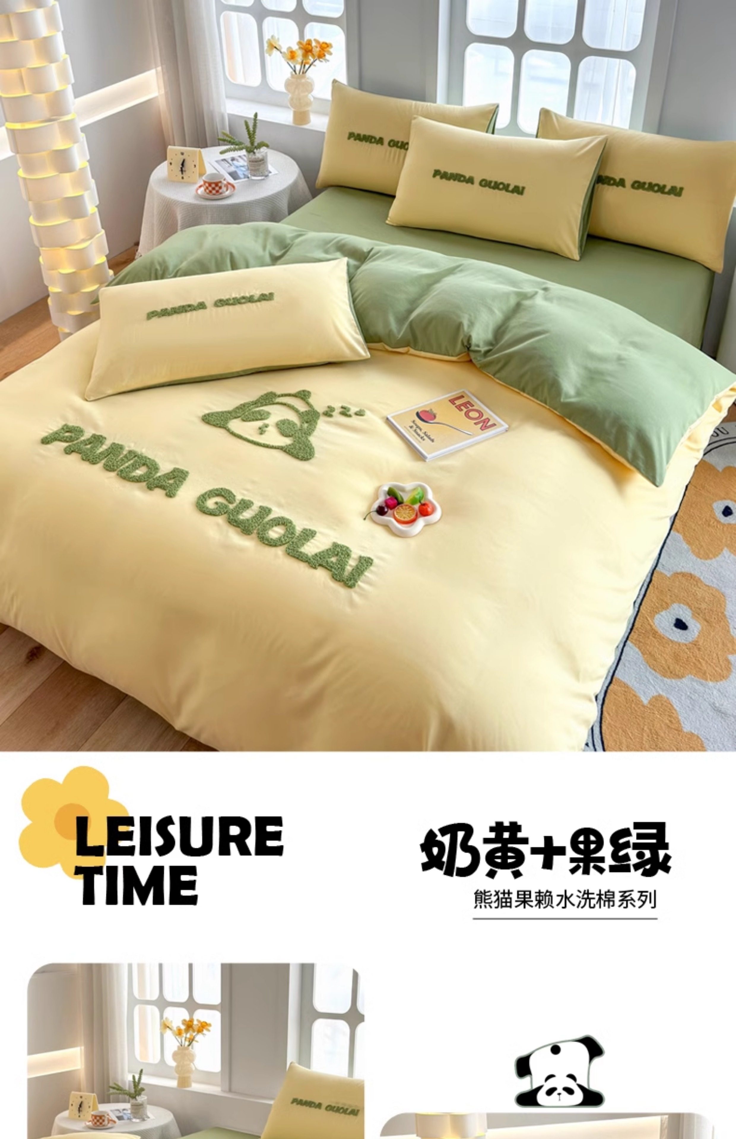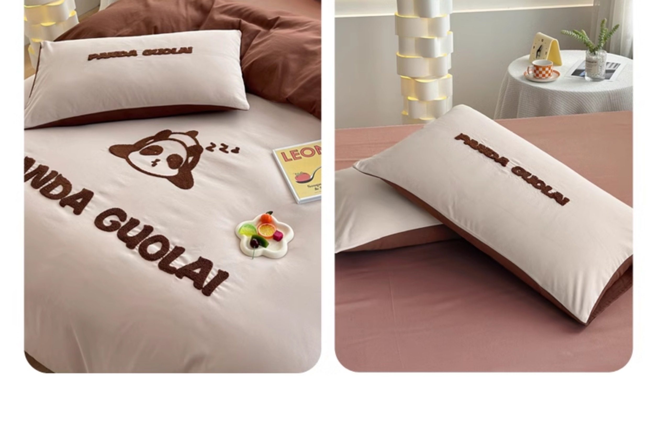 日系風可愛小黑怪黑煤球裸睡水洗棉四件套床包卡通床單宿捨三件套