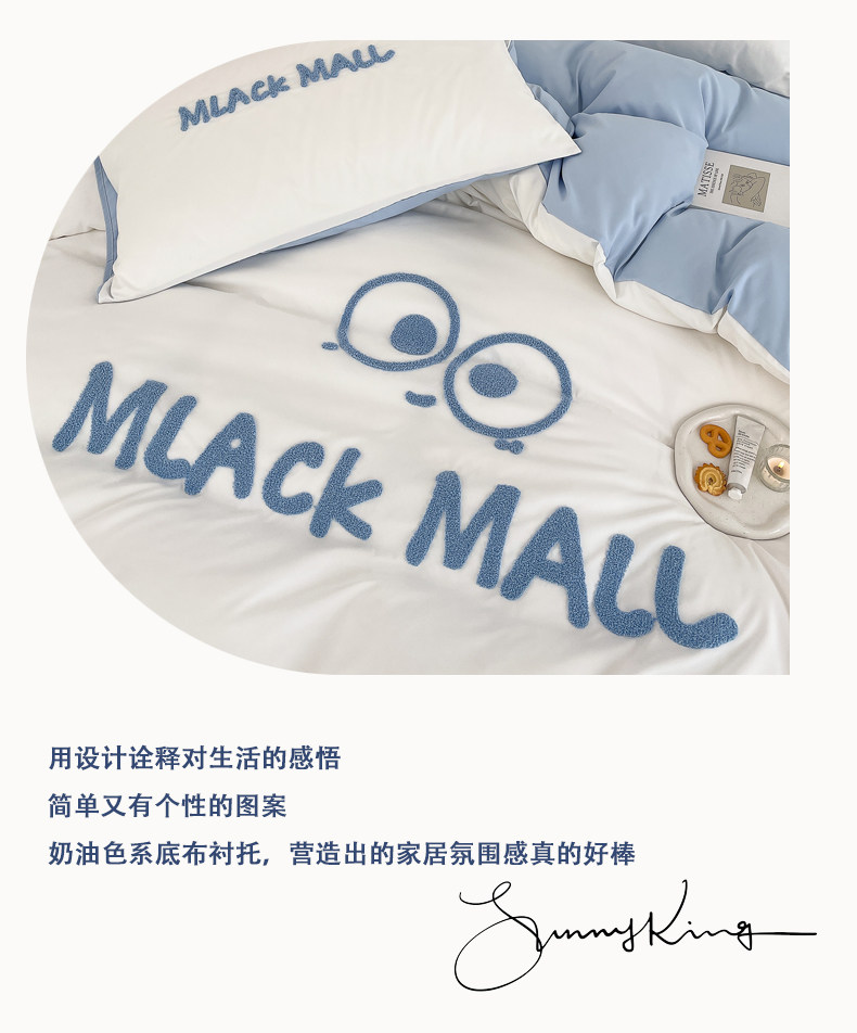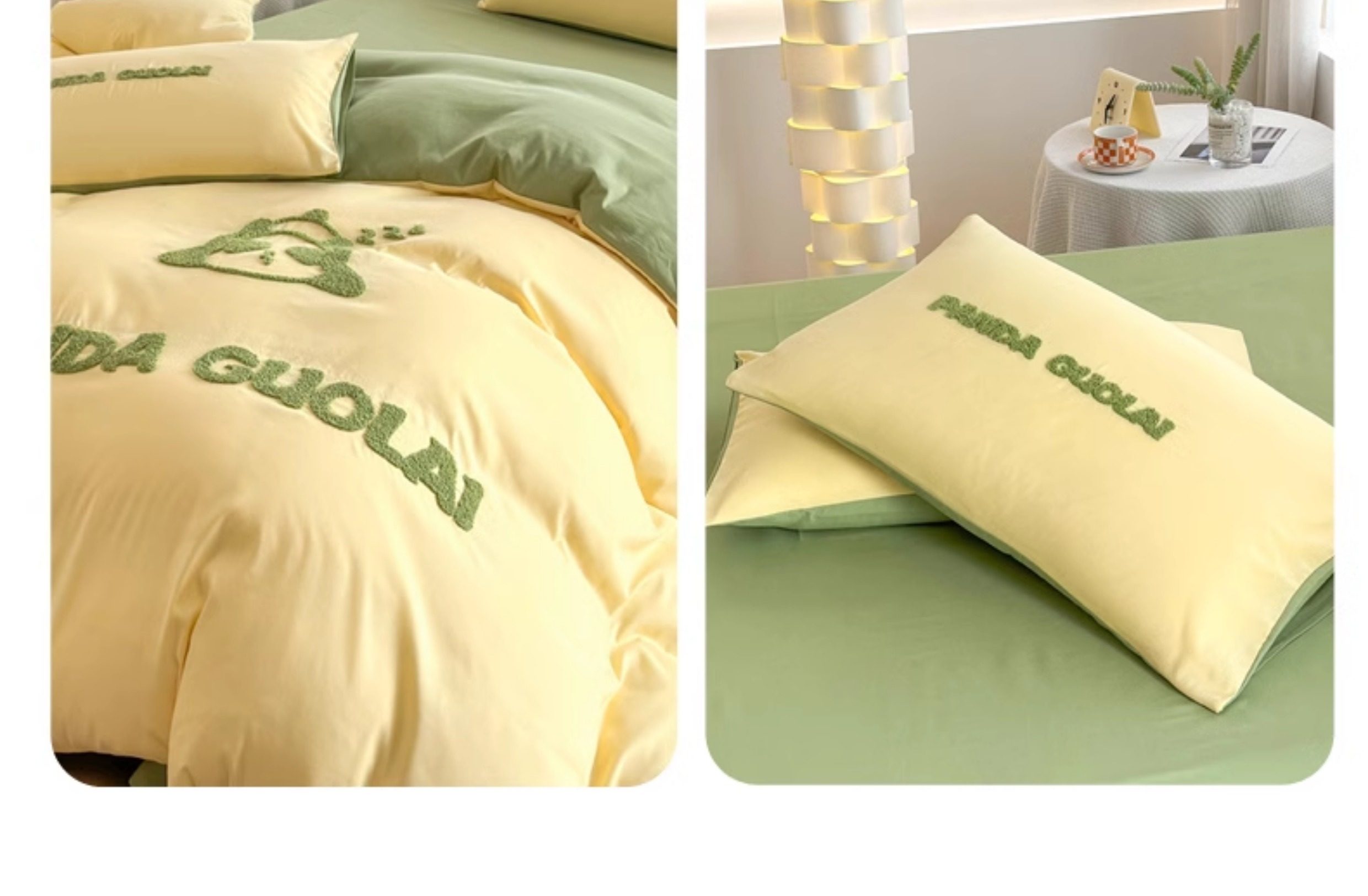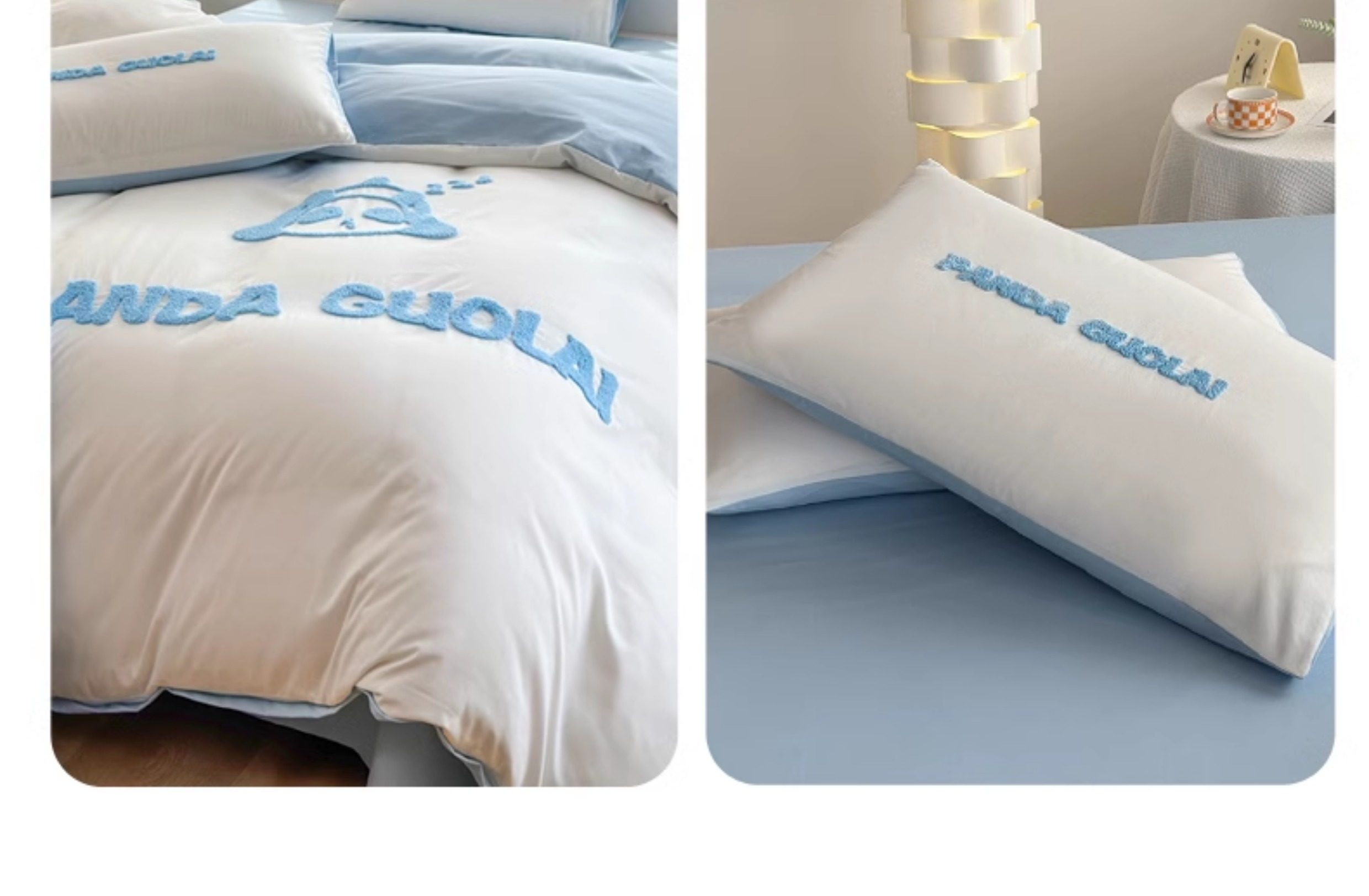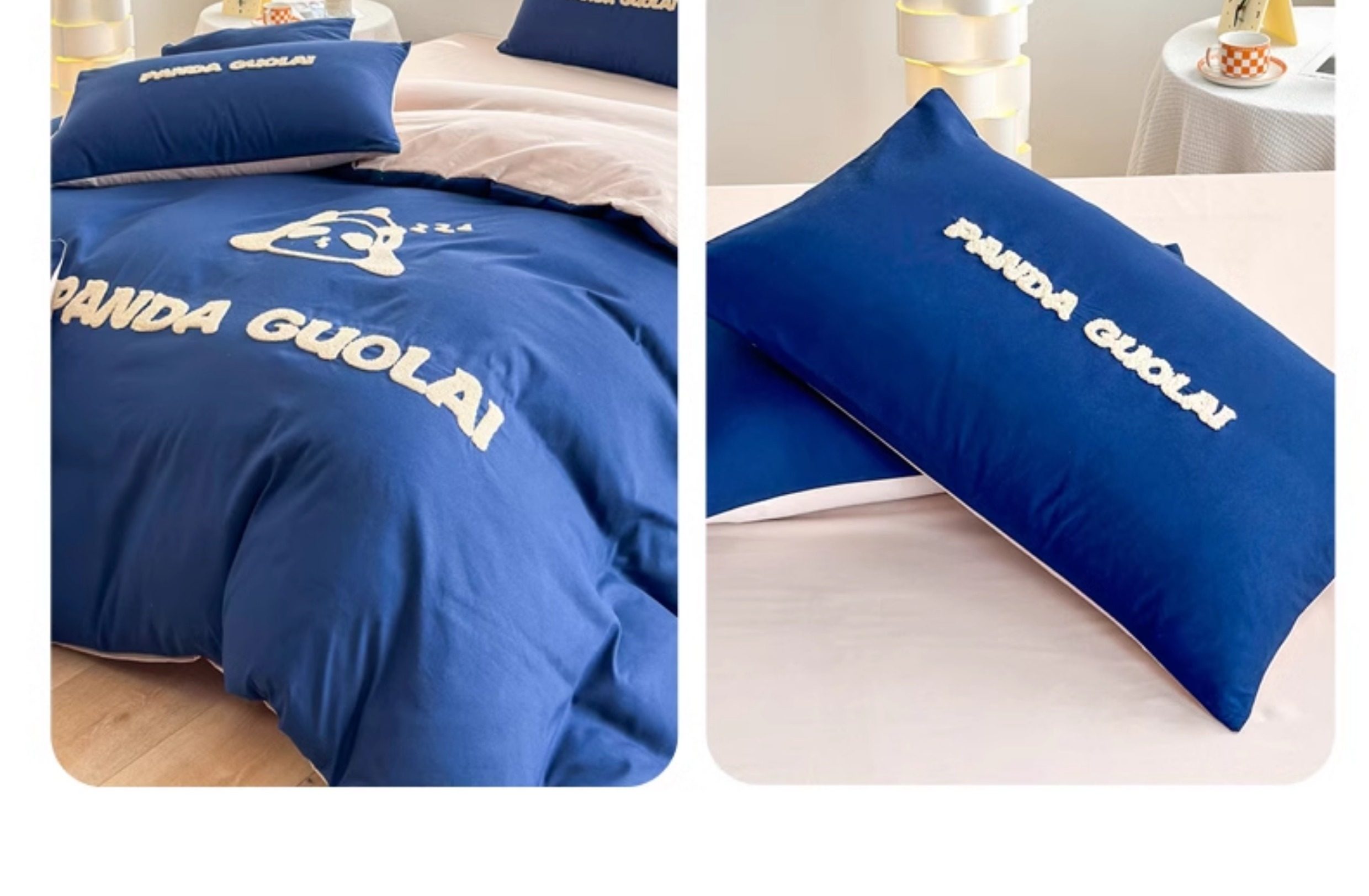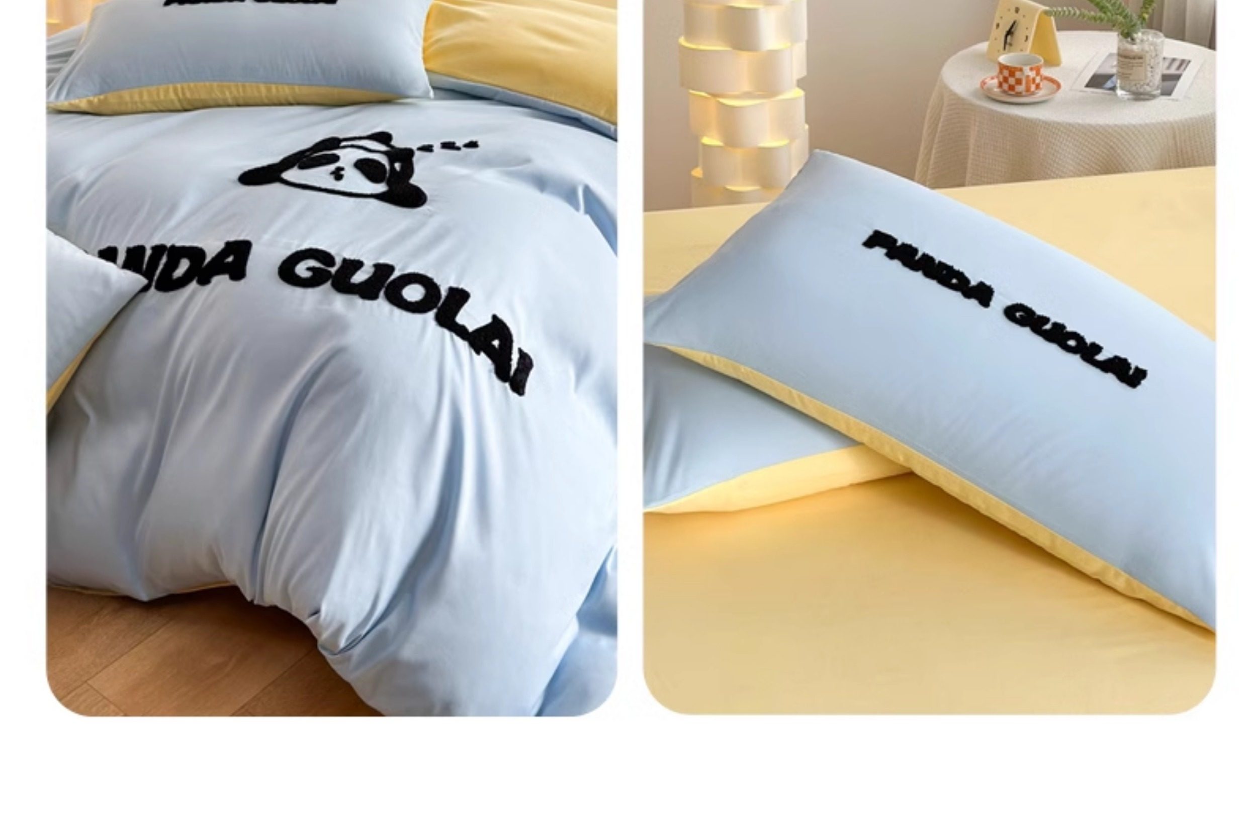 日系風可愛小黑怪黑煤球裸睡水洗棉四件套床包卡通床單宿捨三件套