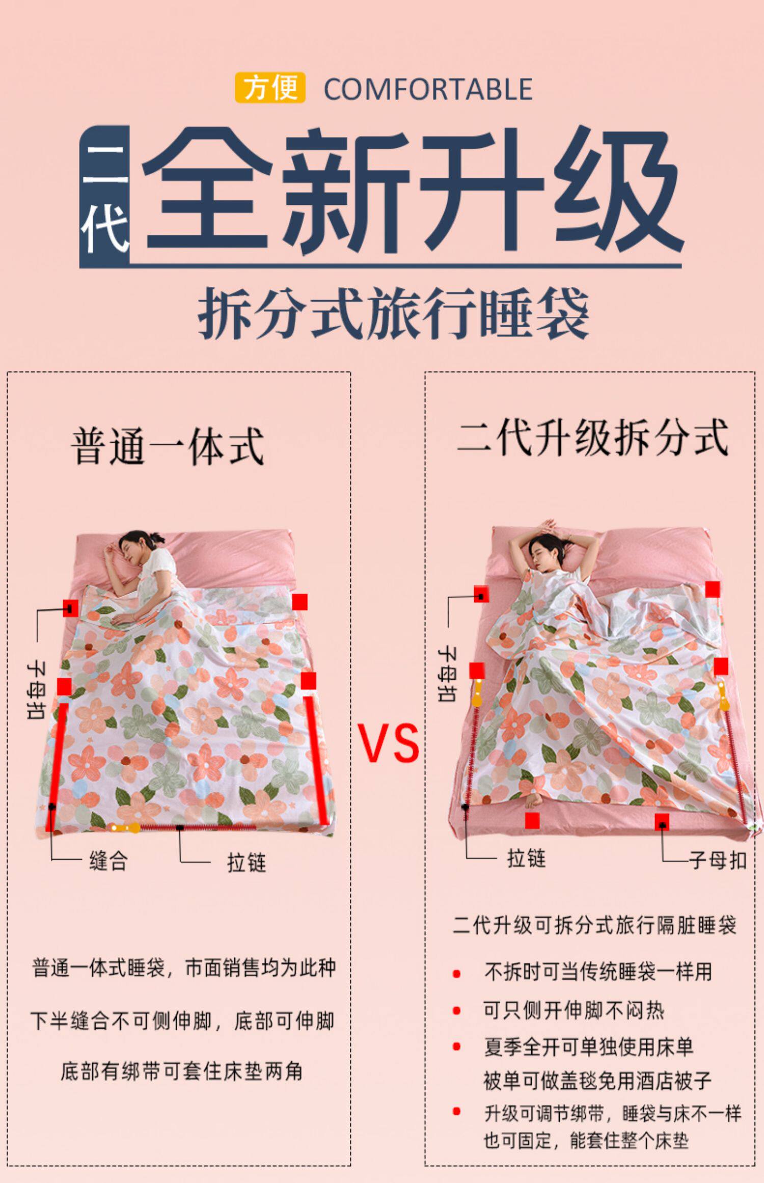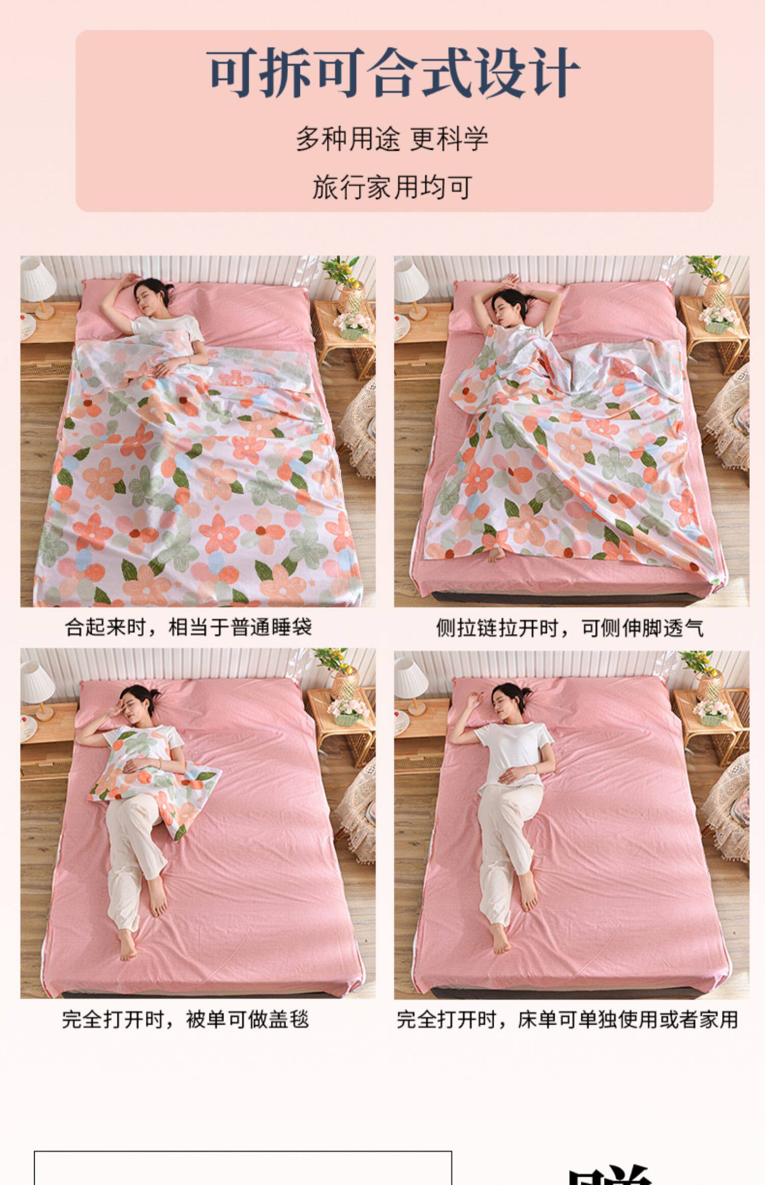 雪浪狐純棉升級拆分式旅行隔髒睡袋酒店防髒床單賓館出差被套全棉
