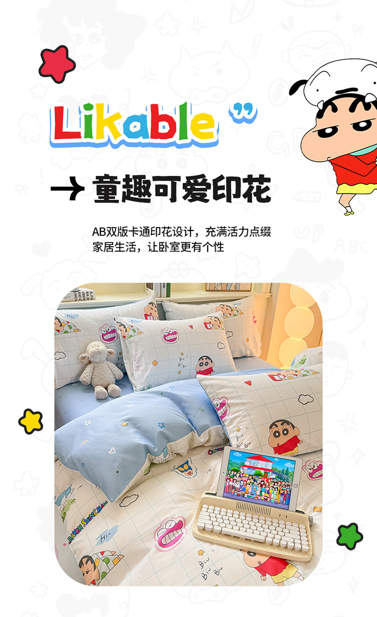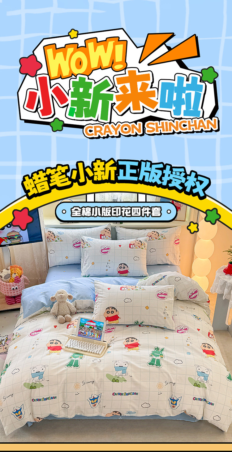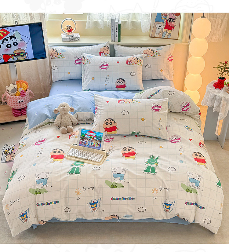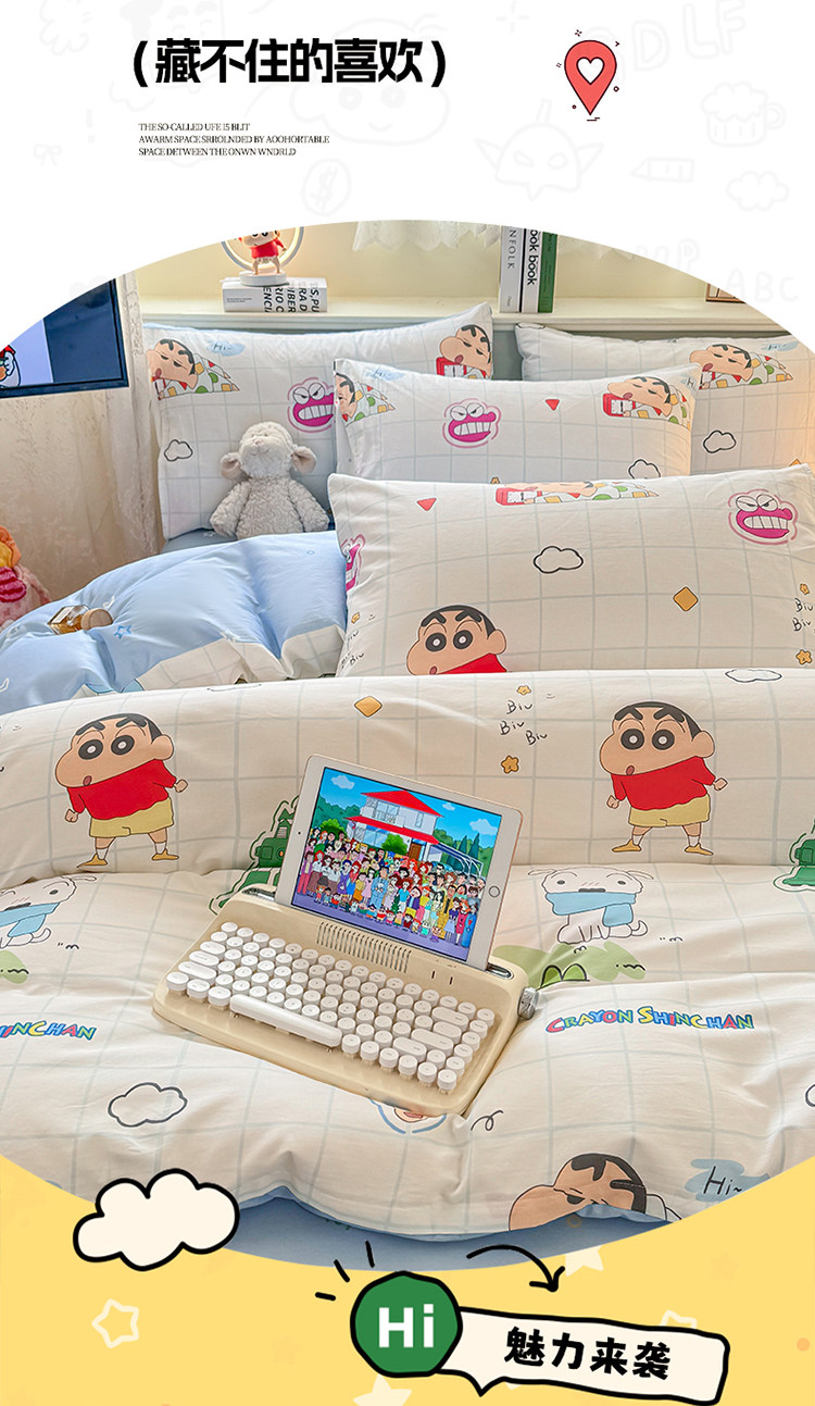 蠟筆小新純棉被套單件兒童卡通100全棉床單人被罩學生床上四件套3