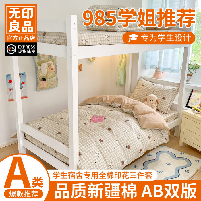 無印良品學生宿捨床上三件套床包大學寢室全棉純棉100床單床品
