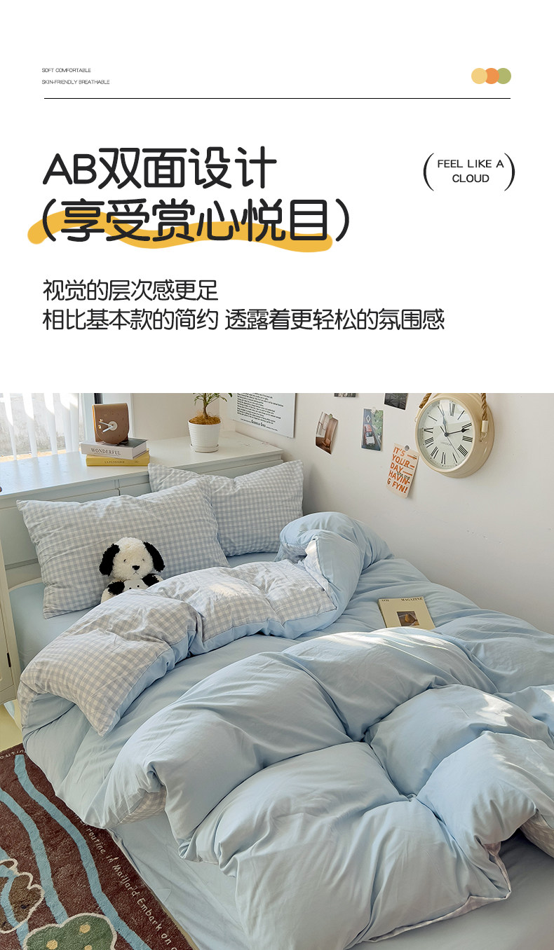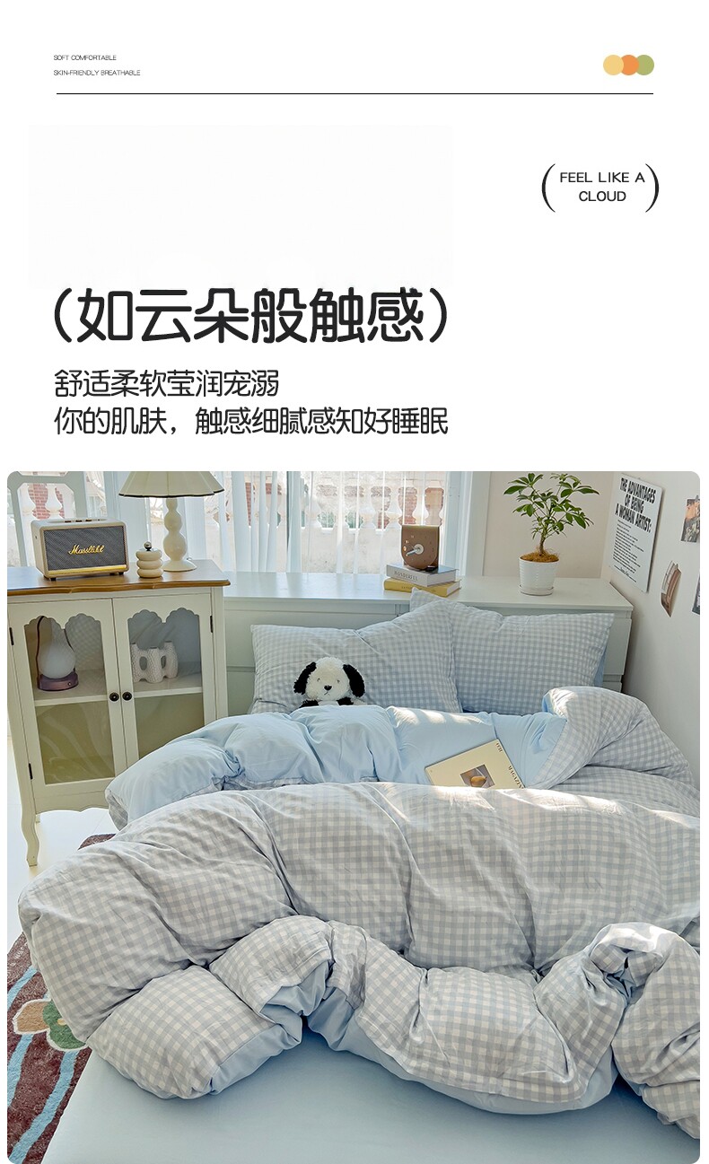 A類四件套新款加厚被套床單被罩床上用品清新碎花學生宿捨三件套4