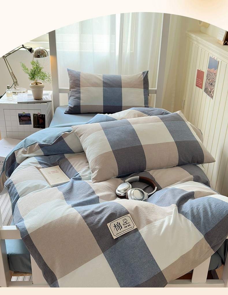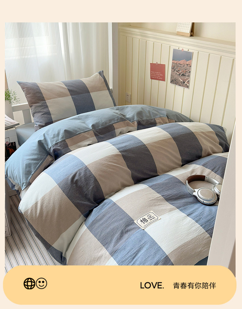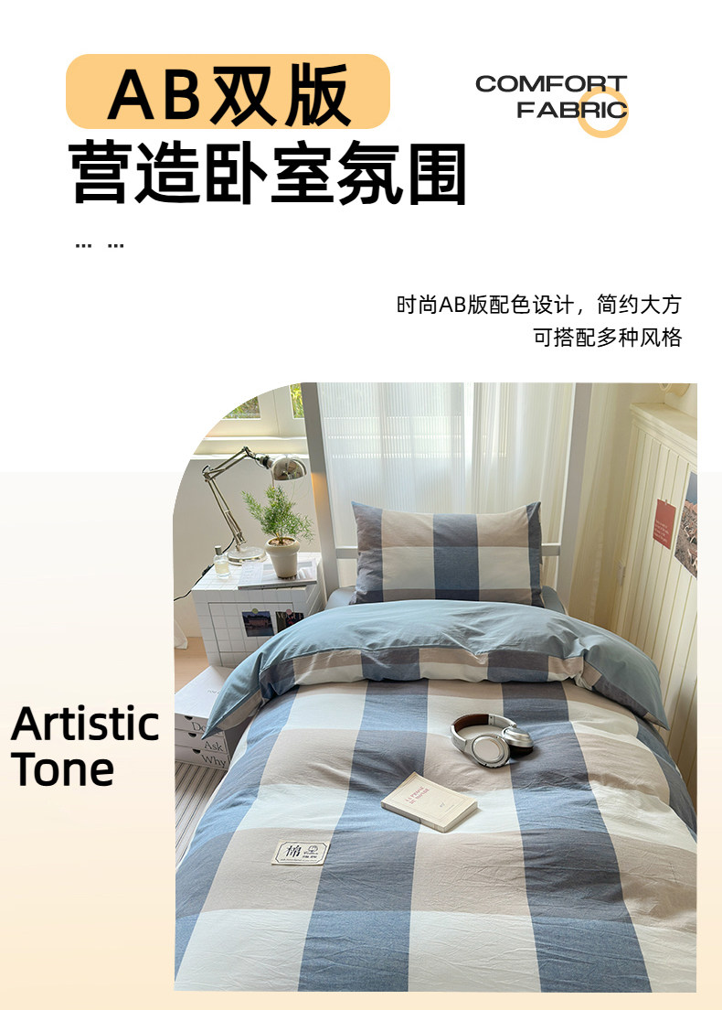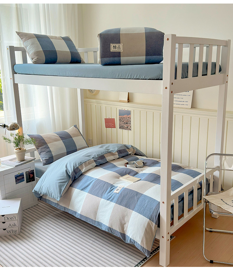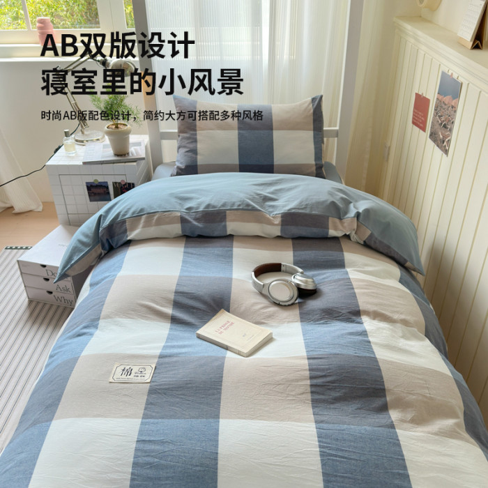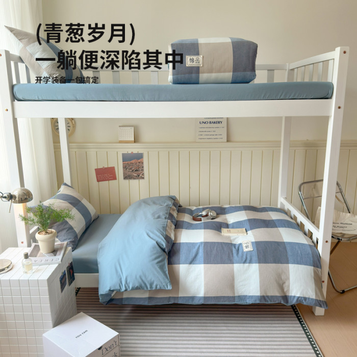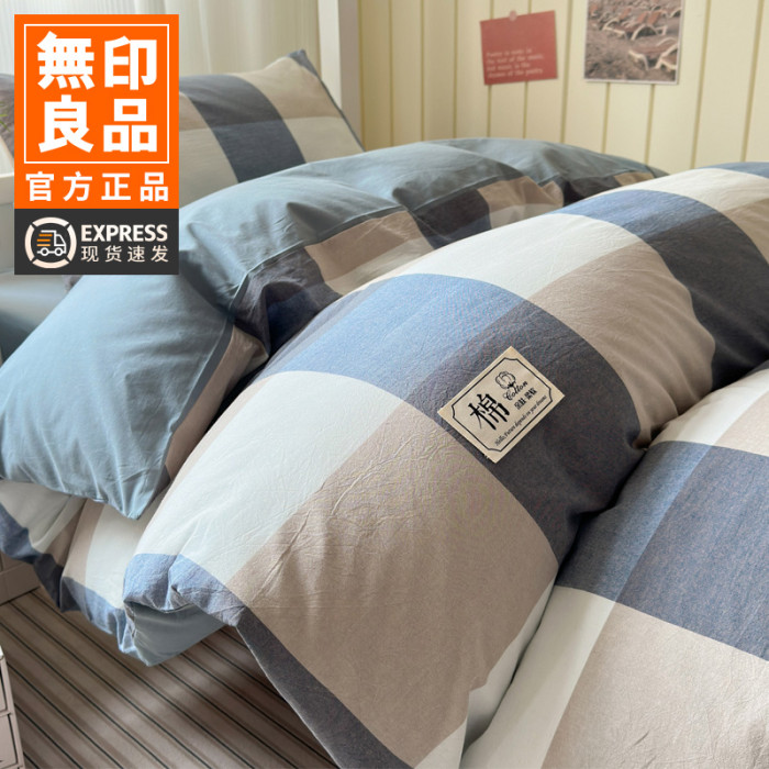 無印良品純棉學生宿捨床上三件套格子可機洗單人寢室床品五六件套