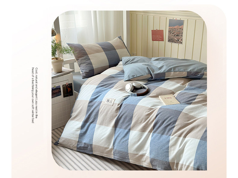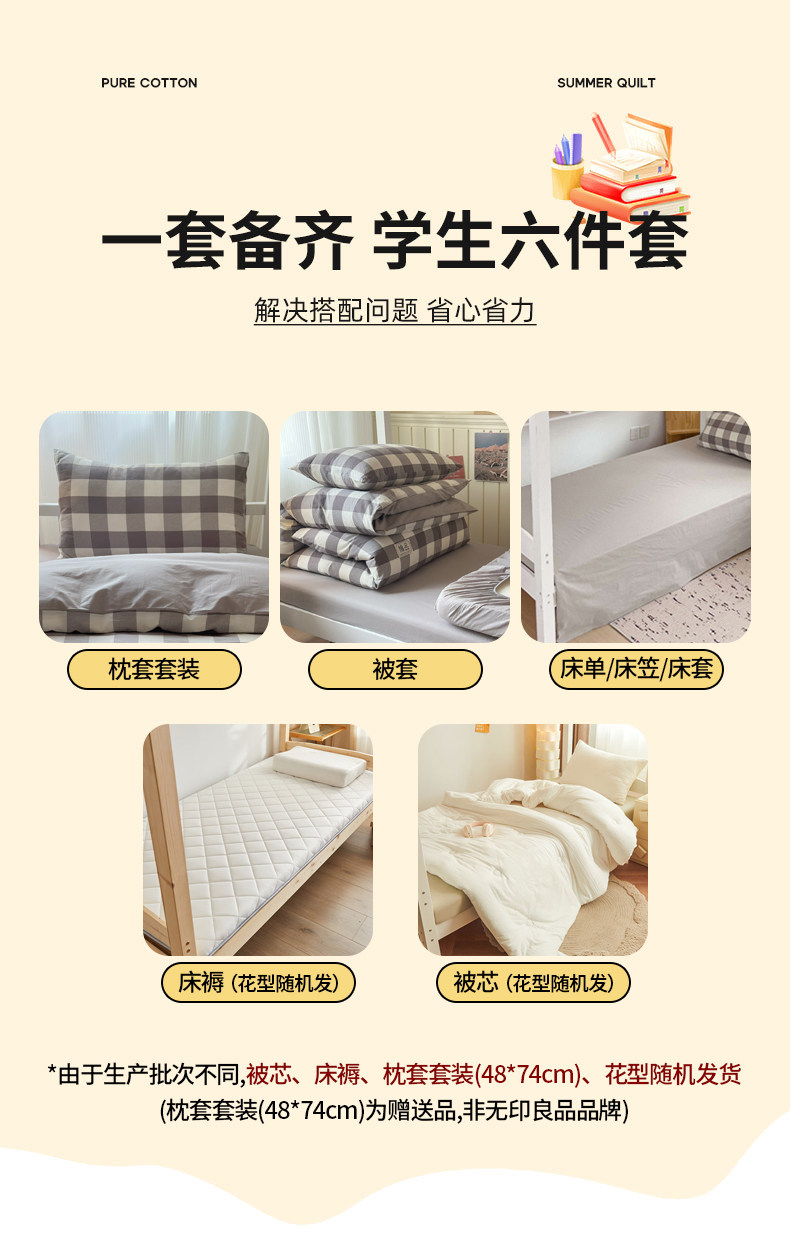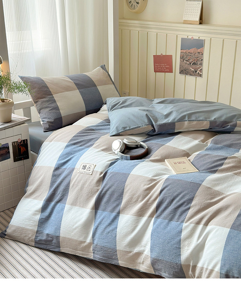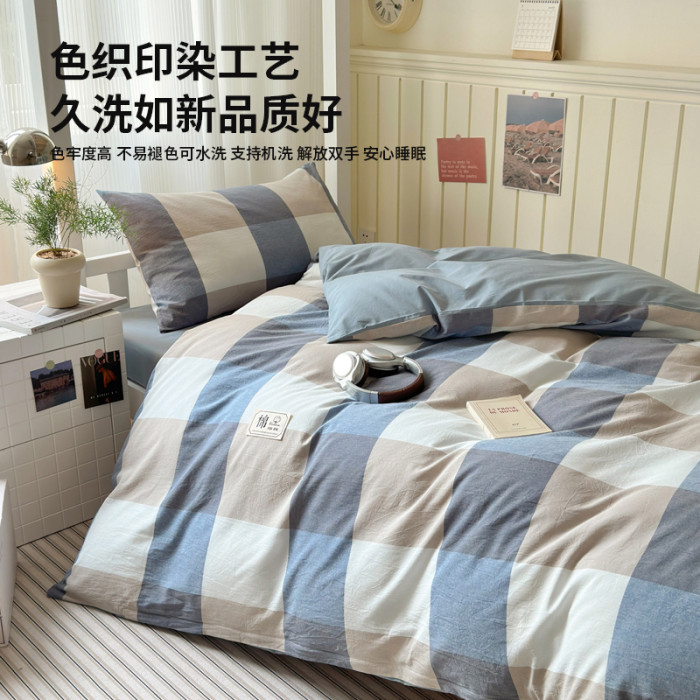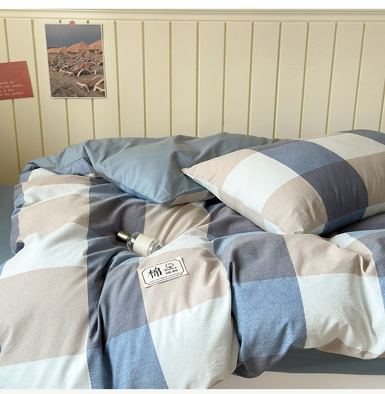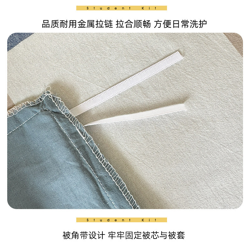 無印良品純棉學生宿捨床上三件套格子可機洗單人寢室床品五六件套