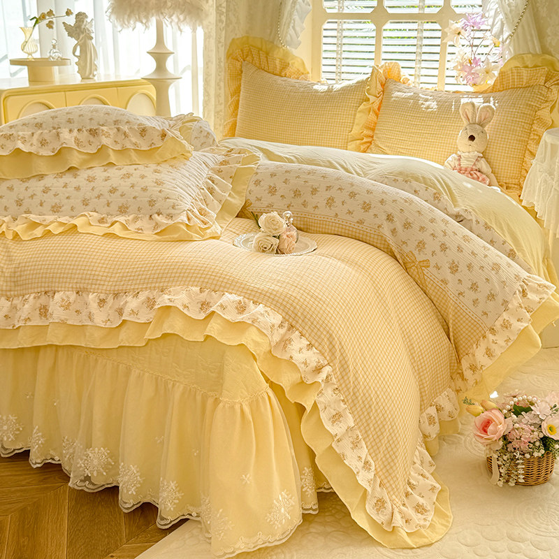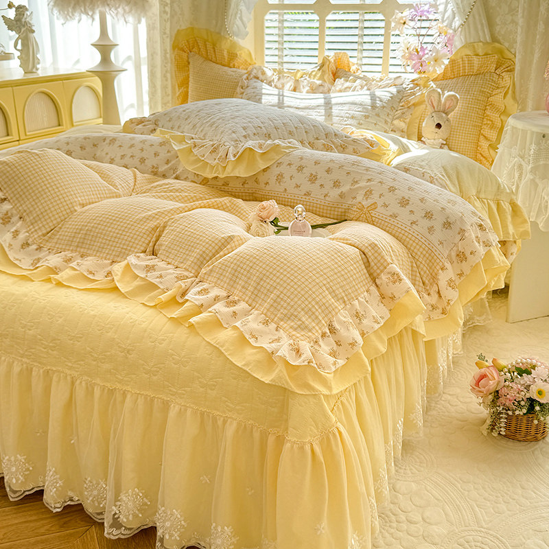 小紅書推薦公主風加厚夾棉床蓋四件套少女心純棉全棉花邊被套床單