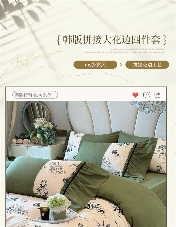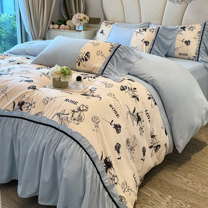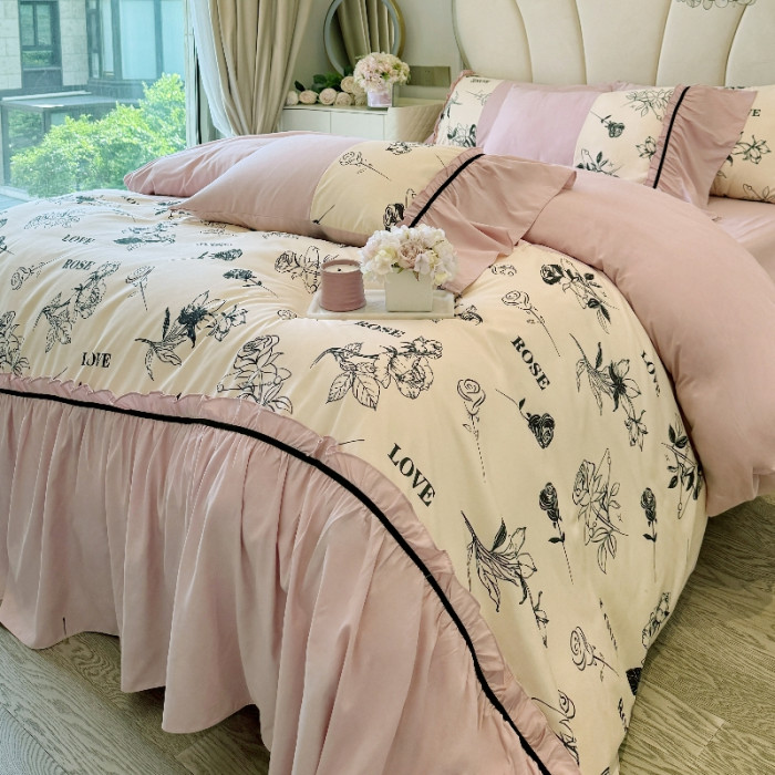 法式復古公主風純棉全棉四件套高級感少女心裸睡床單被罩床上用品