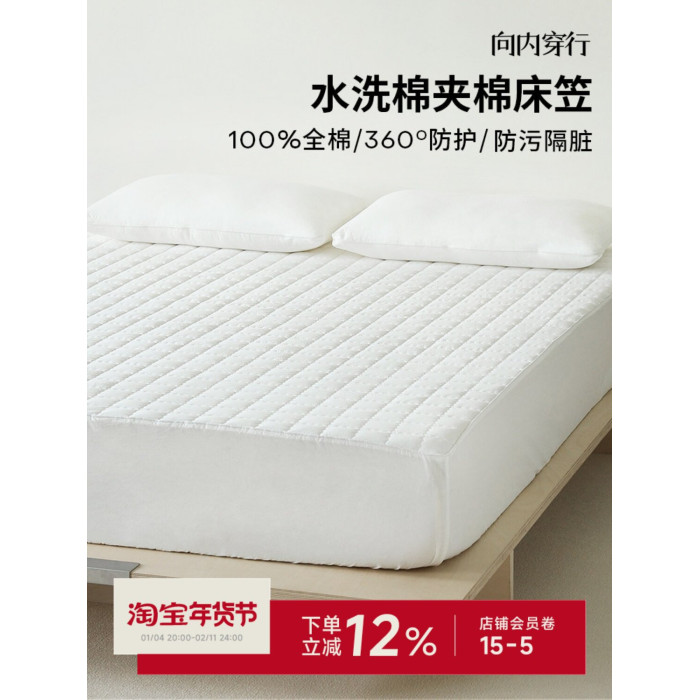 向內穿行新款純棉防滑床包加厚夾棉a類抗菌床墊保護罩單件