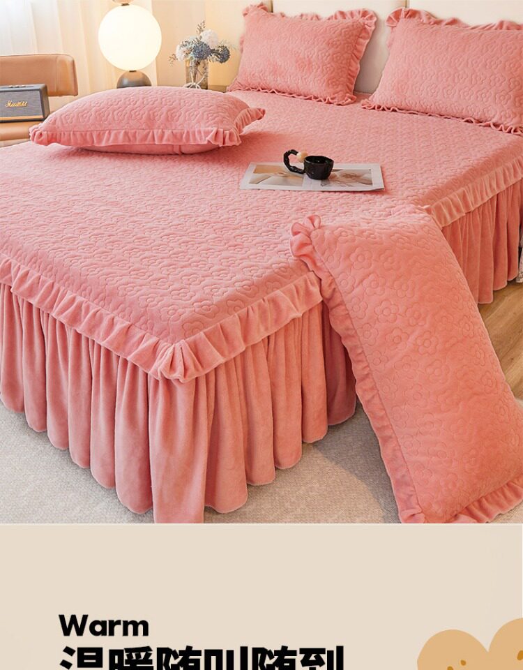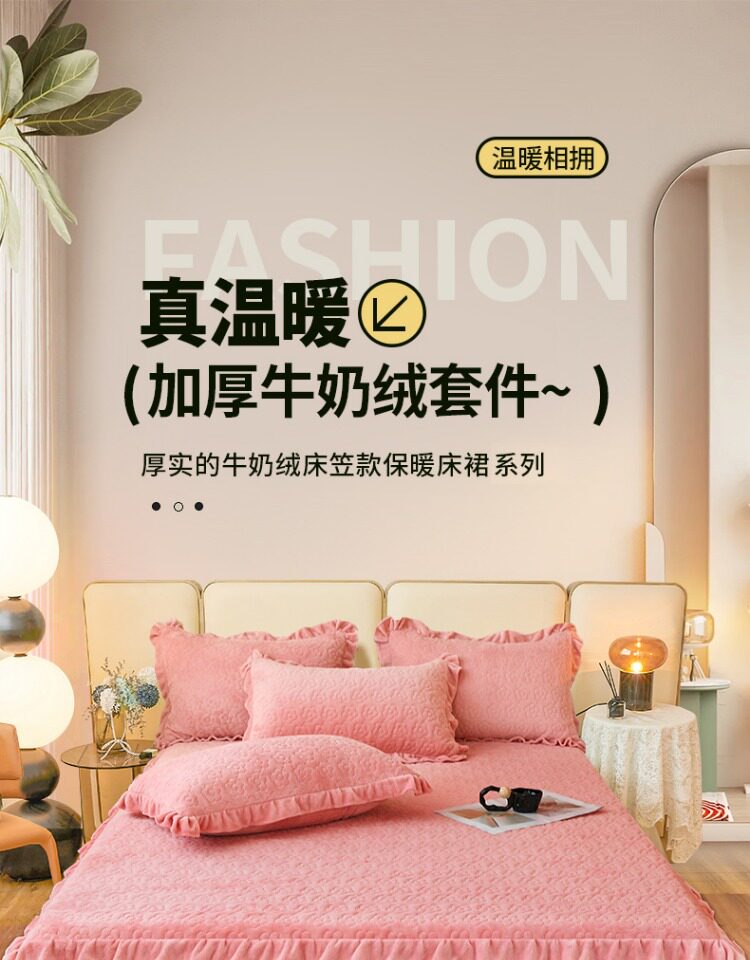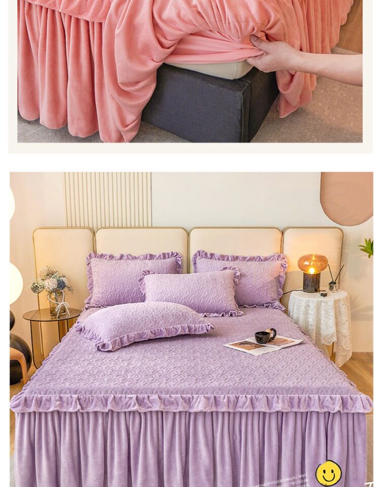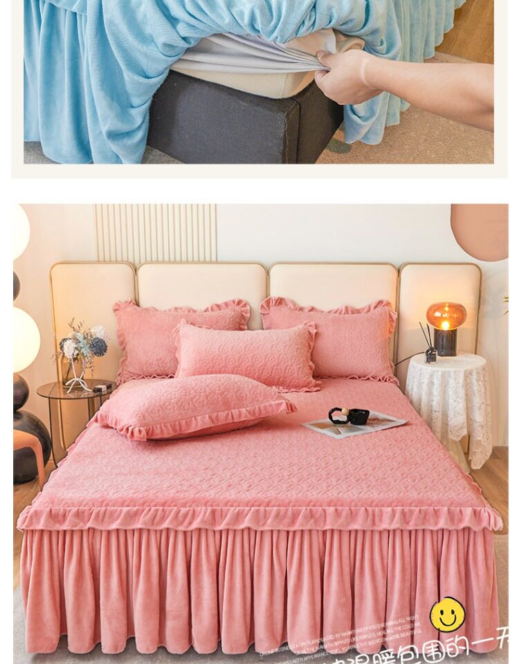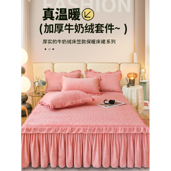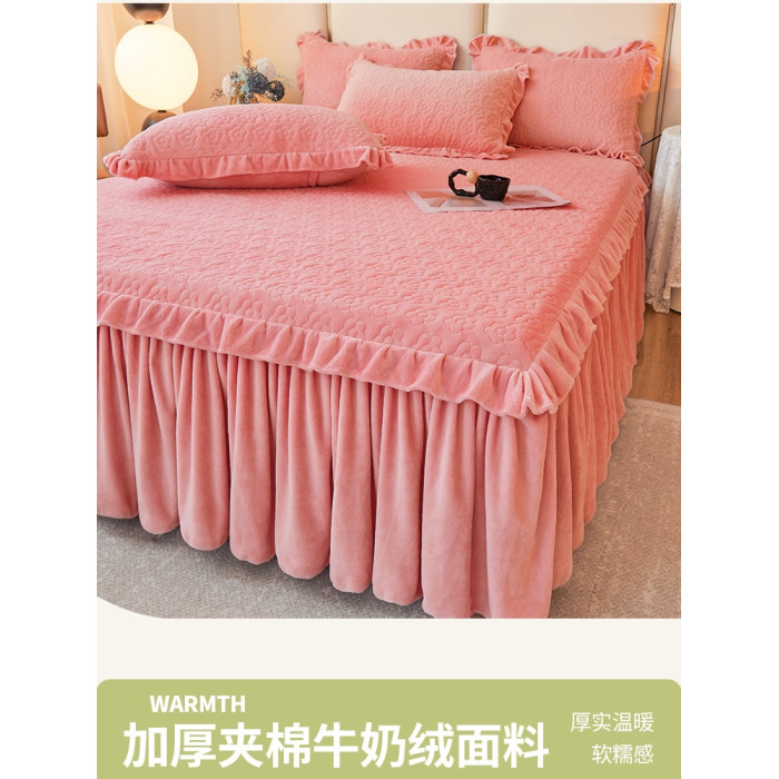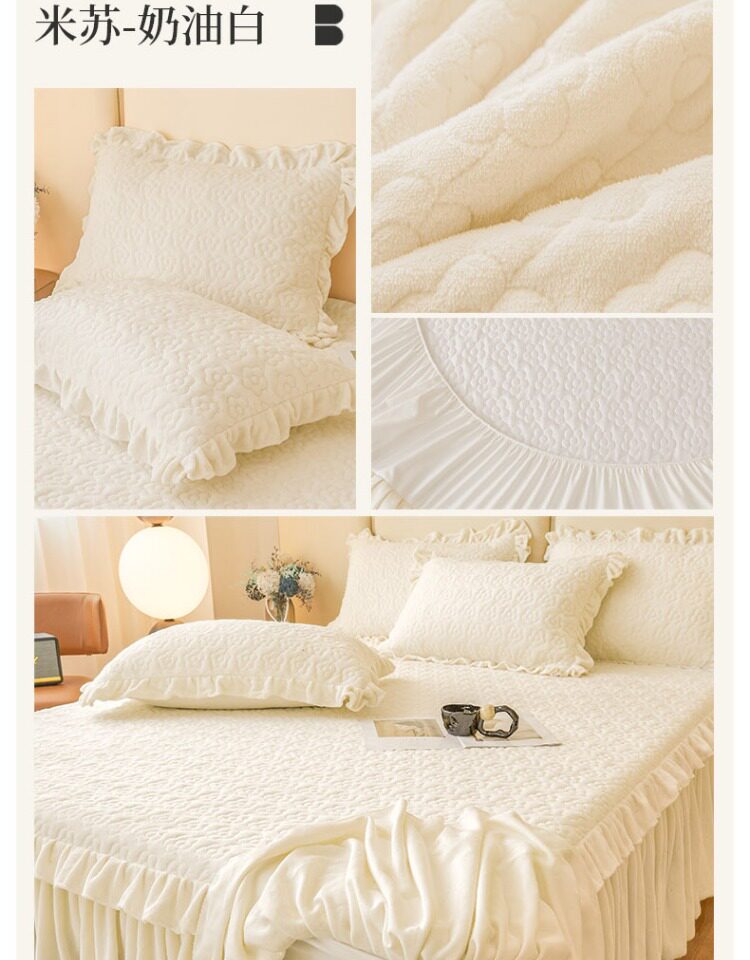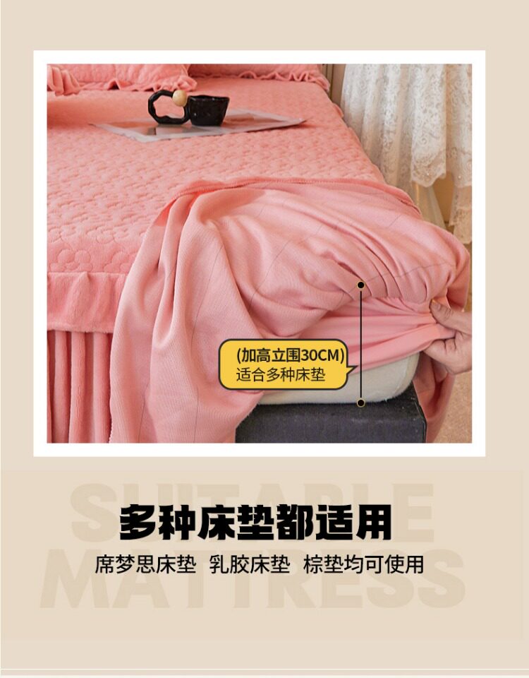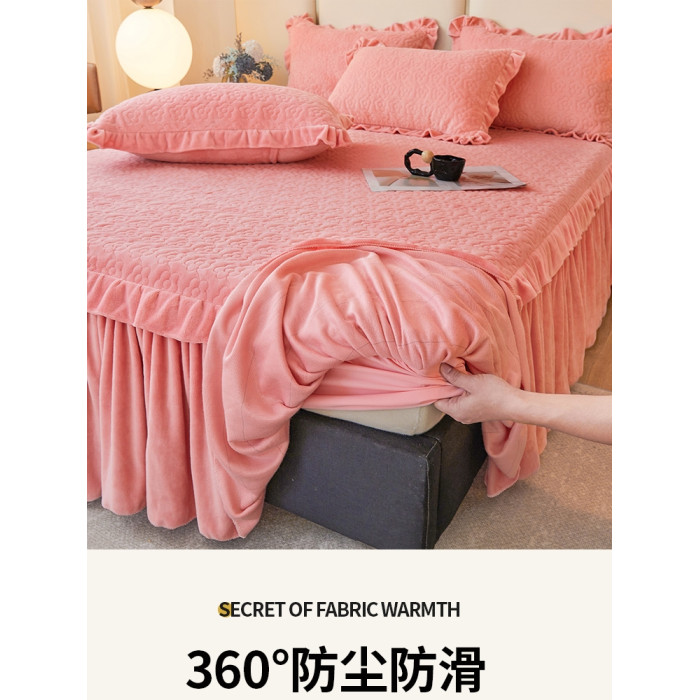 夾棉牛奶絨床包式床裙二合一床罩法蘭絨蓆夢思防滑床墊保護套床套