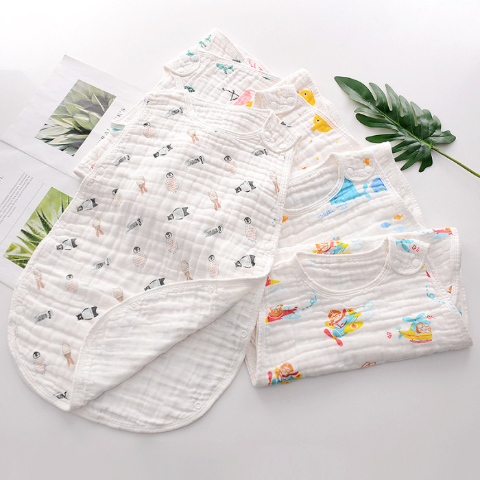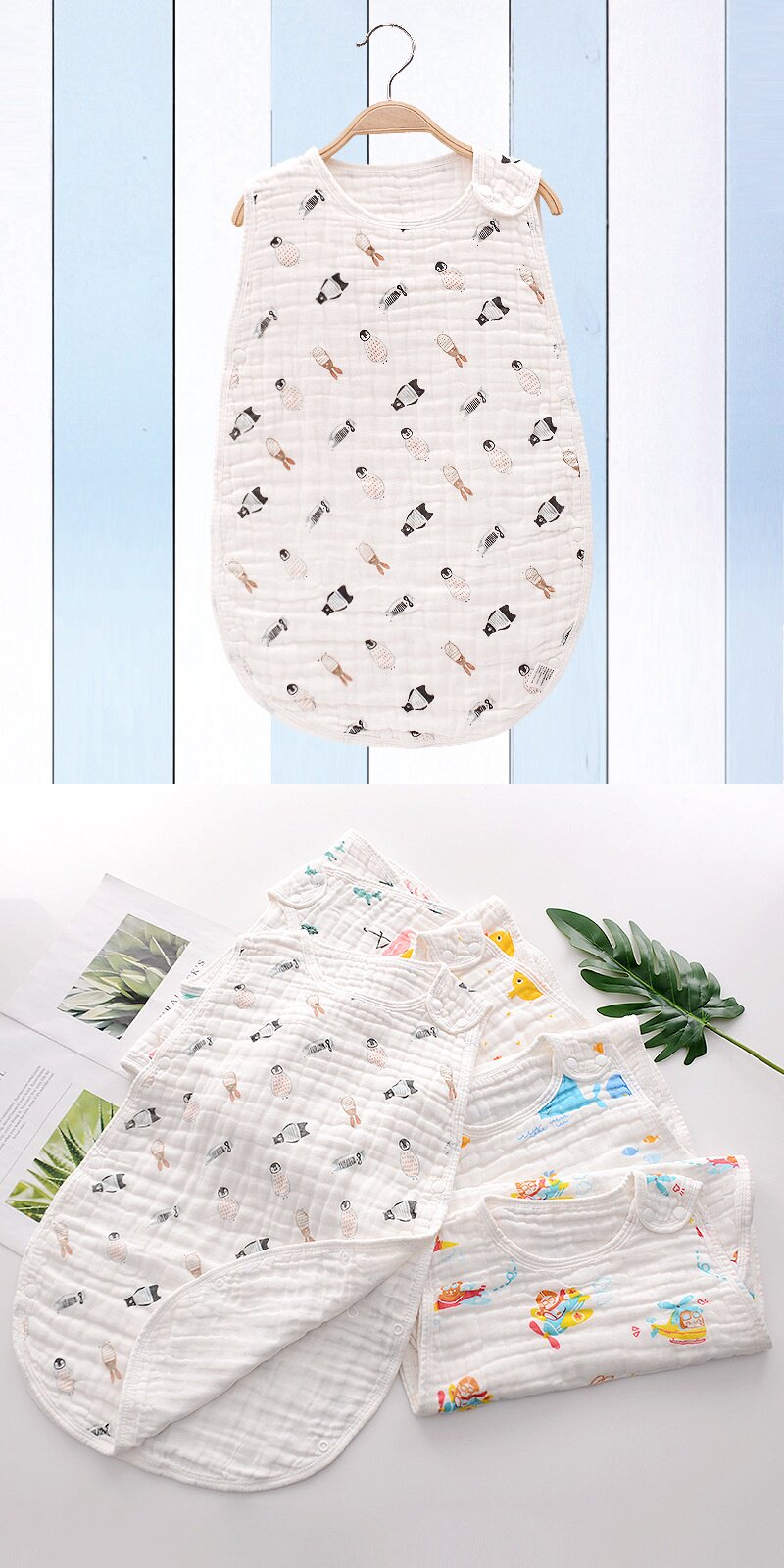 新生兒紗布睡袋春夏薄款兩片背心防踢被四六層紗布睡袋嬰幼兒