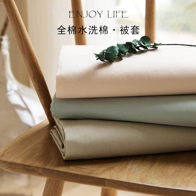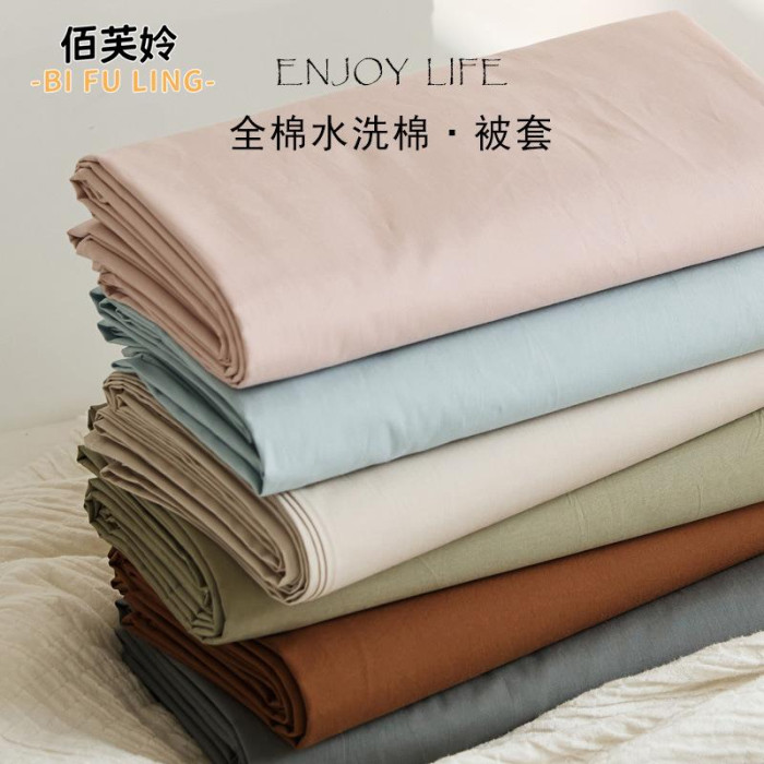 簡約水洗棉被套單件100純色被罩單雙人宿捨可裸睡被單
