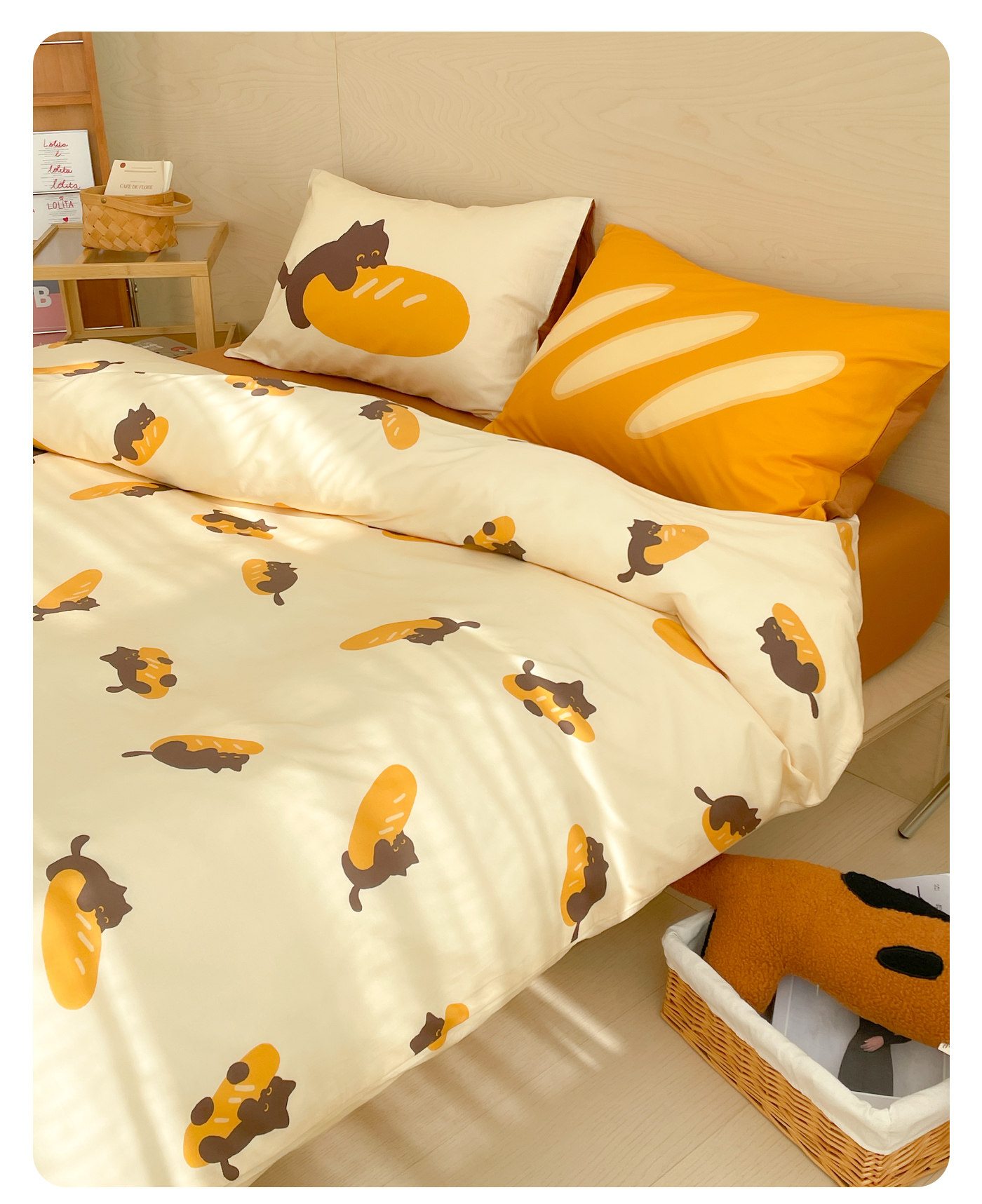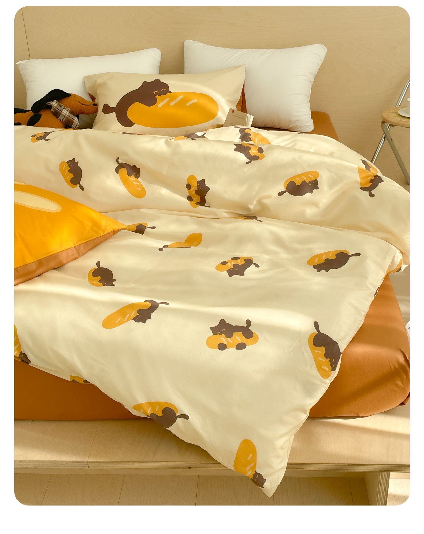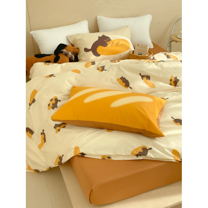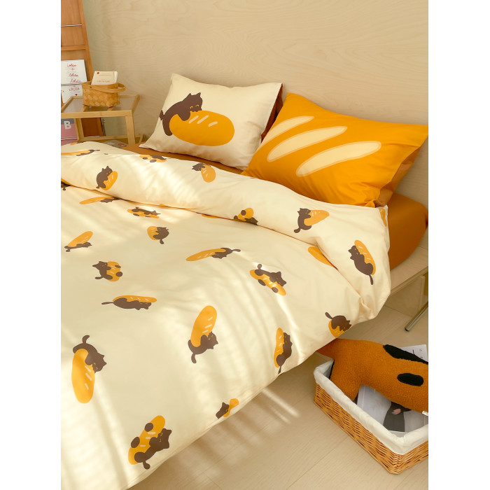 麵包小貓 獨家款全棉四件套100純棉床單被套床包款三件幸福感卡通