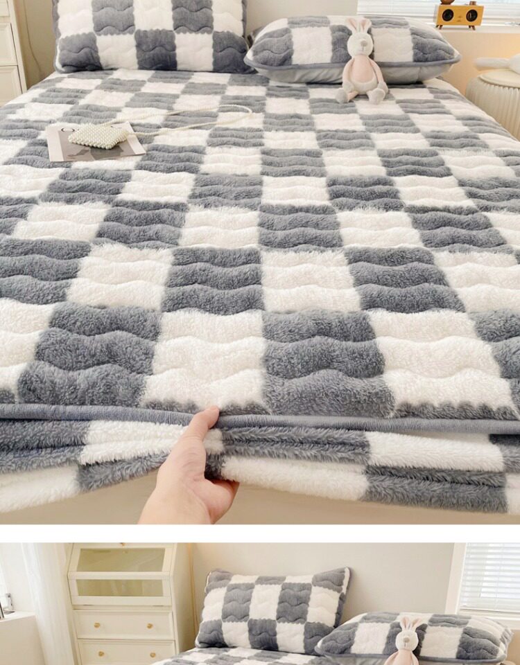 冬季牛奶絨床包罩加絨加厚夾棉冬天珊瑚法蘭絨床墊保護套毛絨床罩