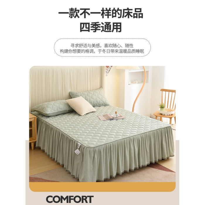 純棉床裙單件四季通用全棉純色床墊保護罩床罩2025新款夾棉床裙罩