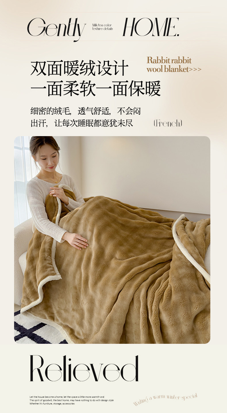 冬季加厚兔毛絨毛毯辦公室午睡沙發毯蓋毯牛奶珊瑚絨毯子被子冬被
