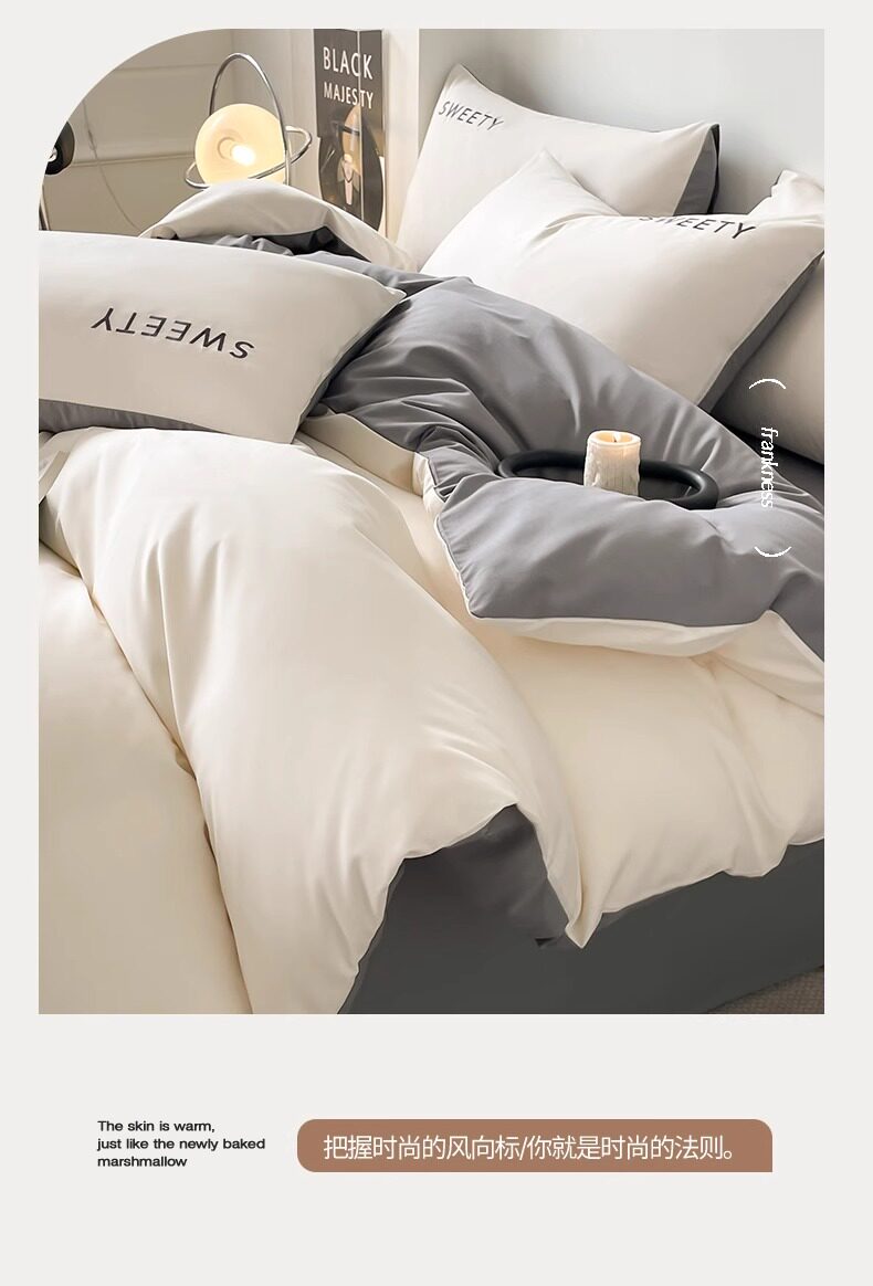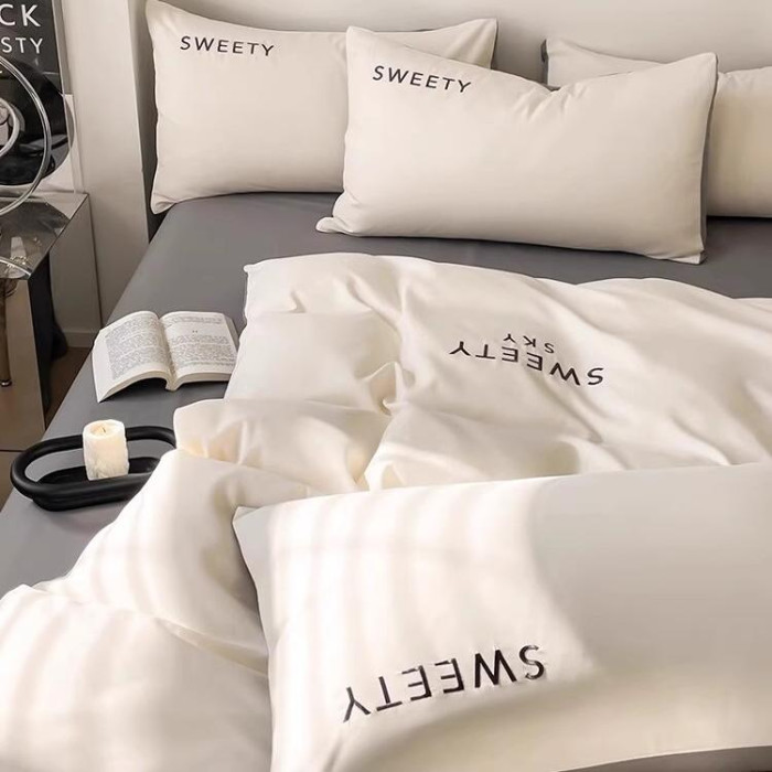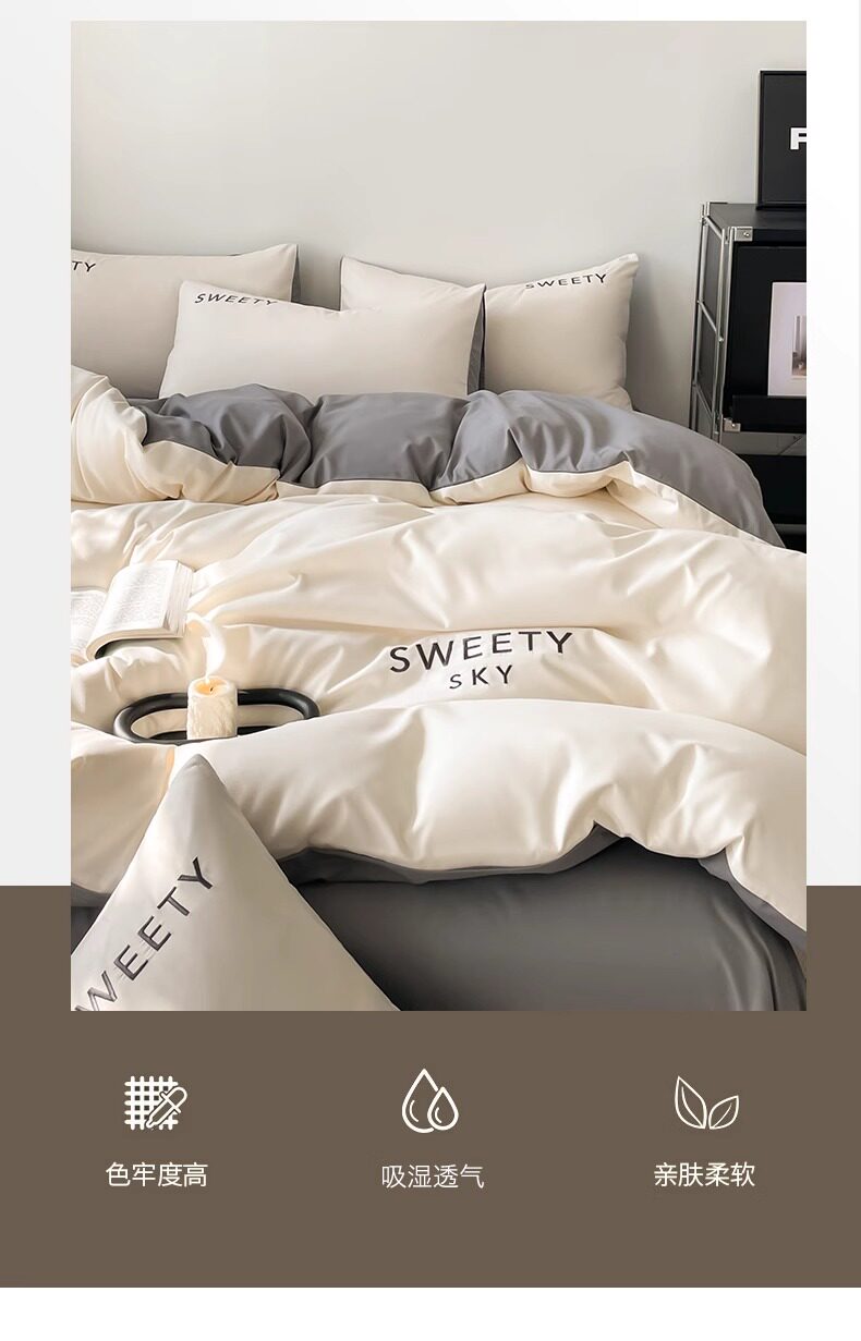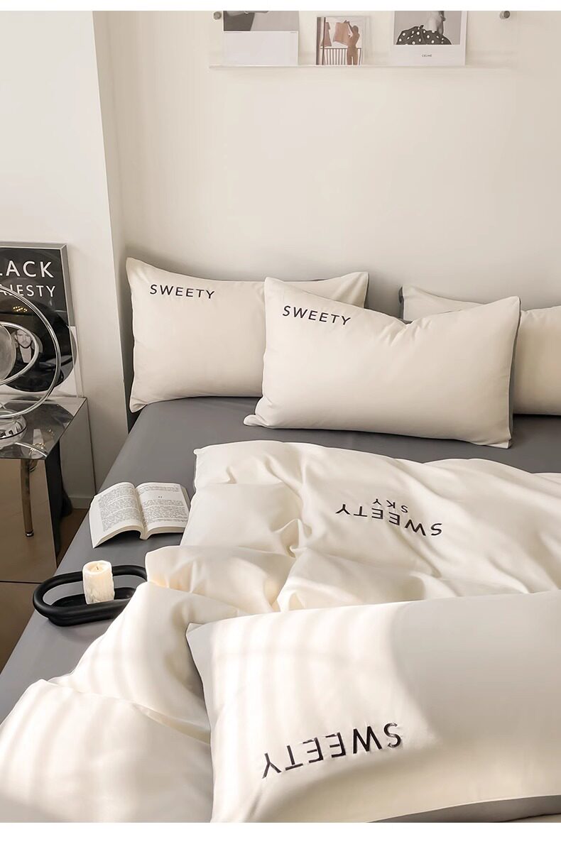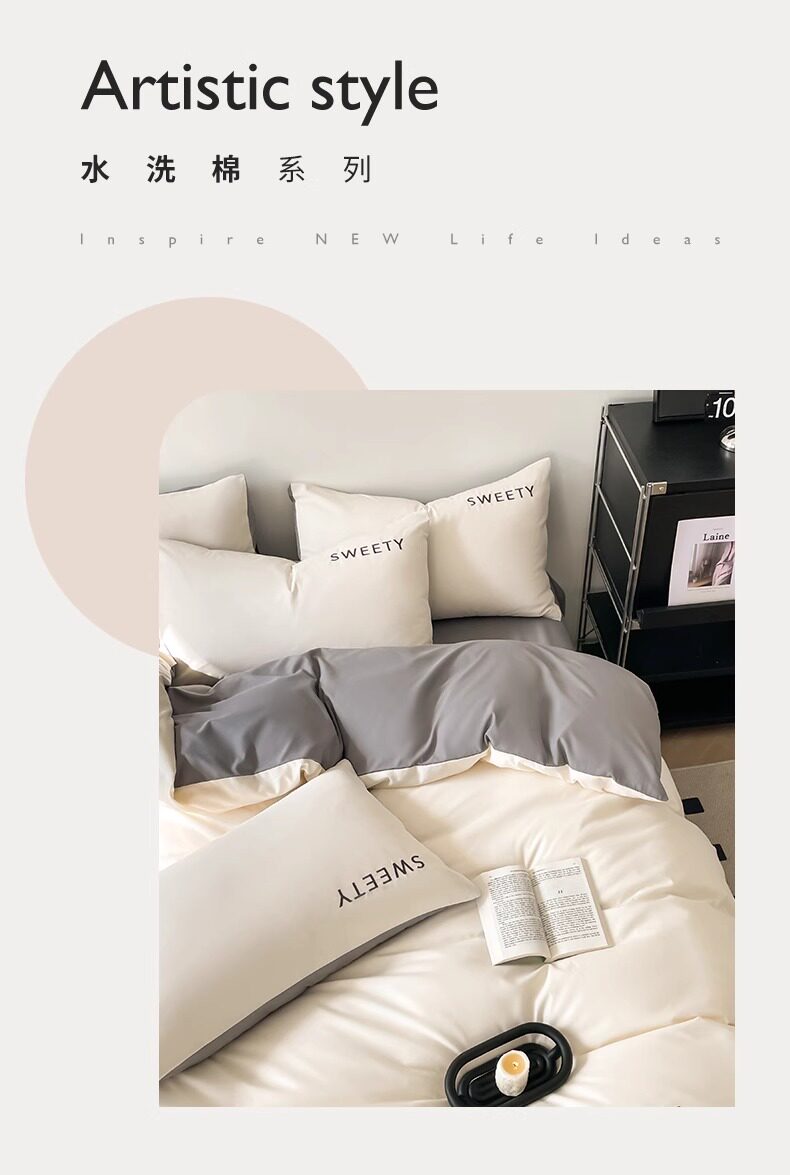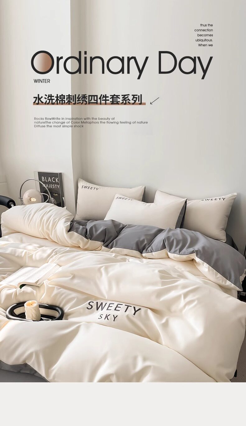 水晶家紡官方輕奢柔軟水洗棉四件套高檔刺綉被罩輕奢床包被套宿捨