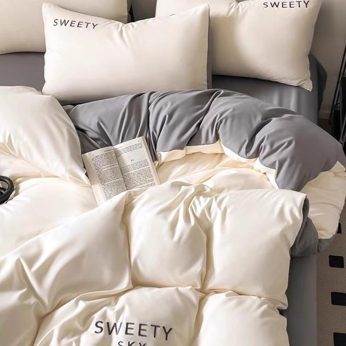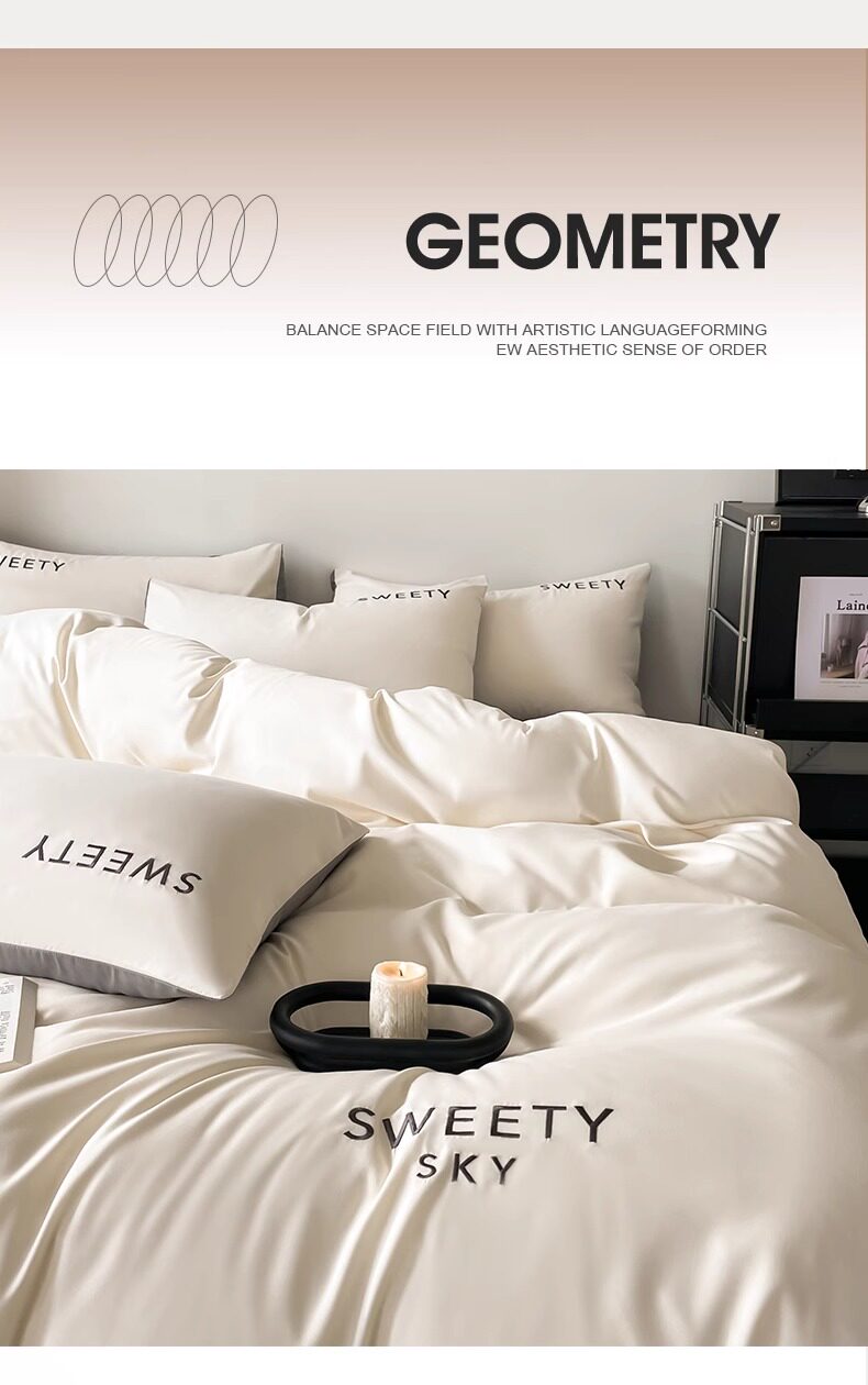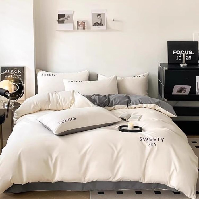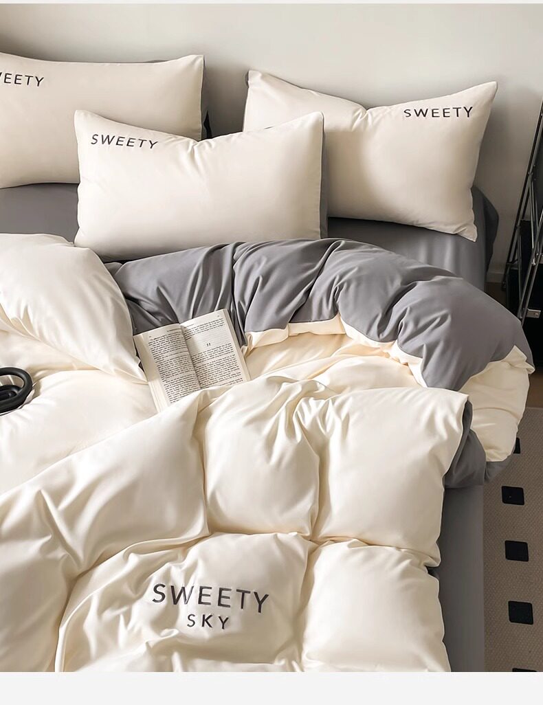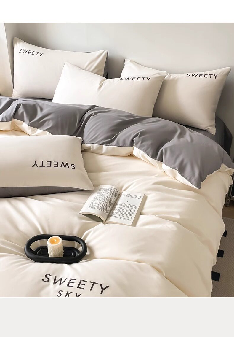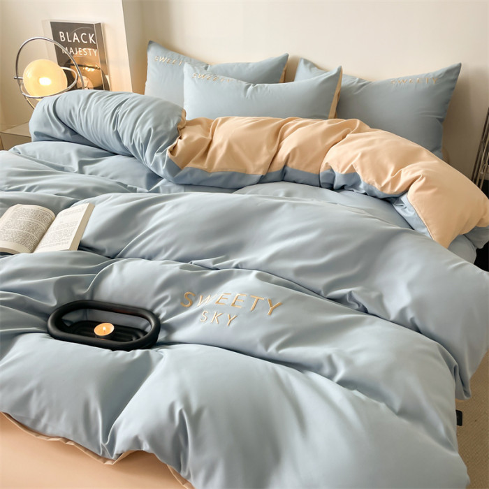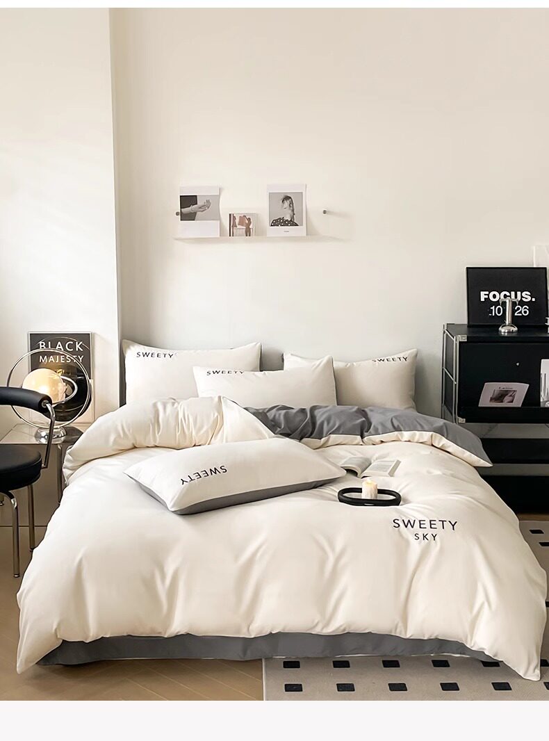 水晶家紡官方輕奢柔軟水洗棉四件套高檔刺綉被罩輕奢床包被套宿捨