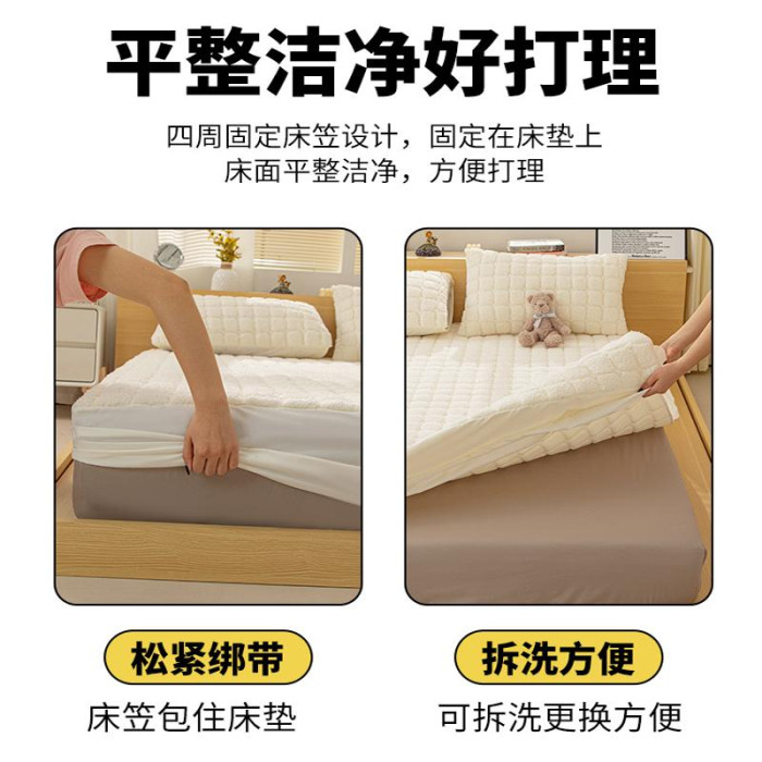 冬季加厚羊羔絨床包三件套夾棉加絨保暖床墊保護套全包床罩單人yt
