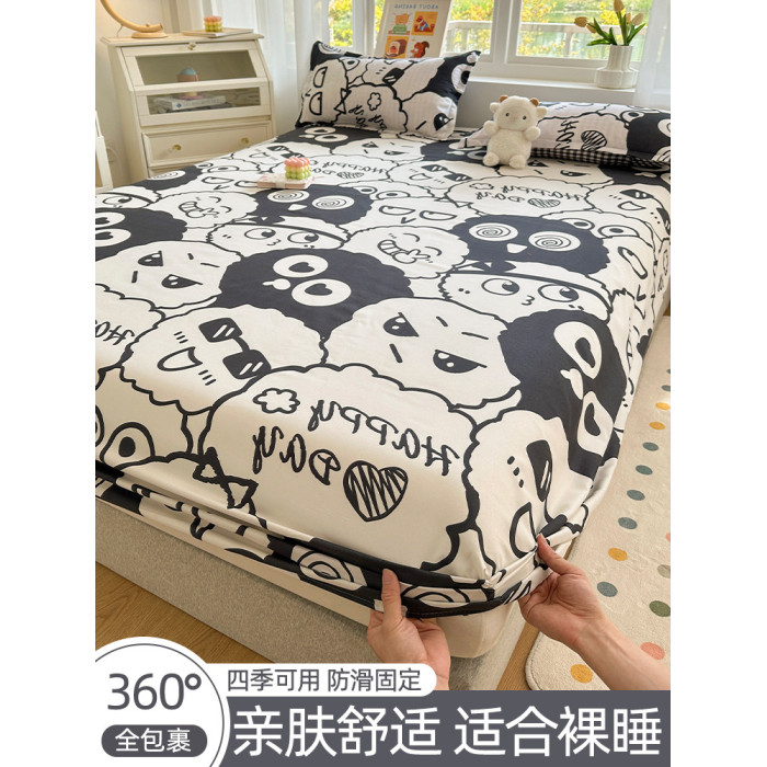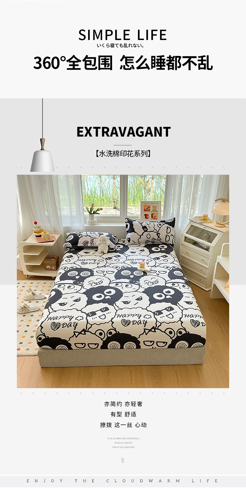 水洗棉床包床墊防塵罩床套宿捨單人卡通印花蓆夢思床罩全包床單套