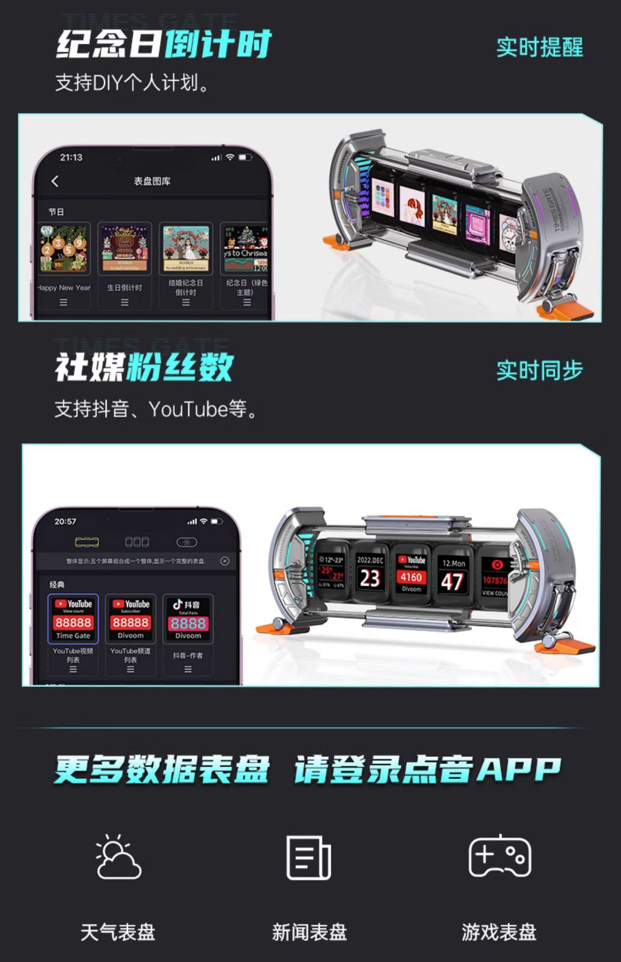 divoom times gate點音時光之門像素任意屏煇光琯時鐘桌塔