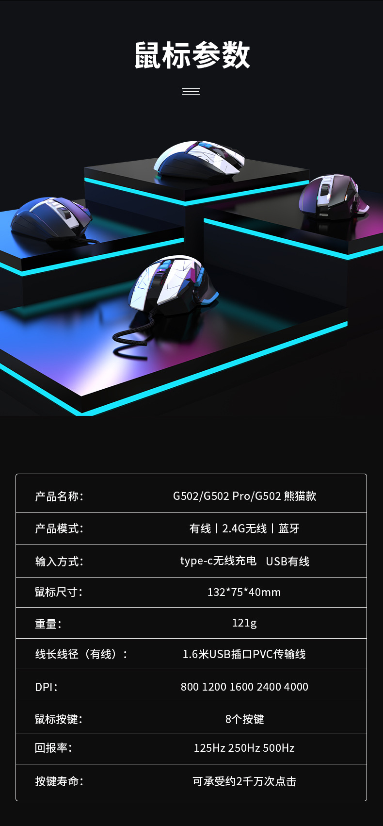 | 顔色 | G502無線滑鼠功夫熊貓版本黑色 |