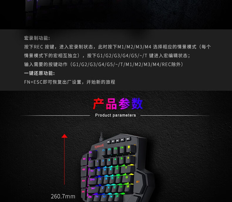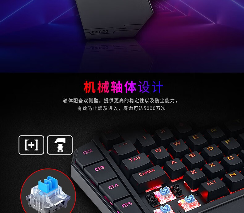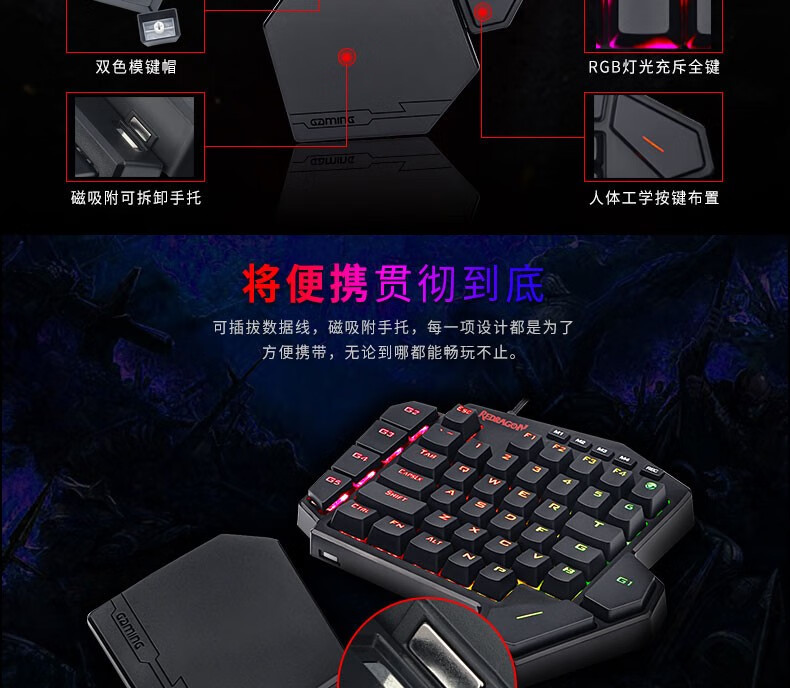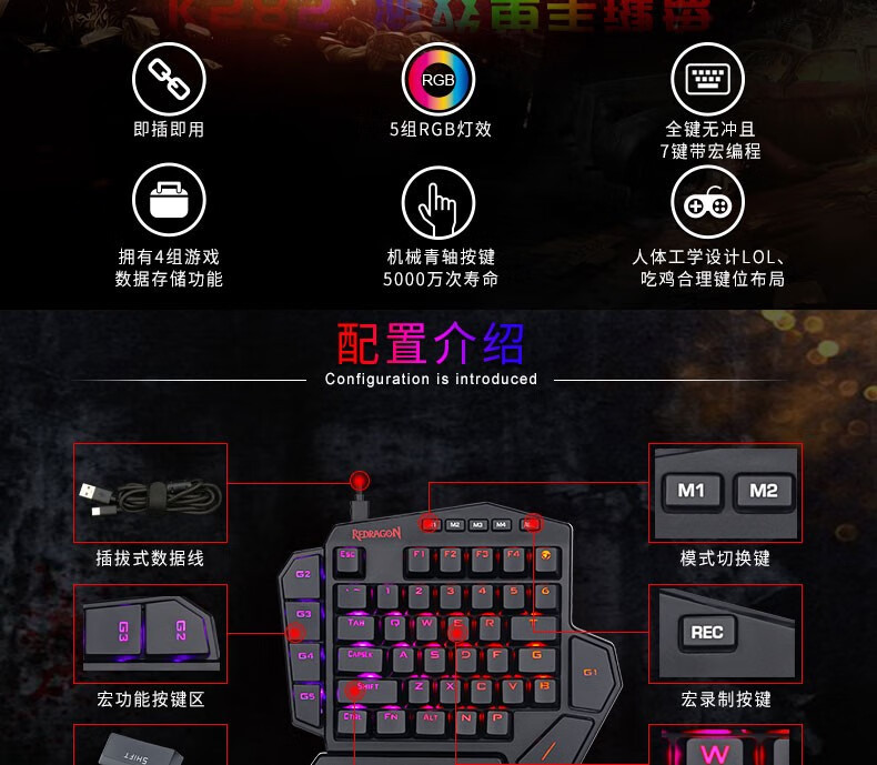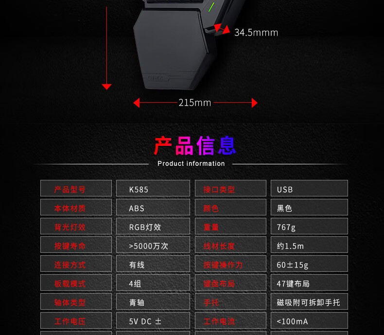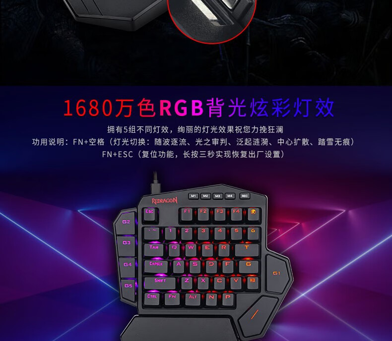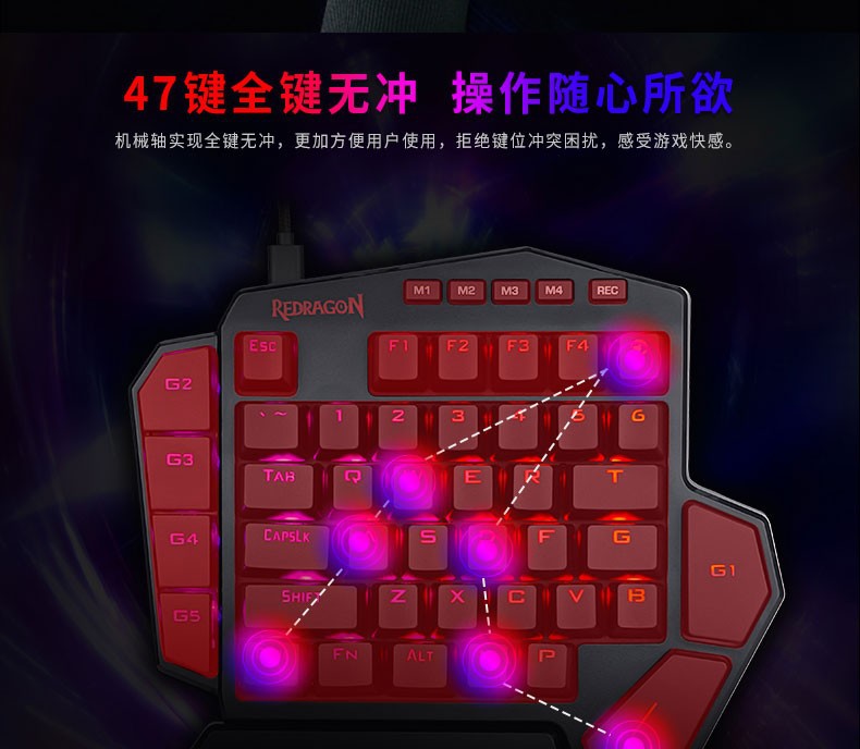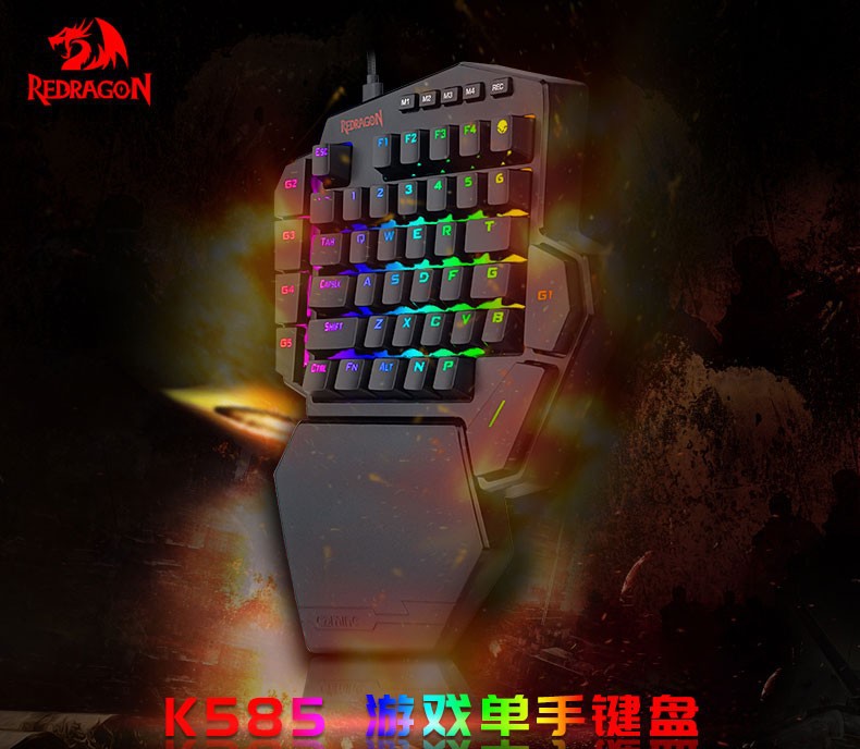 紅龍K585單手機械鍵盤有線無線雙模可插拔電競遊戯專用板載宏編程