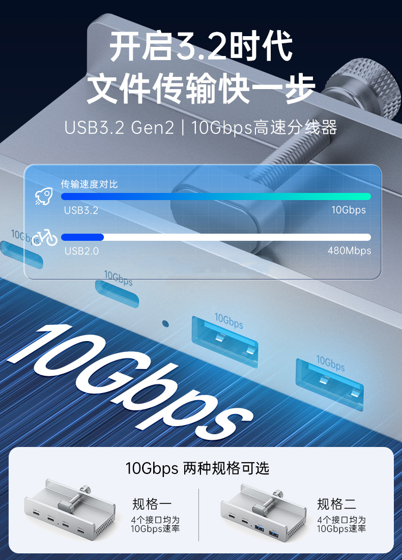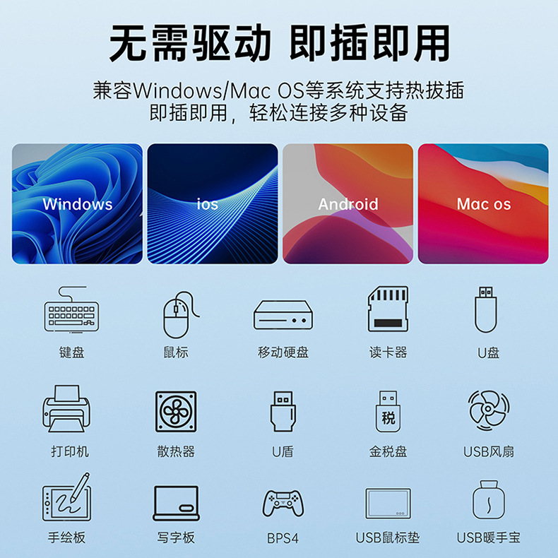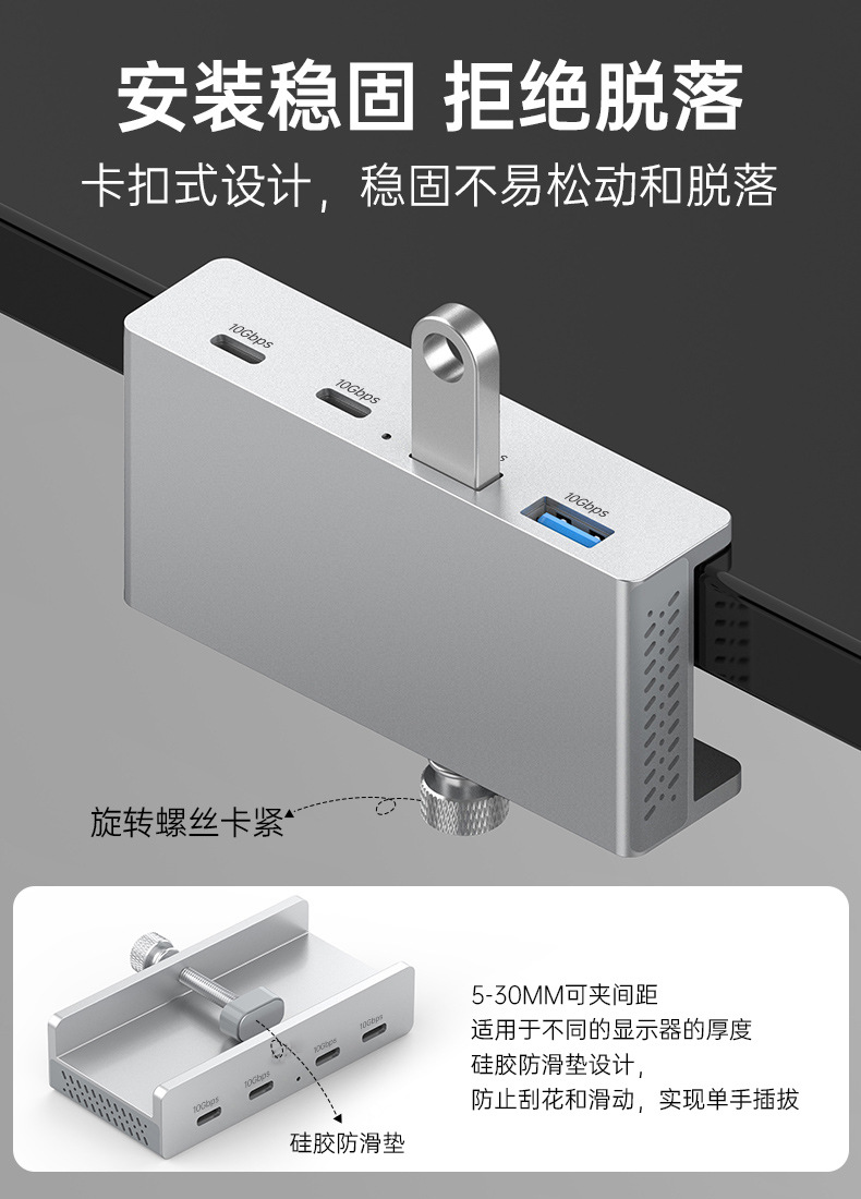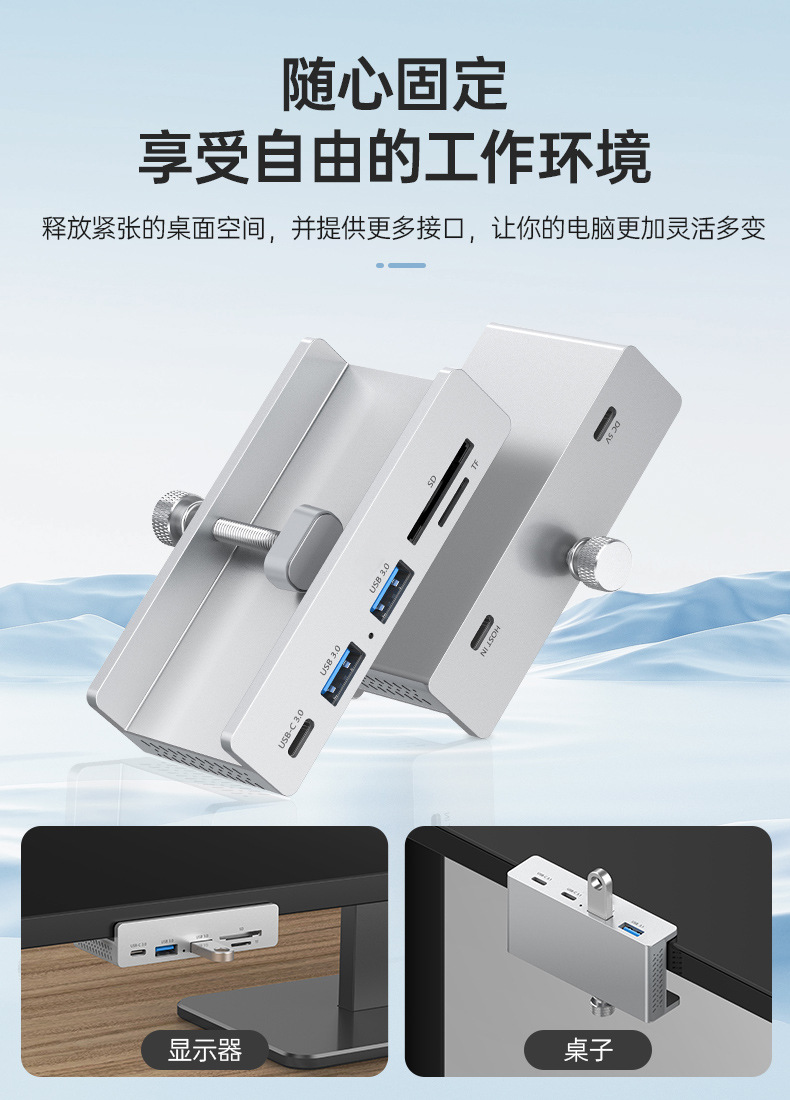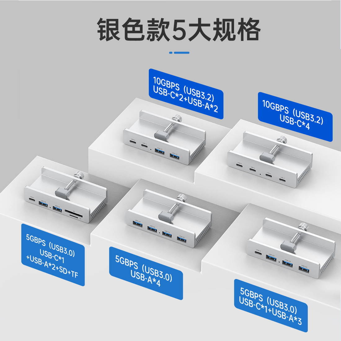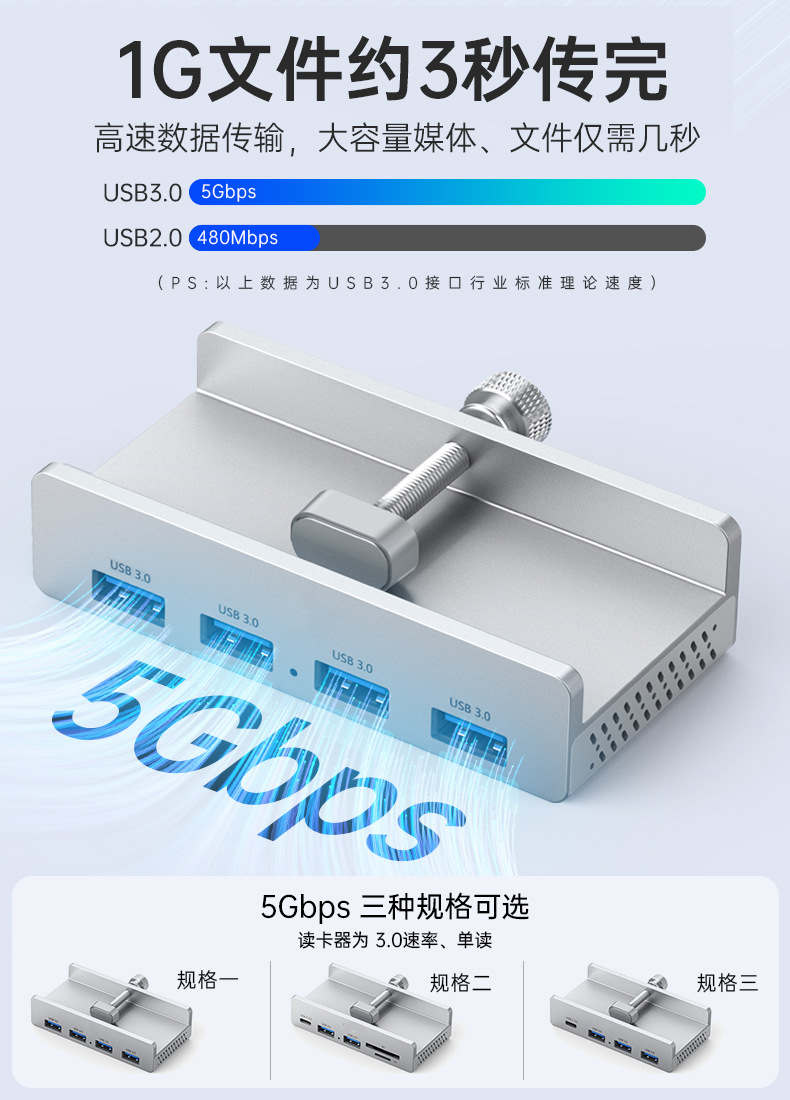 USB3.0鋁合金擴展器桌上型機電腦集線器多功能卡釦式拓展隖