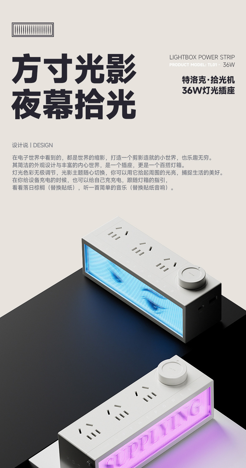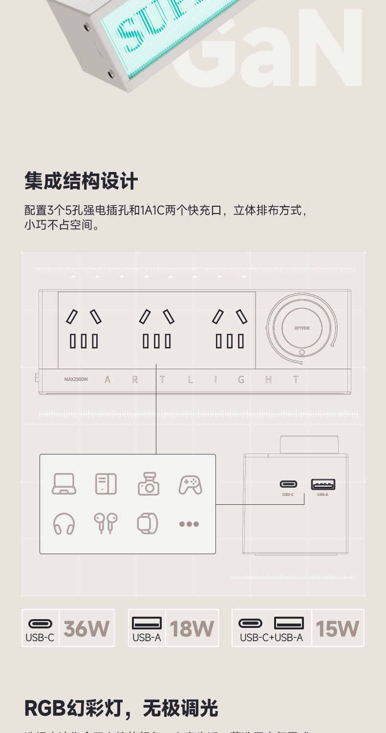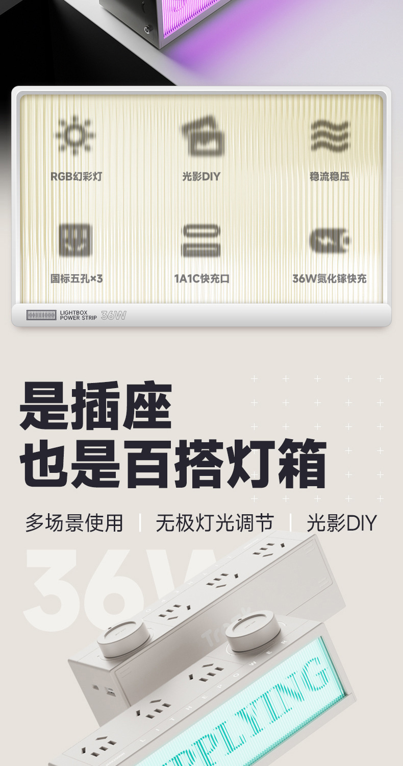 拾光機排插多插位多功能夜燈智能插排 usb快充特洛克氮化鎵插線板