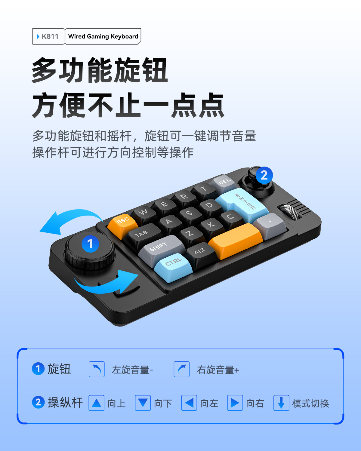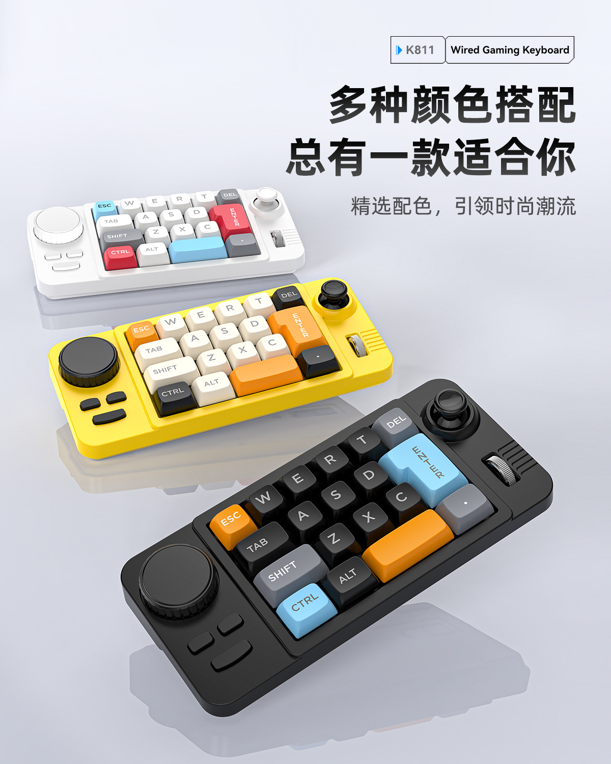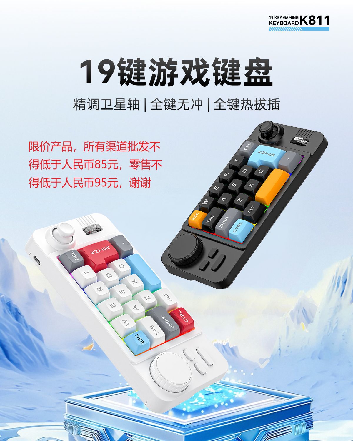 19鍵搖桿雙滾輪RGB熱插拔有線機械遊戯鍵盤電腦配件遊戯鍵盤
