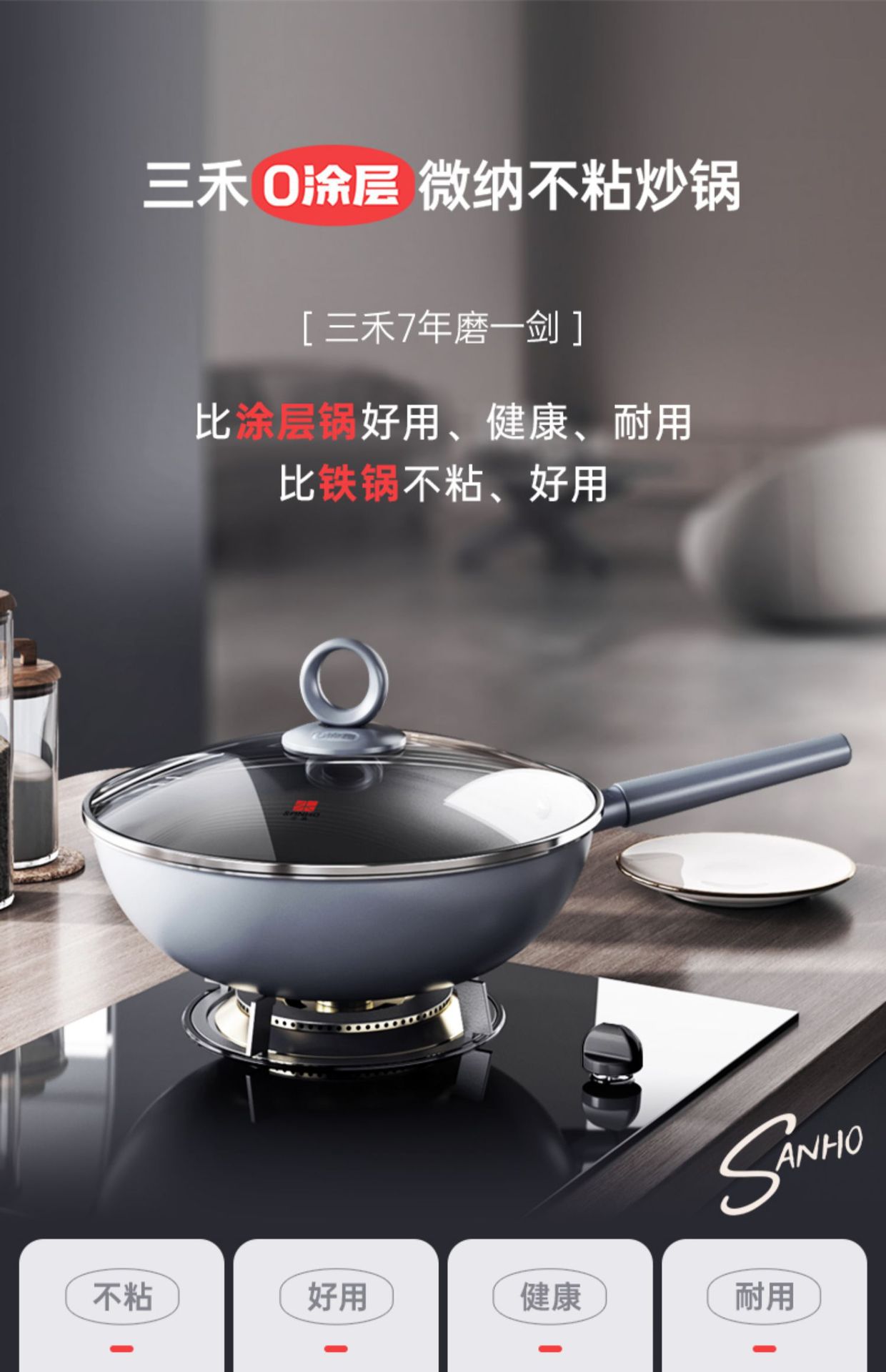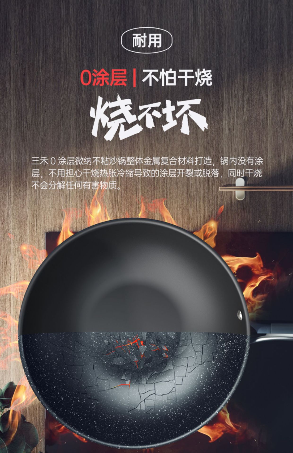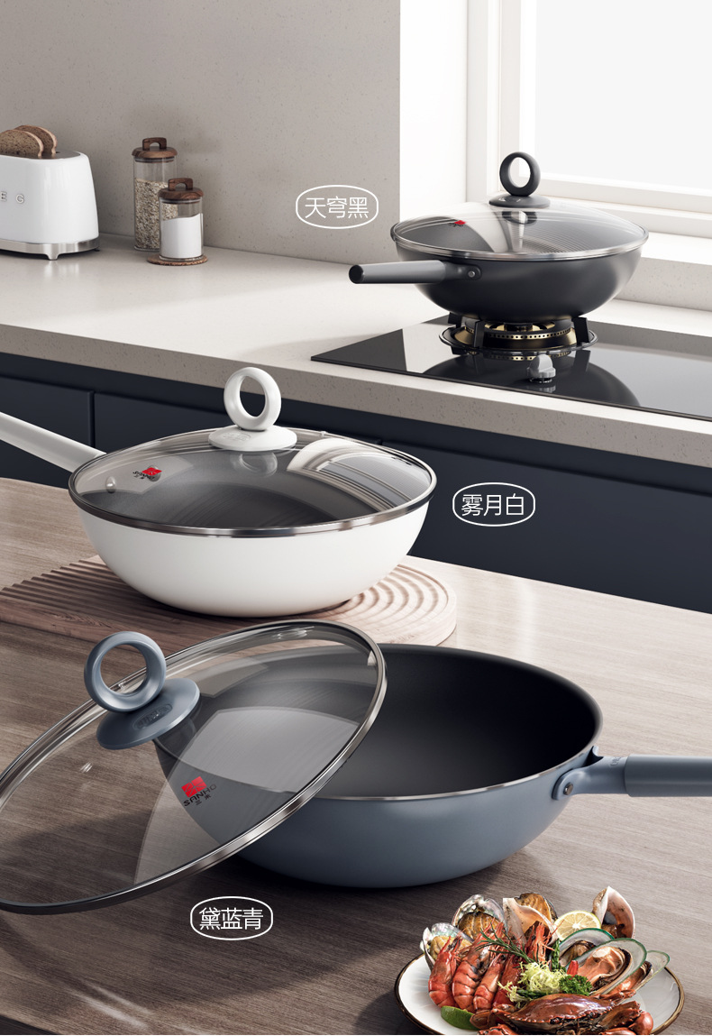 三禾0塗層炒鍋不沾鍋無塗層家用炒菜鍋平底煎鍋電磁爐瓦斯爐通用