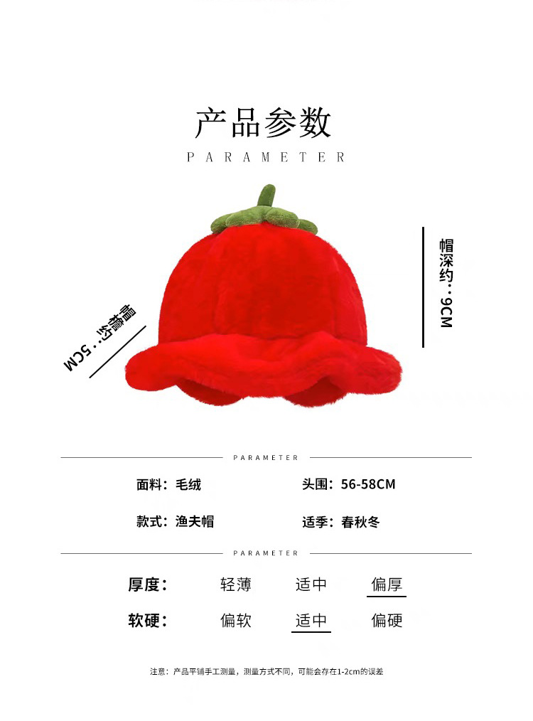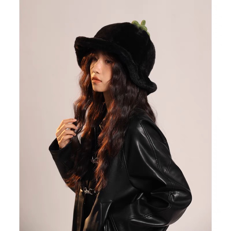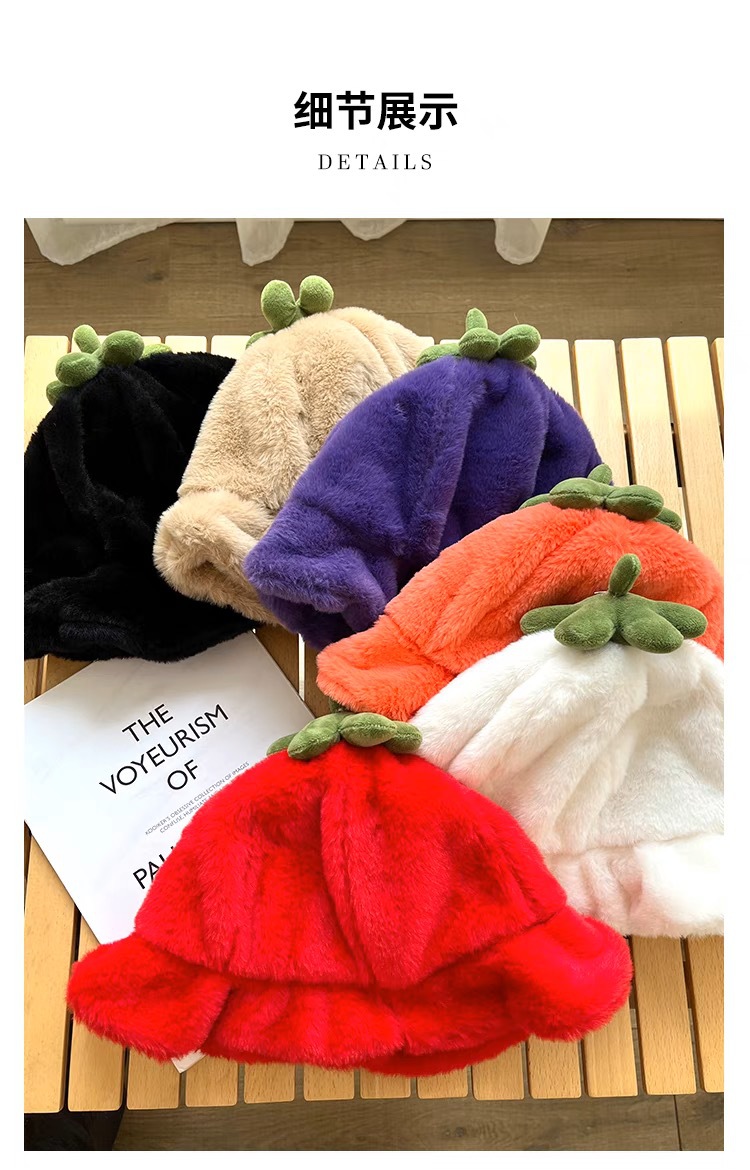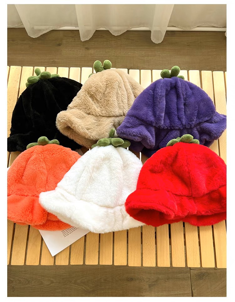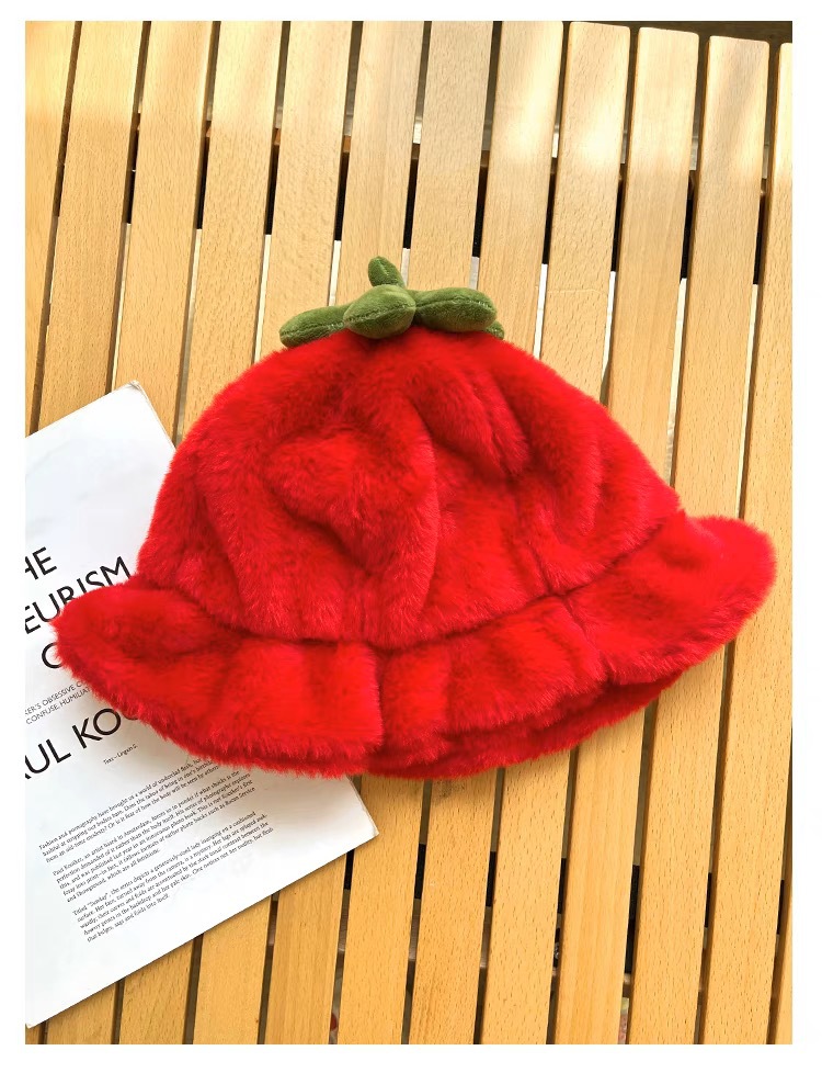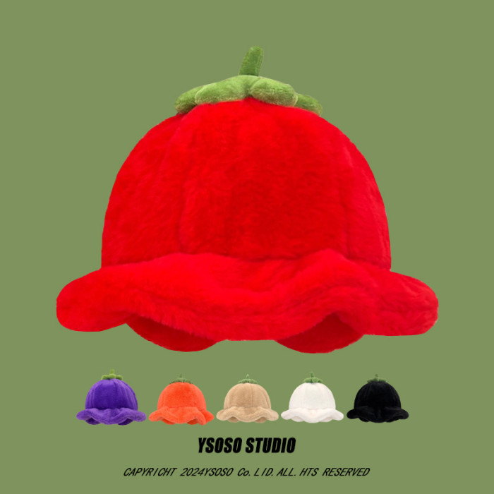 甜美保暖毛絨小番茄卷邊盆帽女冬天保暖顯臉小穿搭拍照漁夫帽子潮