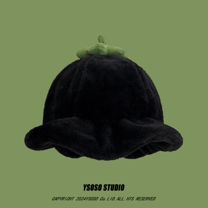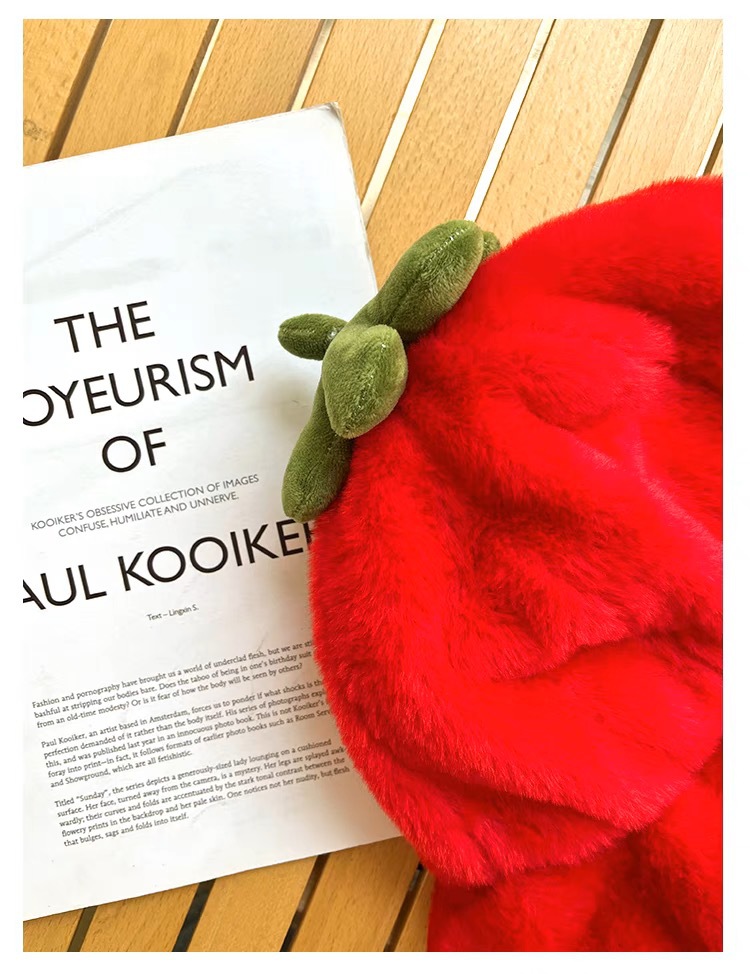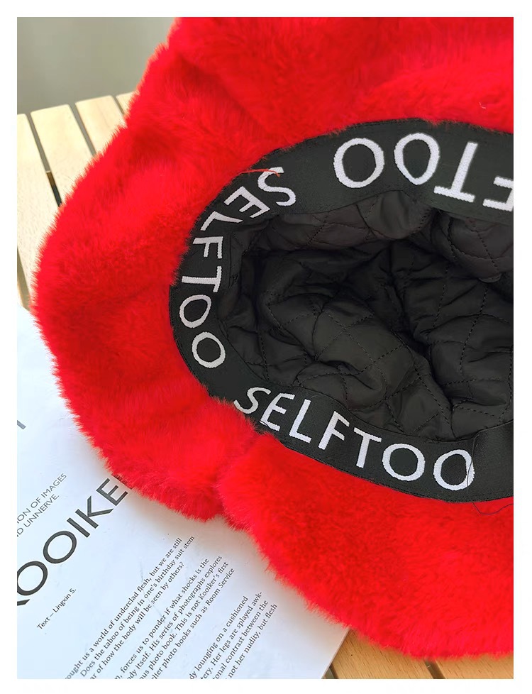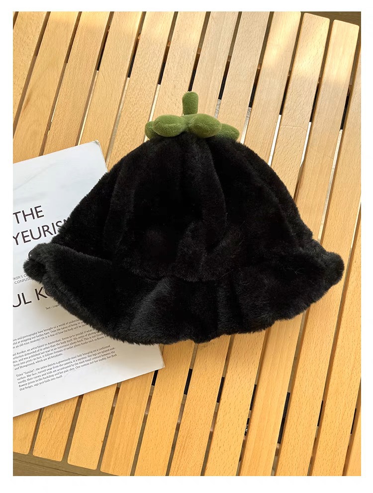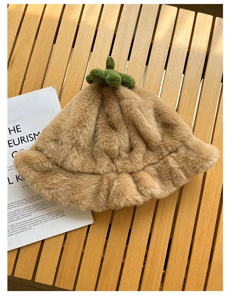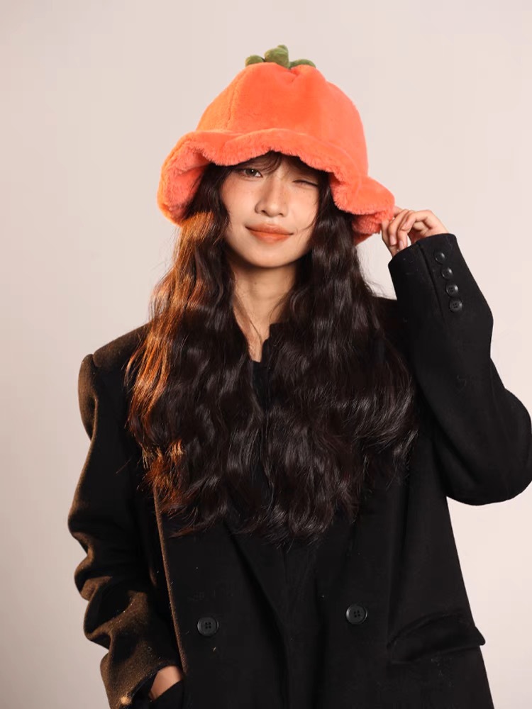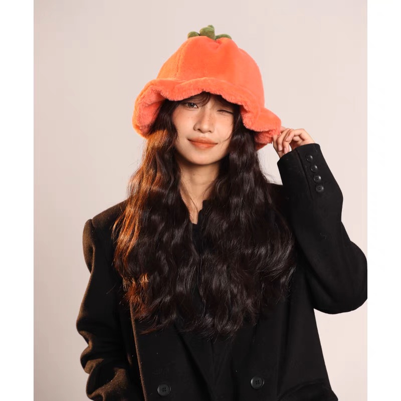 甜美保暖毛絨小番茄卷邊盆帽女冬天保暖顯臉小穿搭拍照漁夫帽子潮