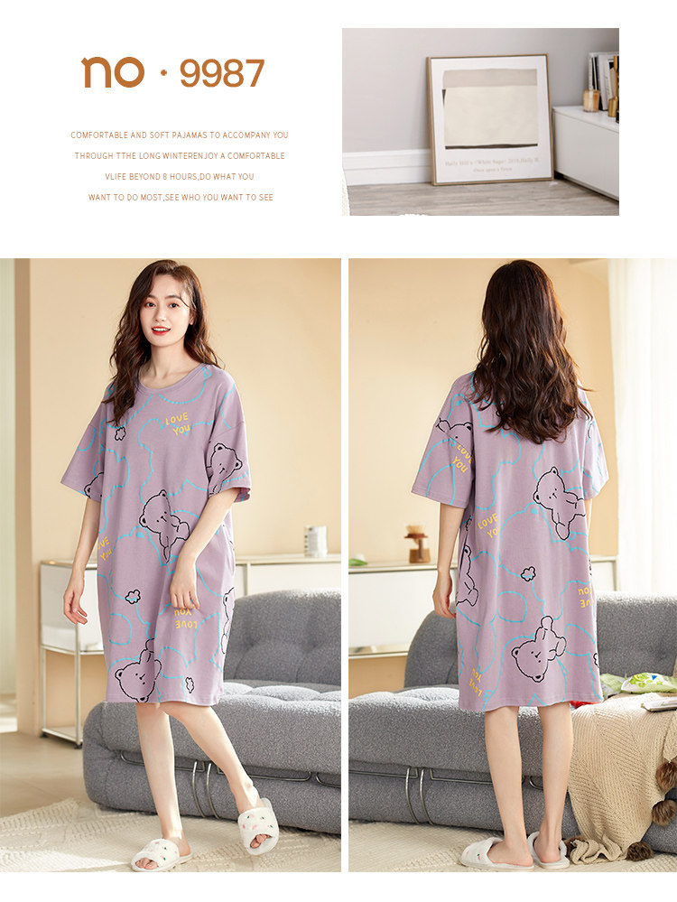 睡裙女夏季純棉薄款短袖韓版寬鬆加肥加大碼胖mm200斤睡衣女夏天