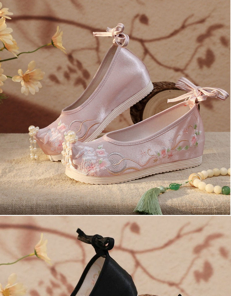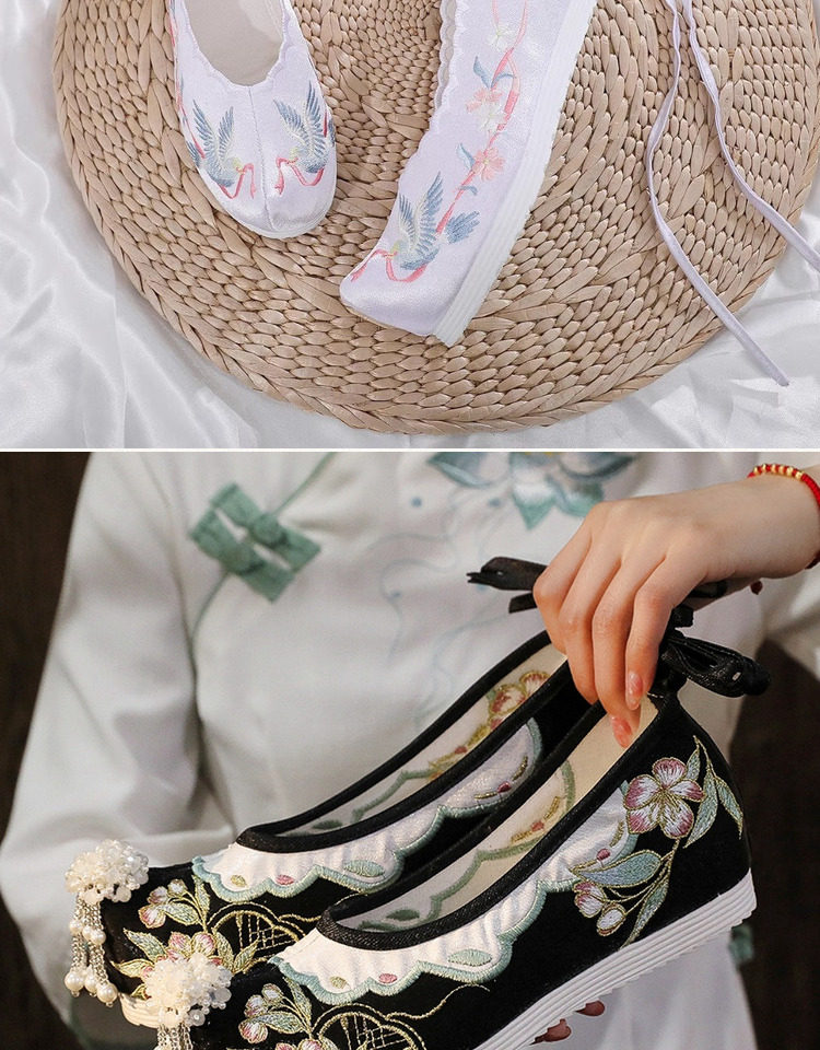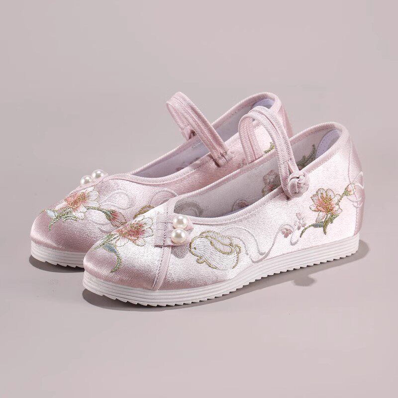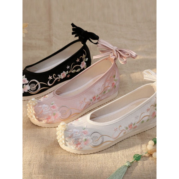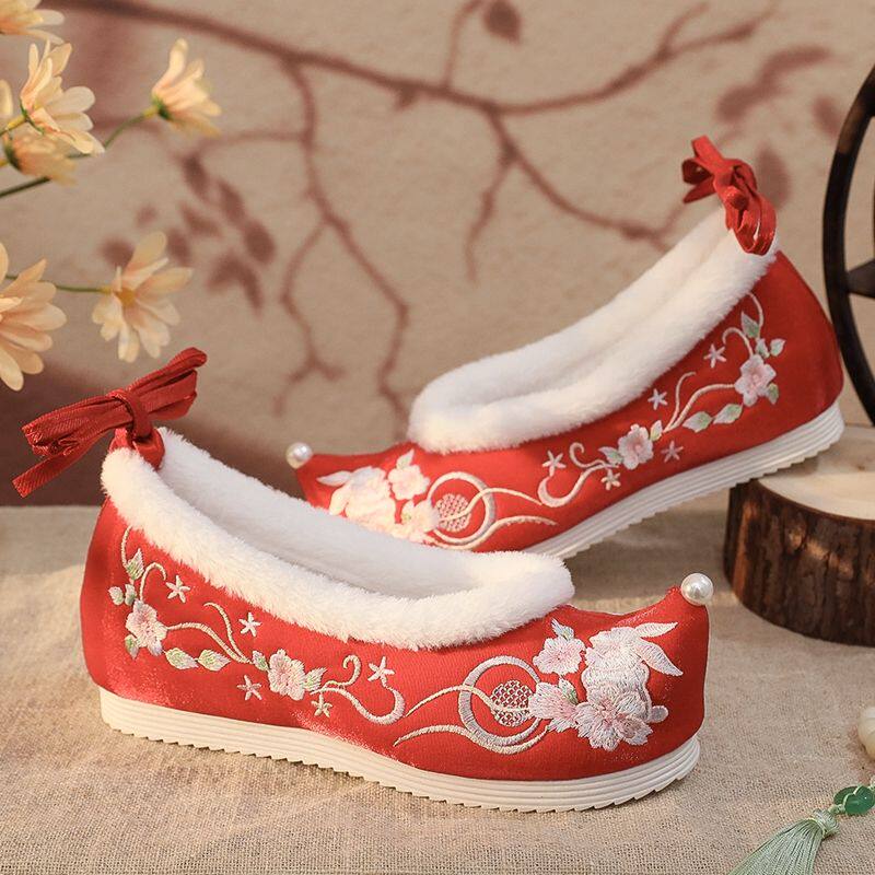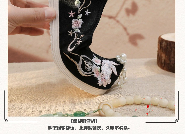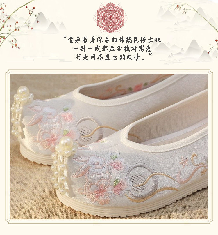 春夏新款漢服鞋子女翹頭綉花鞋演出古風刺綉古裝弓鞋老北京布鞋女