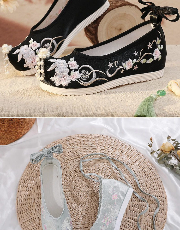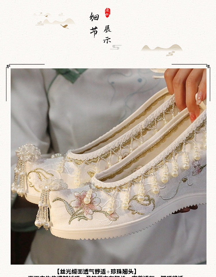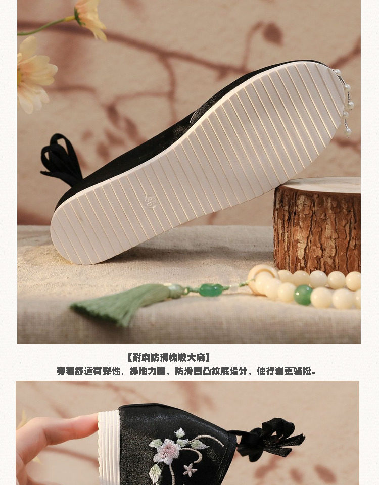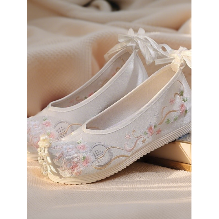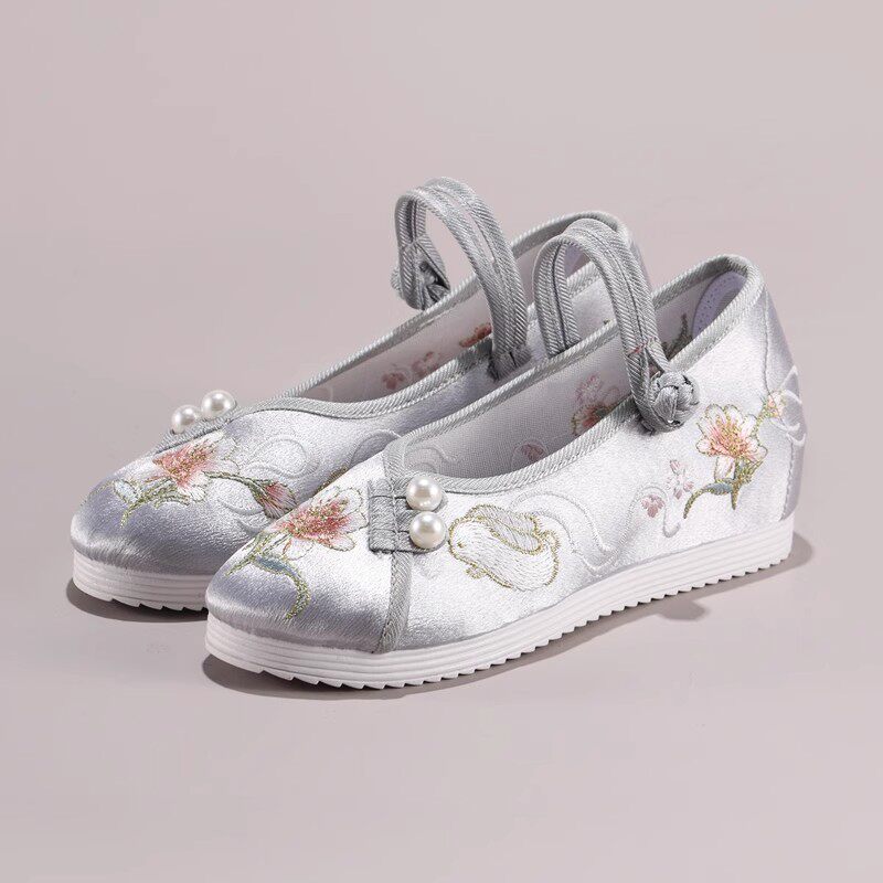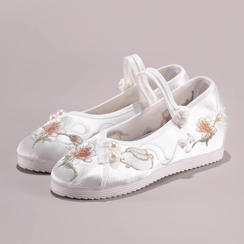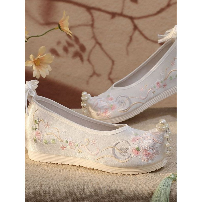 春夏新款漢服鞋子女翹頭綉花鞋演出古風刺綉古裝弓鞋老北京布鞋女